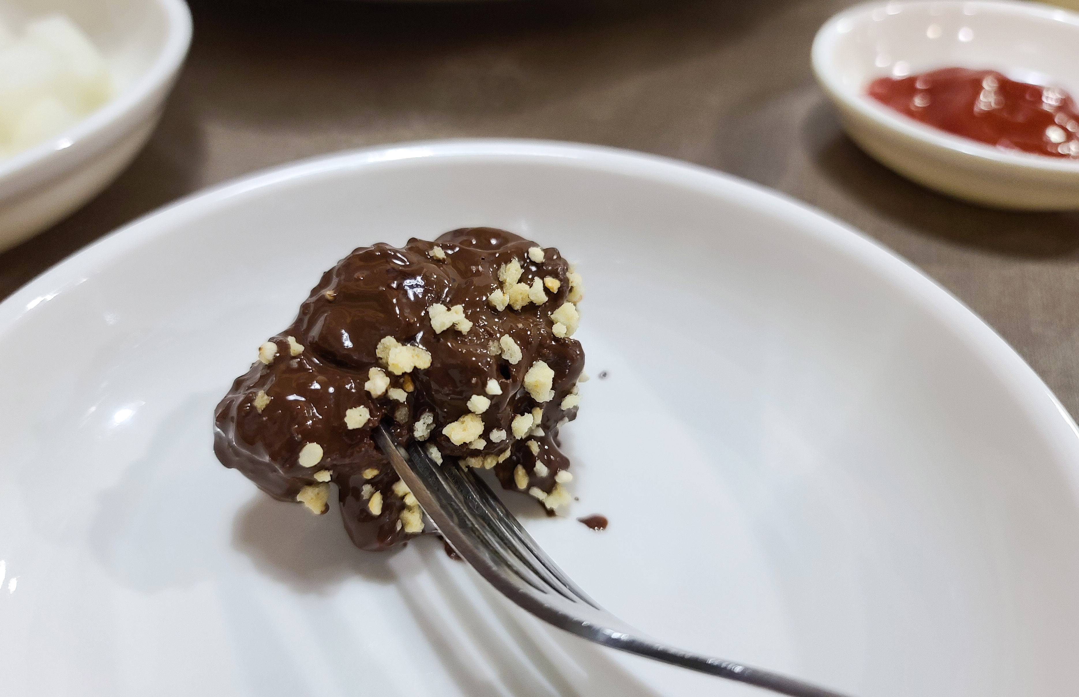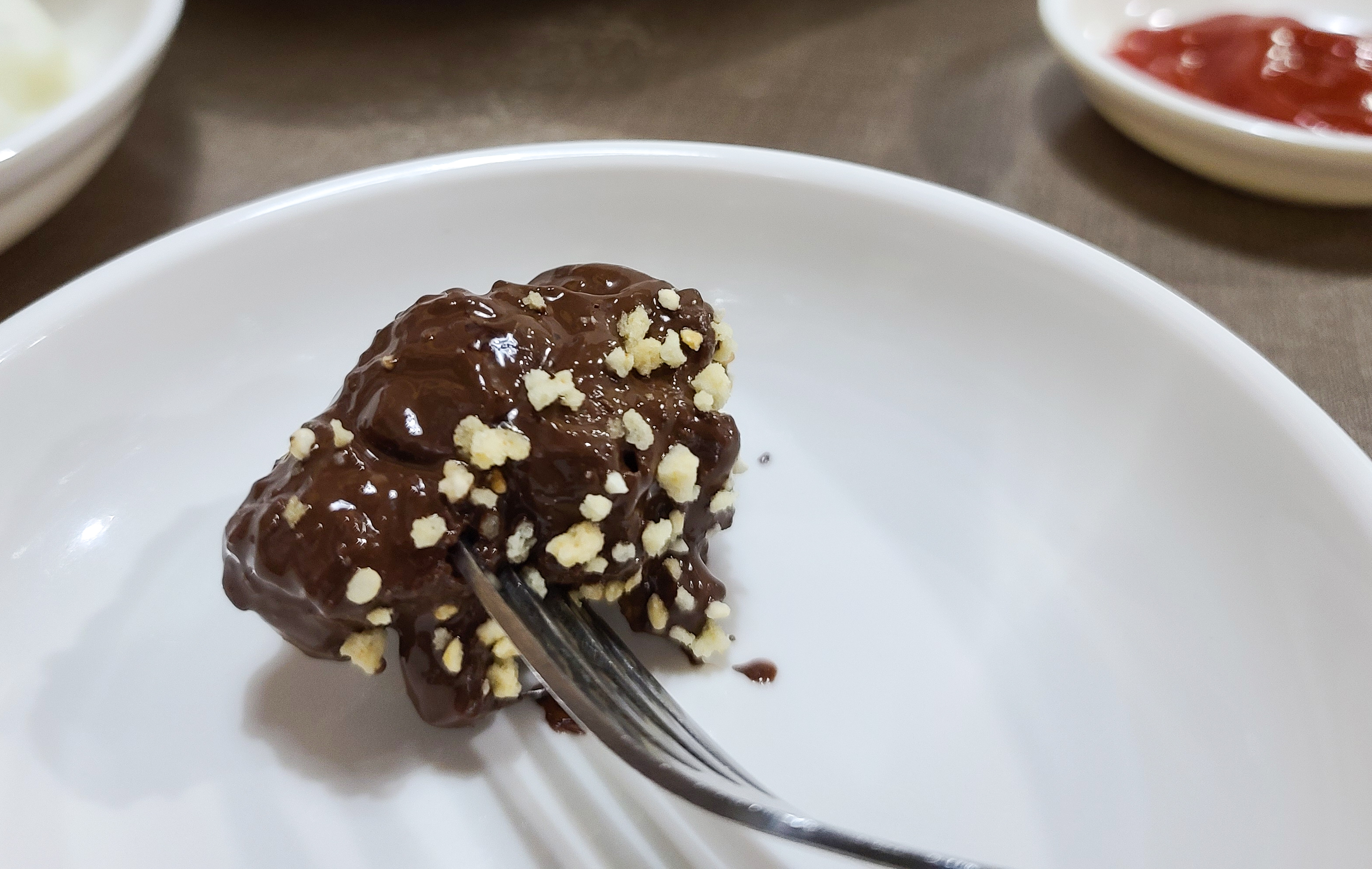 초콜릿 치킨의 초콜릿 향이 얼마나 강하면, 다른 치킨을 먹고 있어도 초콜릿 향이 몸속에 가시지 않는 느낌이라고 할까요, 심지어 조금만 먹어도 더부룩한 느낌이 있어서 초콜릿이 몸 안에서 불어나는 느낌도 들 정도였습니다.
