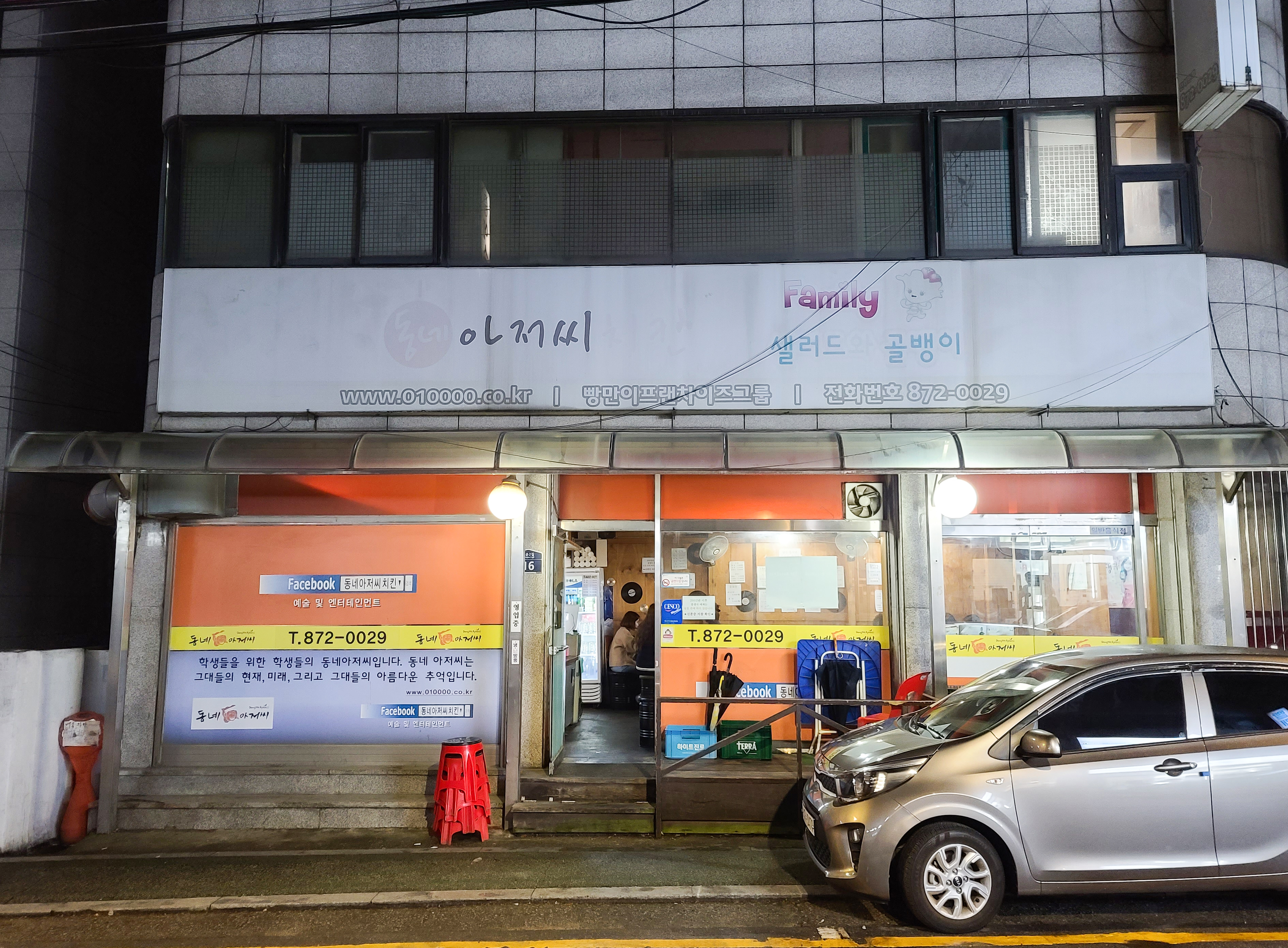 원래는 결제만 해주고 반응을 보려 했으나, 같이 간 동생이 같이 안 먹으면 본인도 안 먹겠다며 떼를 쓰는 바람에 저도 엉겁결에 초콜릿 치킨을 다시 먹게 되었습니다. 봉천동 동네아저씨치킨 가게는 워낙 오래된 가게여서 그런지 가게의 간판은 빛이 바래서 거의 보이지 않을 정도로 되어있었습니다. 하지만 이 동네 명물답게 초콜릿치킨을 도전하려 방문한 학생들로 자리가 가득 찼더라고요.