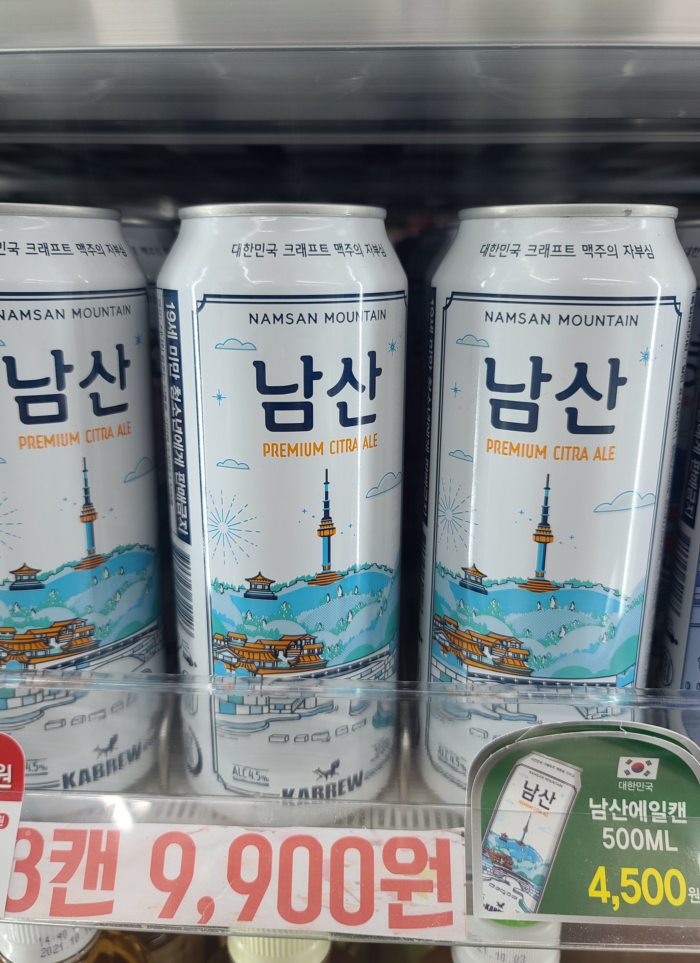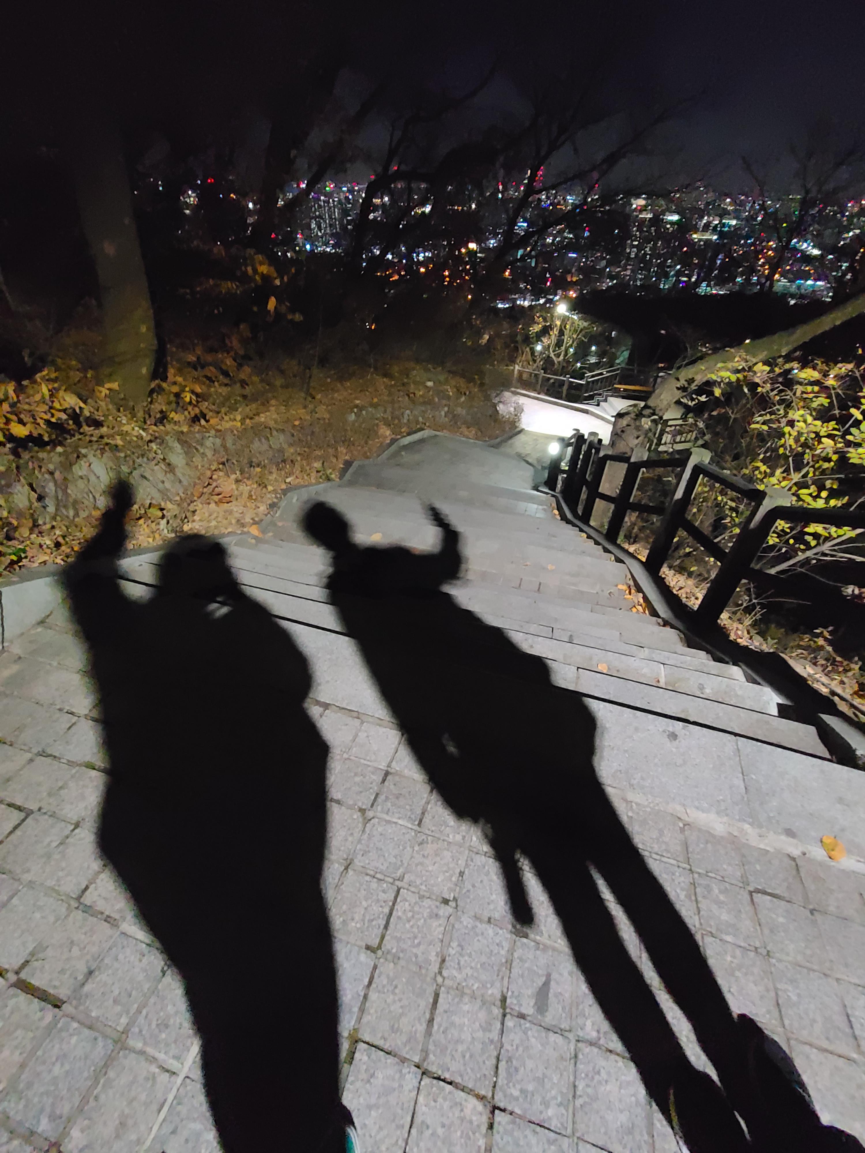 어느 정도 사진을 찍고, 음료수를 마시러 편의점에 들렀는데 마침 남산 맥주가 보이더라고요. 저는 술을 잘 못 마시기에 사진으로만 담았는데, 남산타워에 처음 오시는 분은 기념으로 한 캔 마셔보는 것도 나쁘지 않을 것 같네요.(ㅋㅋ) 내려오는 길에 그림자로 기념사진도 한 컷 찍었습니다. 여러분도 재미있는 추억을 만들러 남산으로 가보시는 것은 어떤가요? :D