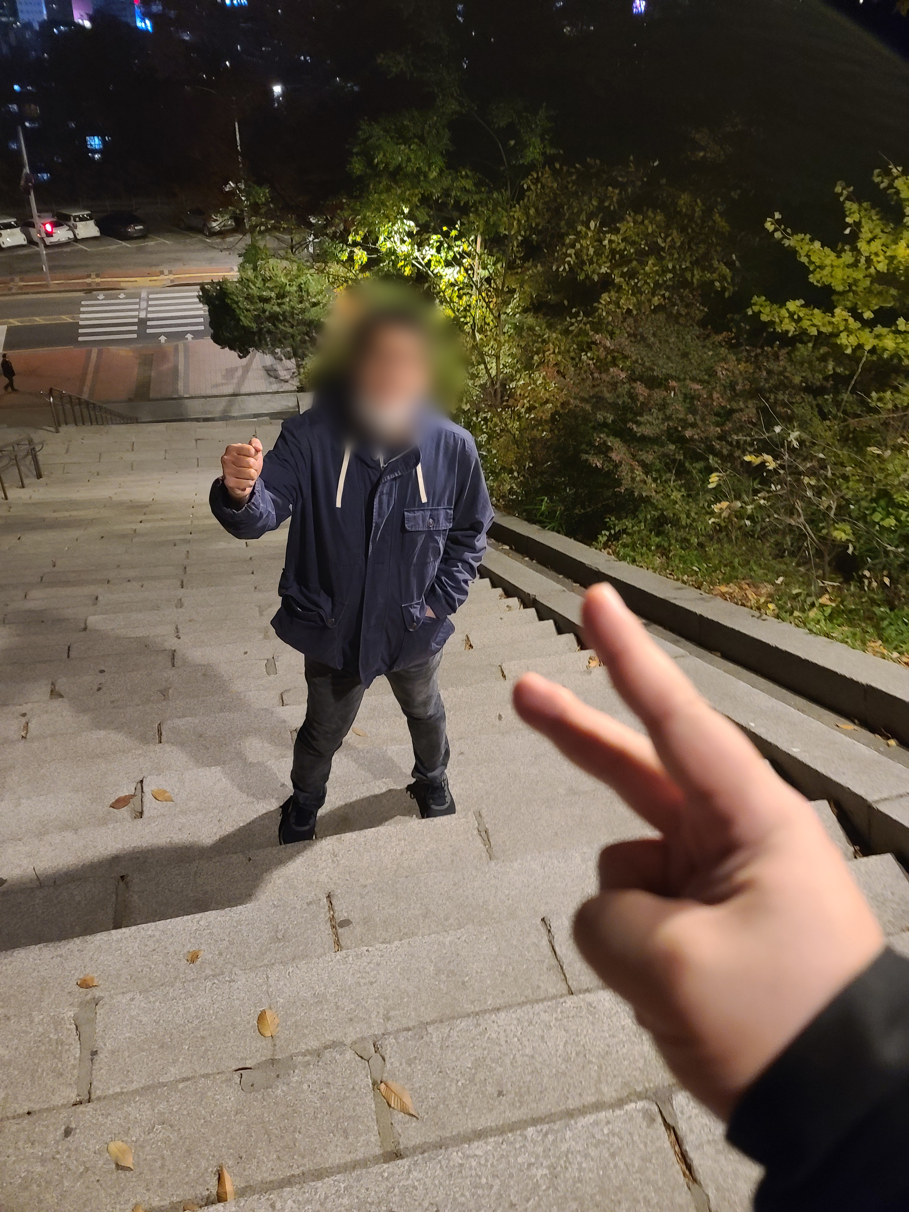 위 지도에 공영주차장에 주차를 마치고, 서울특별시교육청교육연구정보원 계단을 오르면, 삼순이 계단이 나옵니다. 이 날 계단을 오르는데 어떤 커플이 가위바위보를 하면서 오르길래 저도 같이 간 지인과 함께 가위바위보를 하는 척하면서 사진도 찍었습니다.