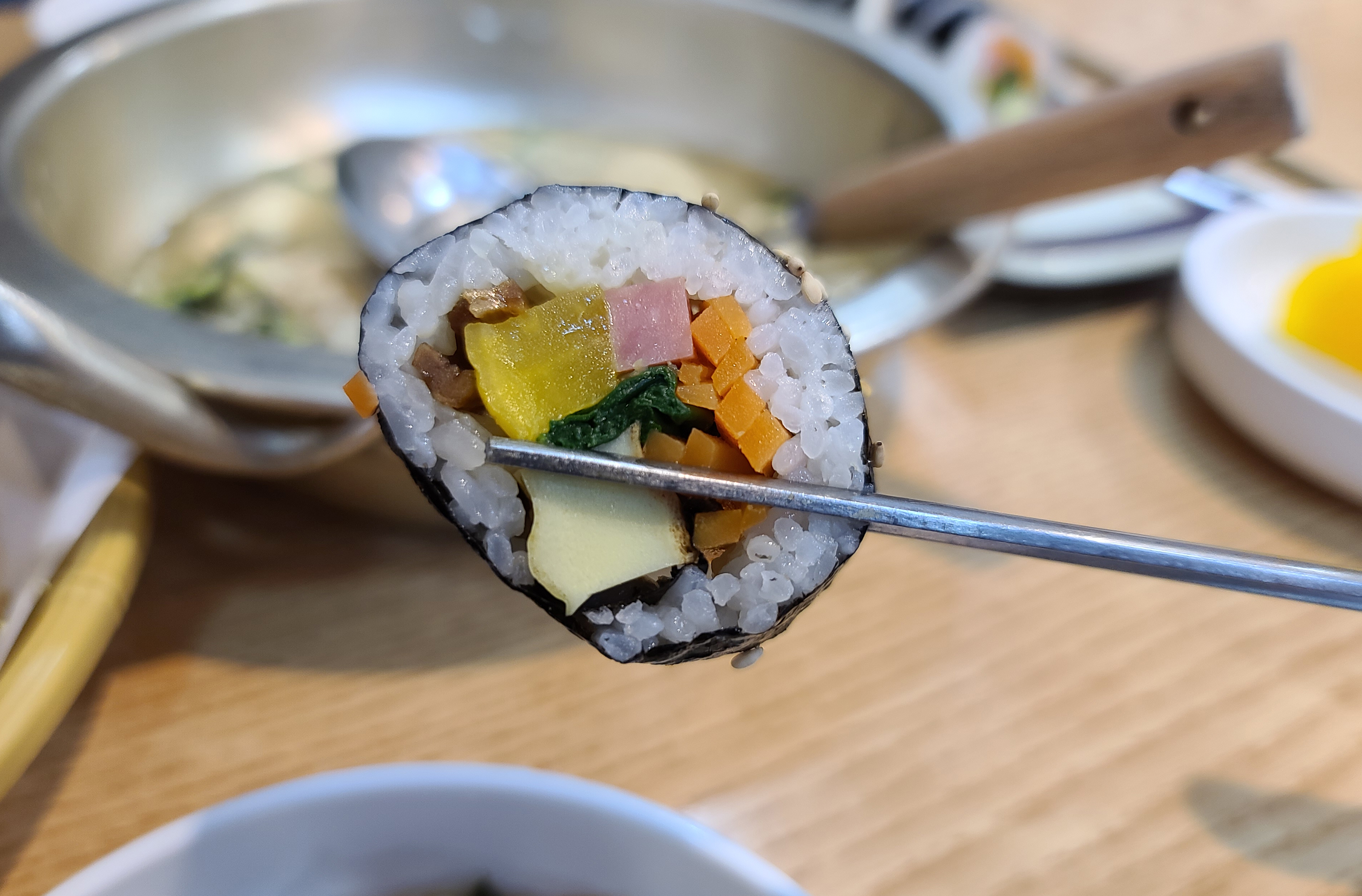 분식집에서 김밥도 안 먹으면 서운하죠. 그래서 김밥까지 주문해서 먹었습니다. 떡볶이 국물과 잘 어울렸고 떡볶이도 쫀득쫀득 부드러운 식감이 은근 중독성이 있었습니다. 국물은 단 맛이 좀 강한 편이었는데, 먹을 만은 했습니다.