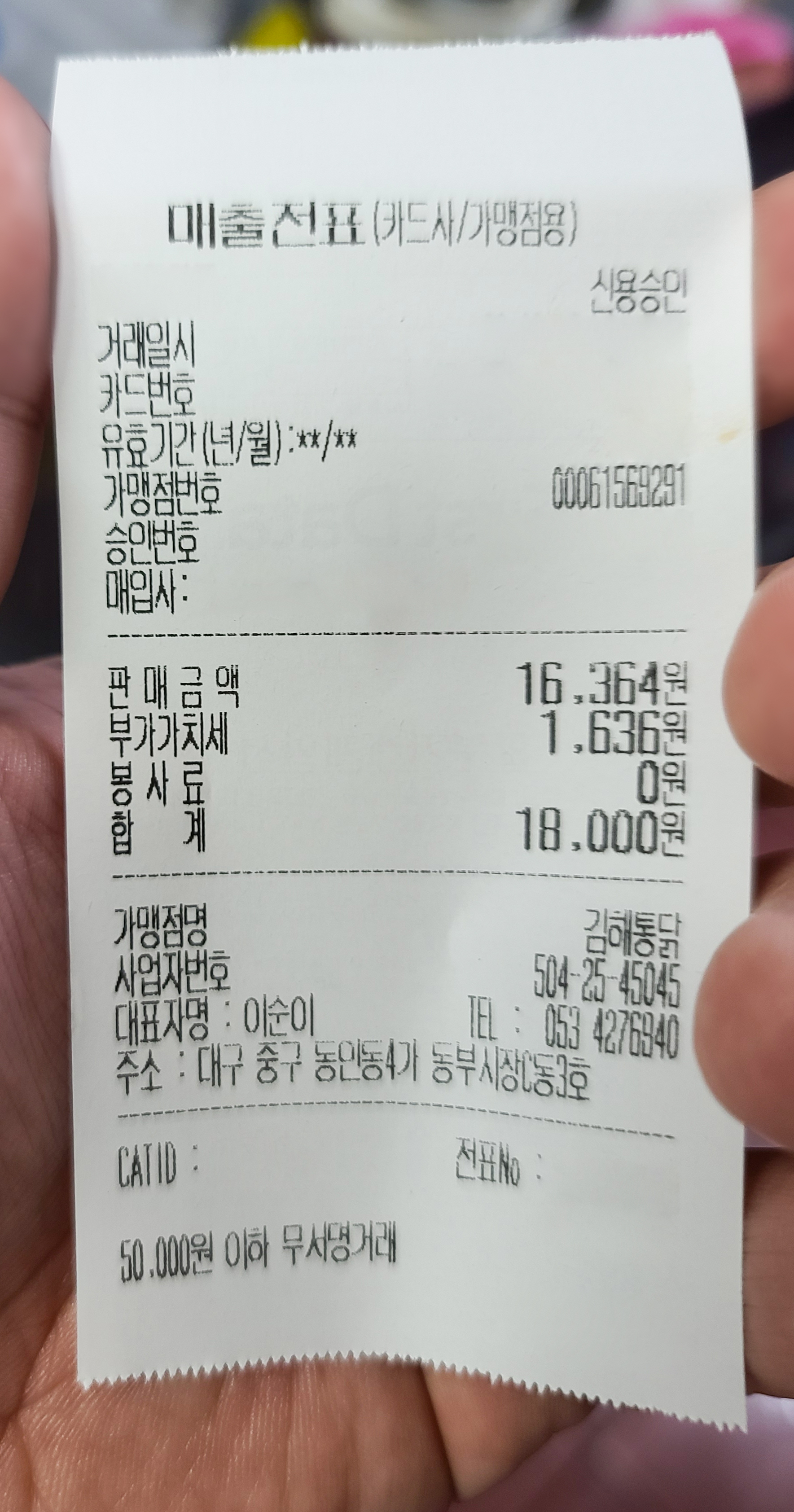 동인동 김해통닭에서 먹은 식사금액은 닭불고기 17,000원, 공기밥 1,000원. 총 18,000원이 나왔습니다. 닭불고기 양은 2명이서 먹기에 충분한 양이었으며, 금액도 요즘 치킨 가격에 비해 크게 부담스럽지 않아서 근처에 살거나 방문할 일이 있다면 종종 이용할 것 같은 맛집이었습니다. 포스팅하는 동안에도 닭불고기 또 먹고 싶어서 군침이 도네요. 나중에 꼭 다시 재방문할 것을 기약하며 이만 글 줄입니다.