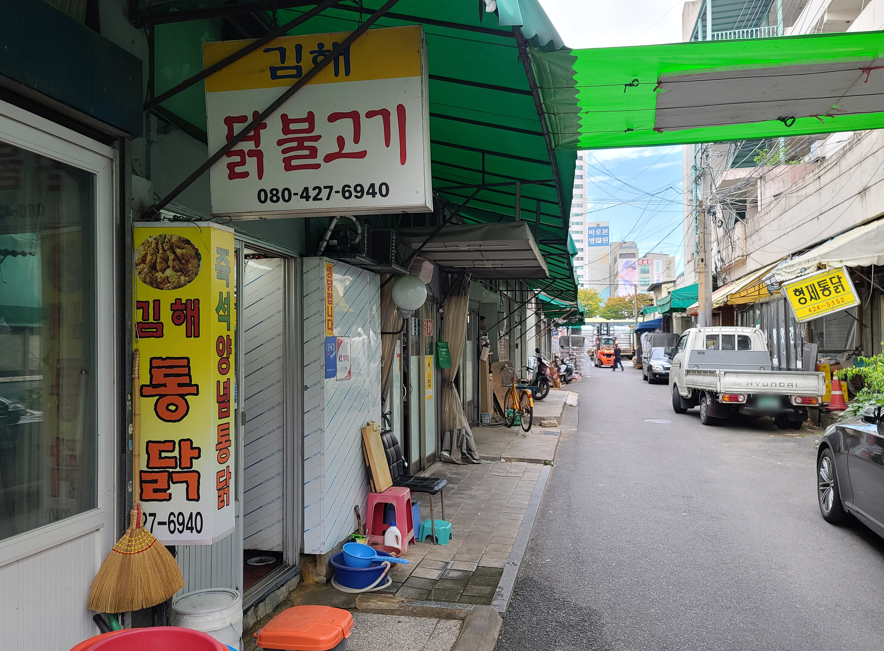저는 워낙 닭고기를 좋아해서 웬만한 닭요리는 다 먹어보았다고 자부하는데, 김해통닭은 제가 여태껏 경험해보지 못한 새로운 맛을 경험하게 해 주었습니다. 제가 동인동 김해통닭에 방문했을 때 가게 앞 주차공간이 없는듯 하여 인근의 문 닫은 가게에 주차를 한 뒤 가게를 찾았습니다.