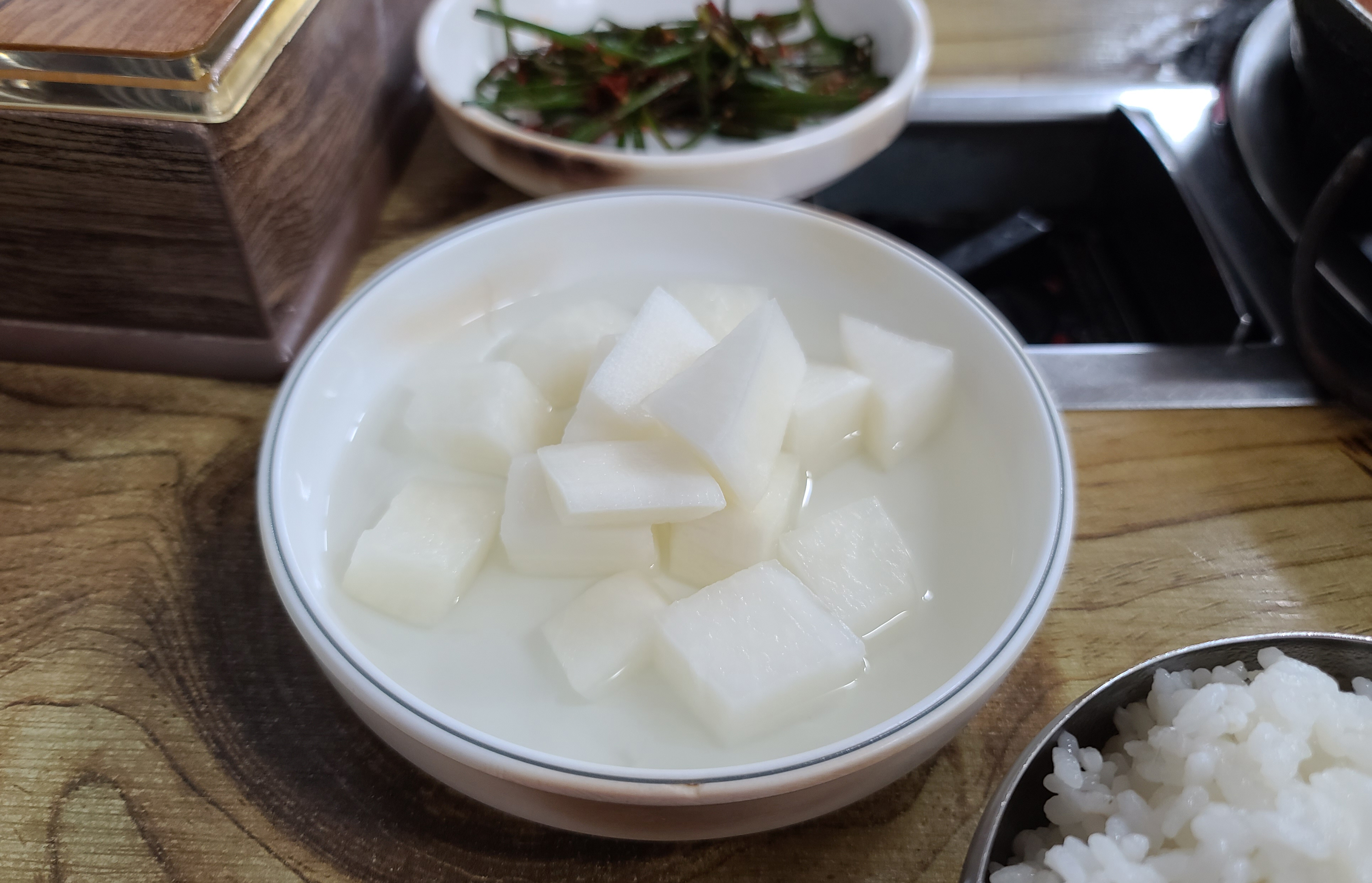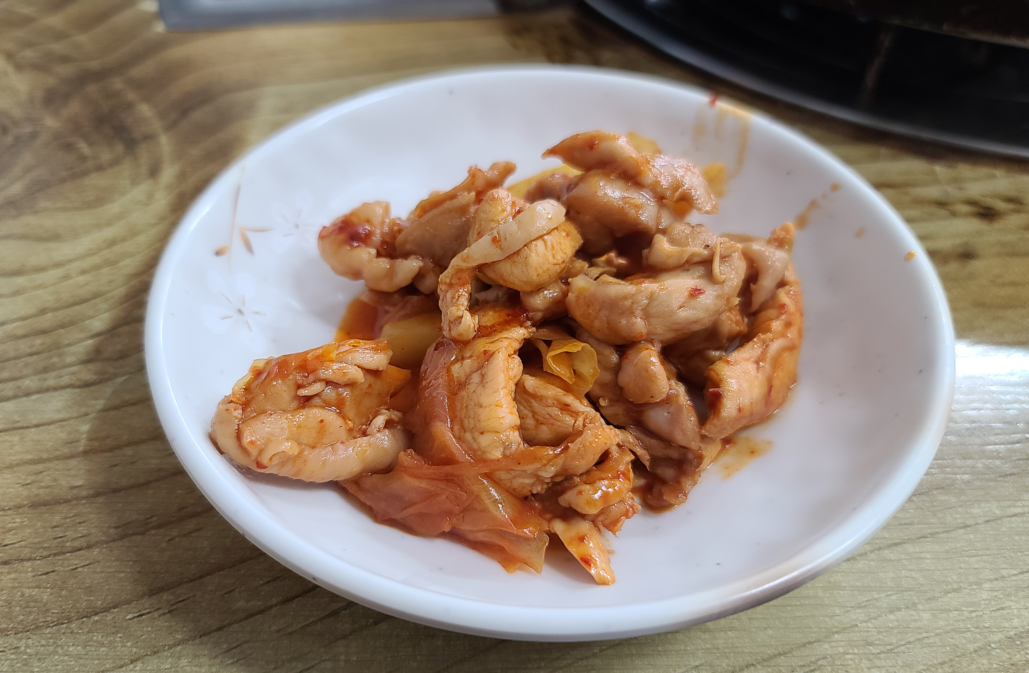 주인아주머니께서는 닭불고기를 부추김치와 함께 곁들여 먹으면 맛있다고 하셨고, 저는 부추김치와도 먹고 밥이랑도 먹었습니다. 부추김치는 강한 젓갈 향이 났는데 나름 닭불고기와 잘 어울리는 듯했으며, 자극적인 맛을 좋아하지 않는 제겐 공기밥이랑 먹는 게 가장 괜찮은 조합이었습니다.
