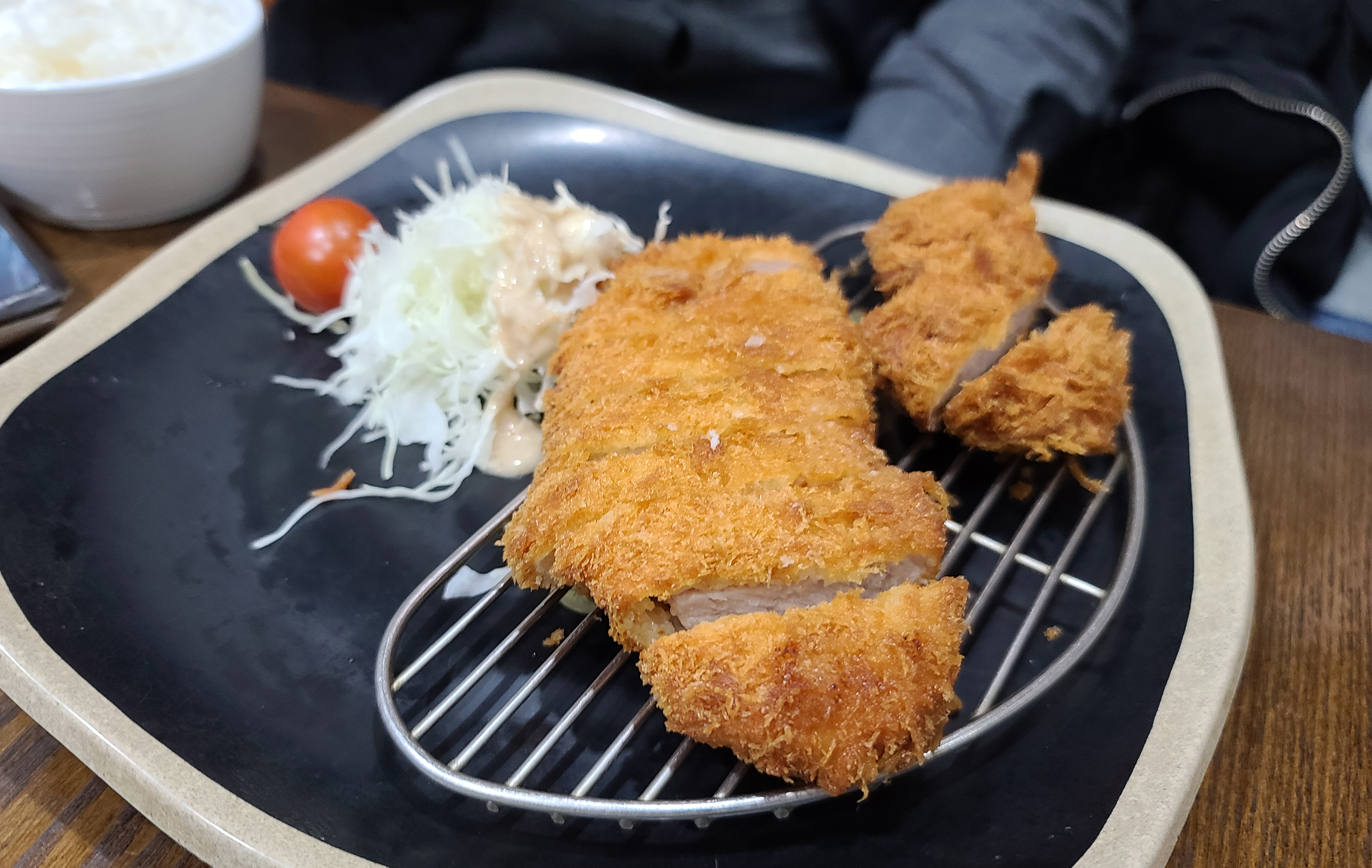 등심까스 주문한 것을 다행으로 여기며 돈까스를 먹는데, 튀김옷이 바삭한 정도랑 고기두께도 적당해서 좋긴 하였으나, 튀김옷이랑 돈까스랑 너무 쉽게 분리되어서 한 덩어리를 통째로 입에 넣지 않으면 돈까스 고기가 쏙 빠져나온다는 단점이 있었습니다.