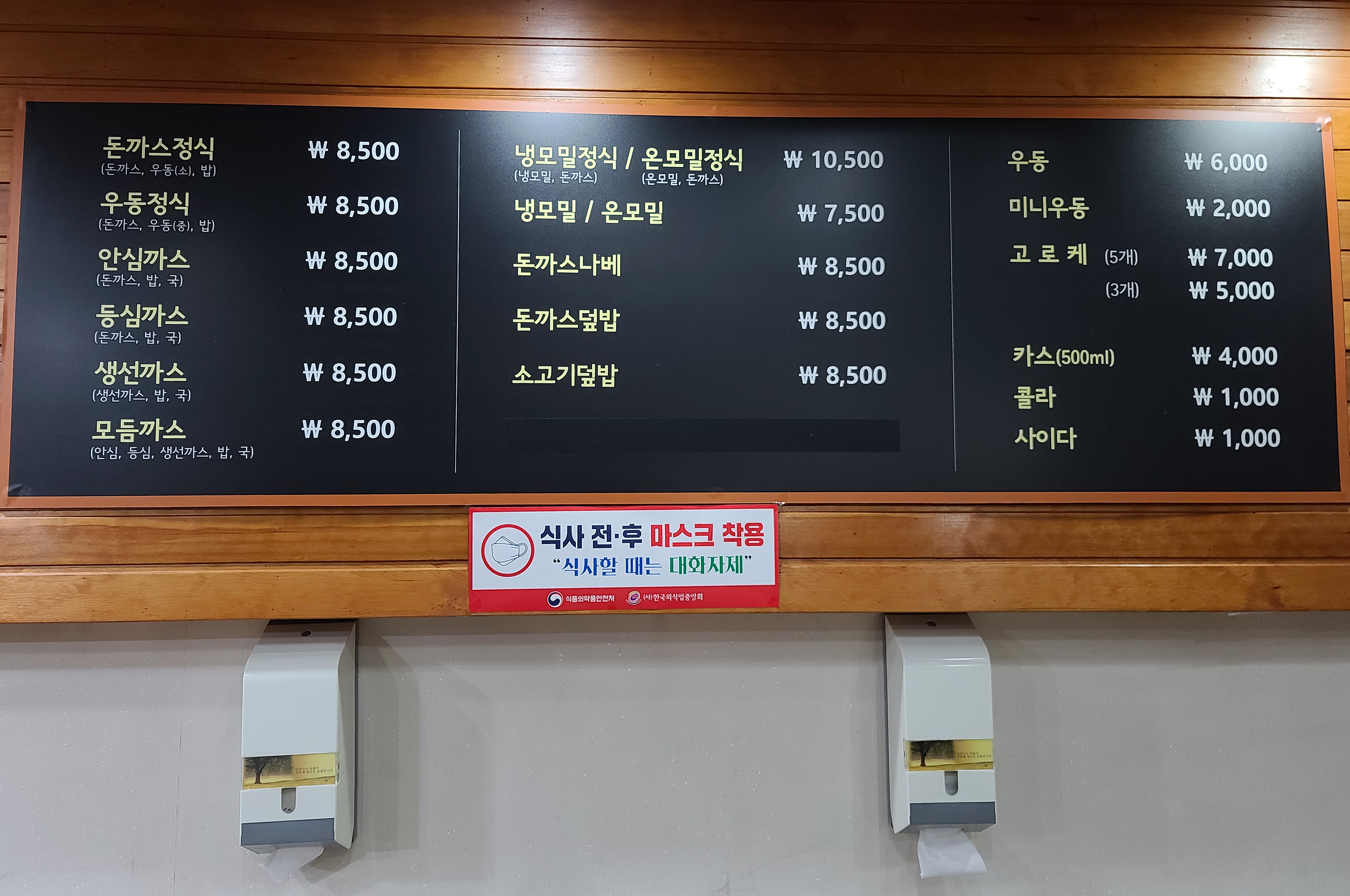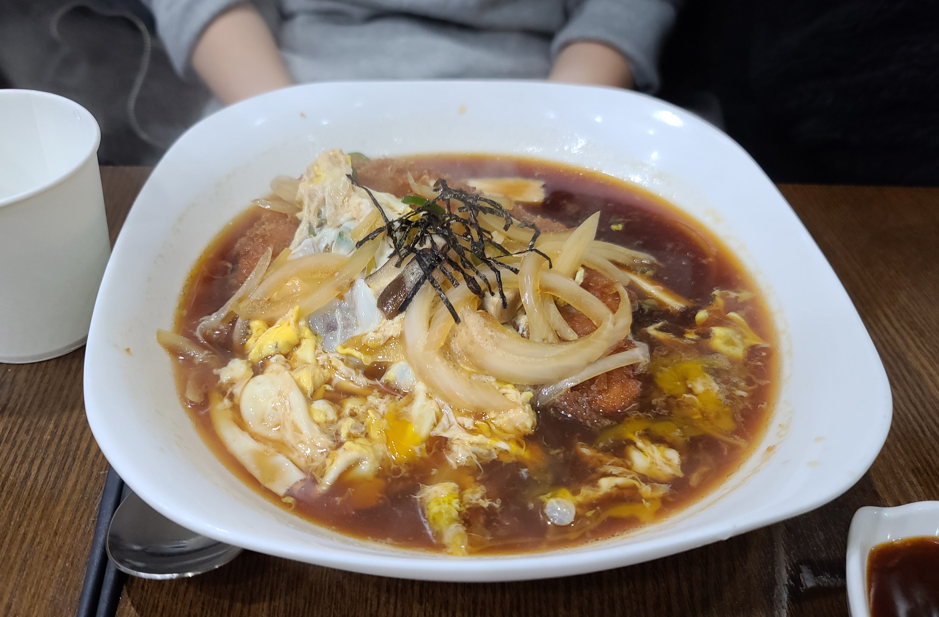 등심까스 주문한 것을 다행으로 여기며 돈까스를 먹는데, 튀김옷이 바삭한 정도랑 고기두께도 적당해서 좋긴 하였으나, 튀김옷이랑 돈까스랑 너무 쉽게 분리되어서 한 덩어리를 통째로 입에 넣지 않으면 돈까스 고기가 쏙 빠져나온다는 단점이 있었습니다.