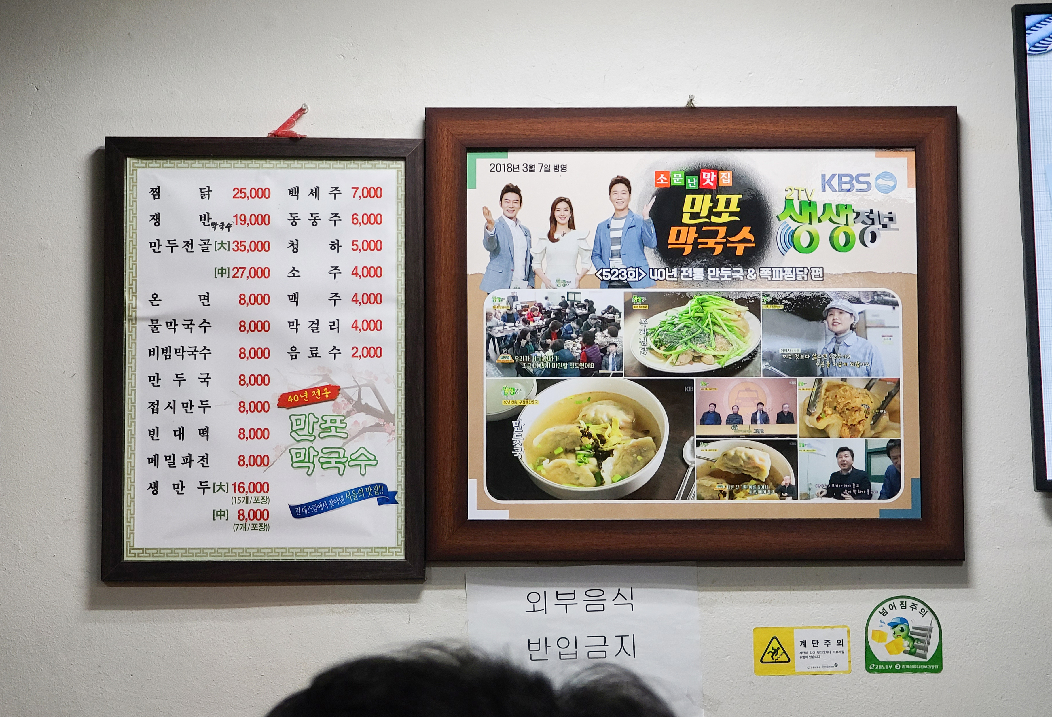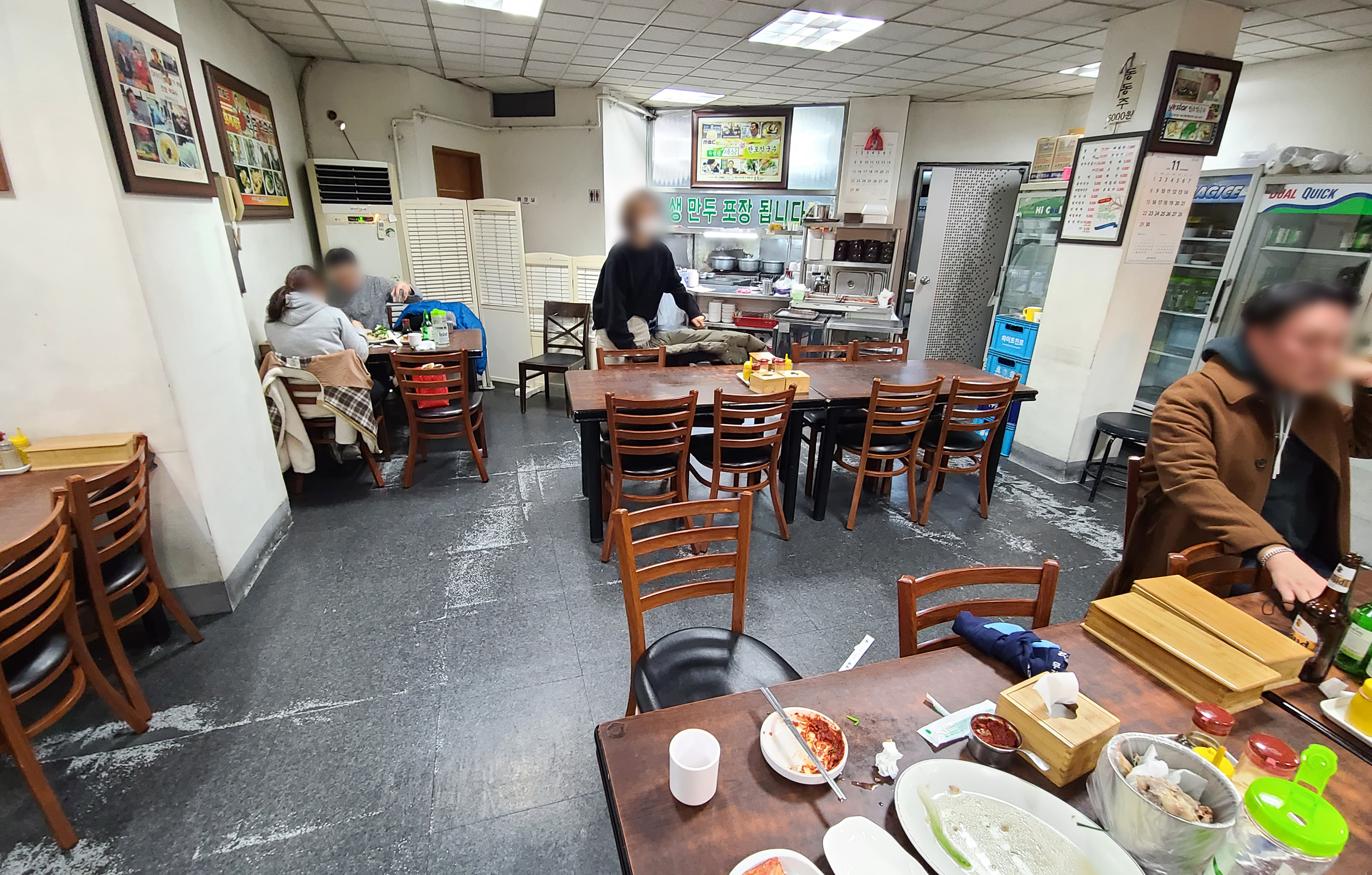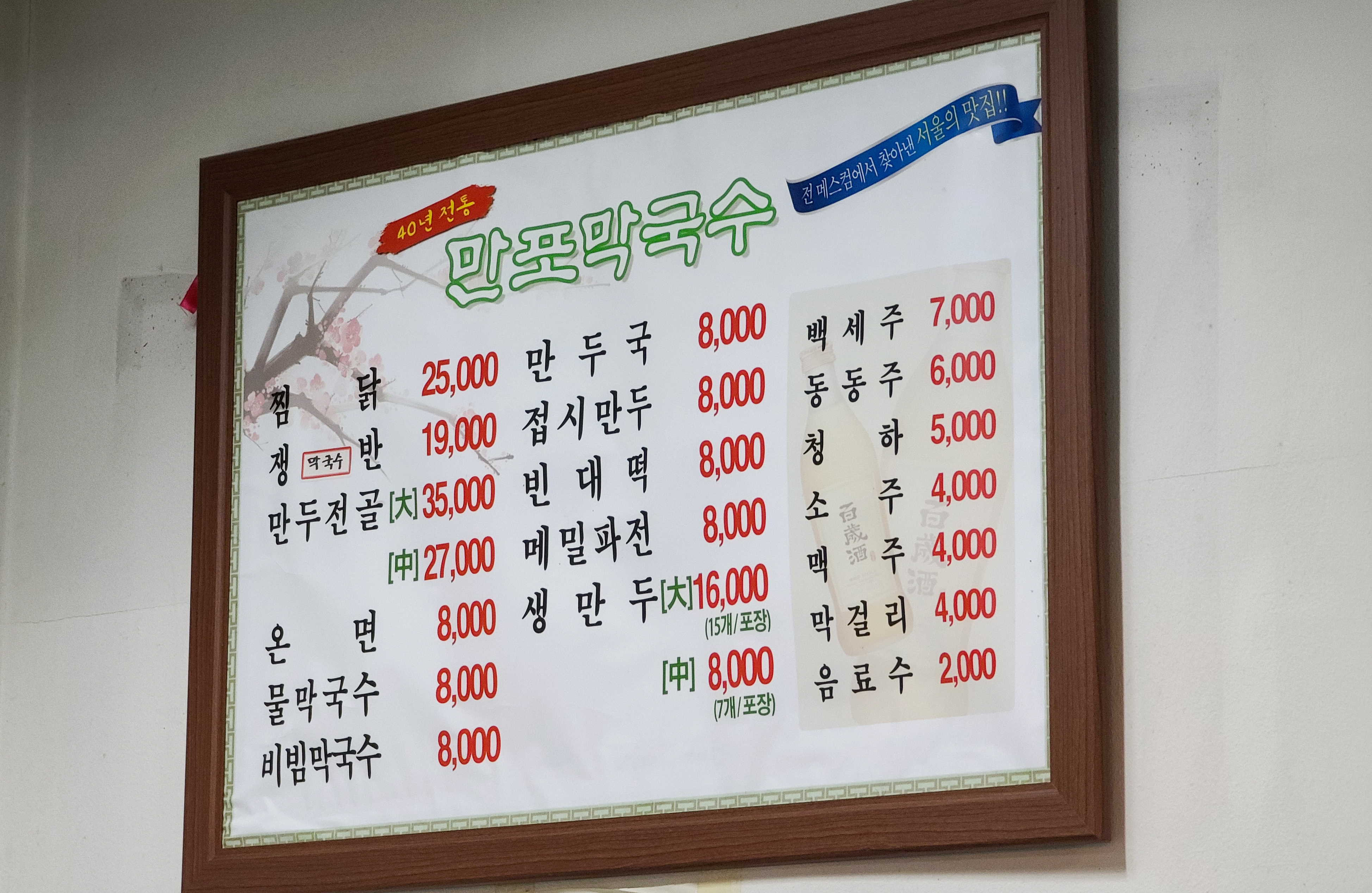 약수역 만포막국수의 메뉴는 찜닭, 쟁반막국수, 만두전골, 온면, 물막국수, 비빔막국수, 만두국, 접시만두, 빈대떡, 메밀파전, 생만두 등이 있었습니다. 만포막국수는 막국수와 만두가 메인 메뉴이지만 이북식 찜닭을 먹는 손님들이 더 많은 가게였습니다. 저희도 방문 기록을 남긴 다음 자리를 잡고 찜닭을 주문하였습니다.
