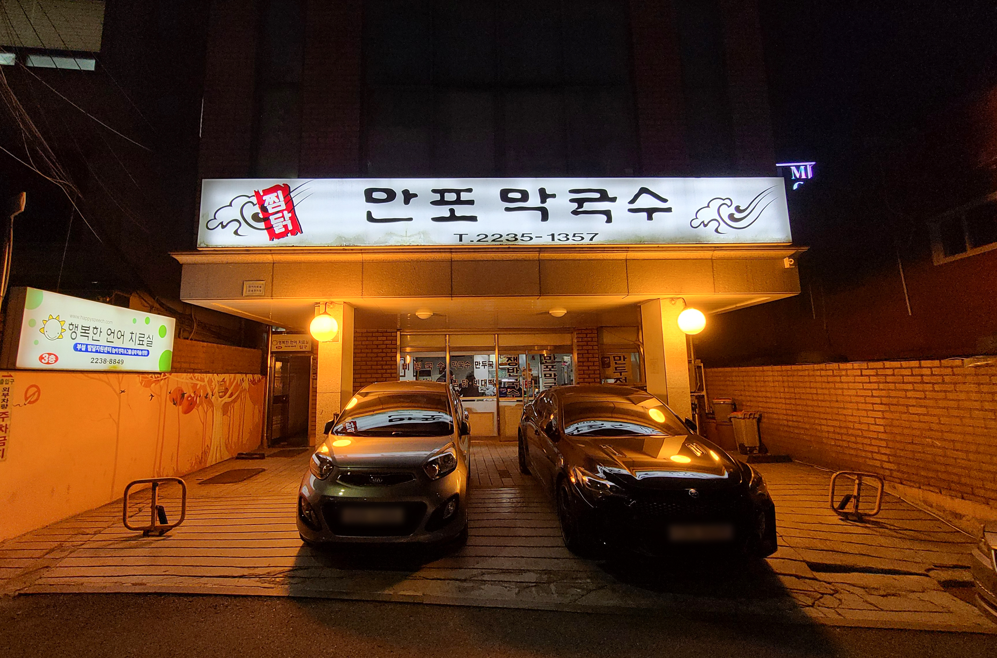 만포막국수는 인터넷 검색을 통해 알게 된 가게로, 막국수, 만두와 찜닭이 맛있기로 유명하다고 하여 방문한 가게입니다. 가게는 3・6호선 환승역이 있는 약수역 1번 출구 인근에 위치해 있으며, 가게 앞에는 주차공간이 협소하지만 있었고, 가게 안은 찜닭을 먹기 위한 손님들로 만석이었습니다.