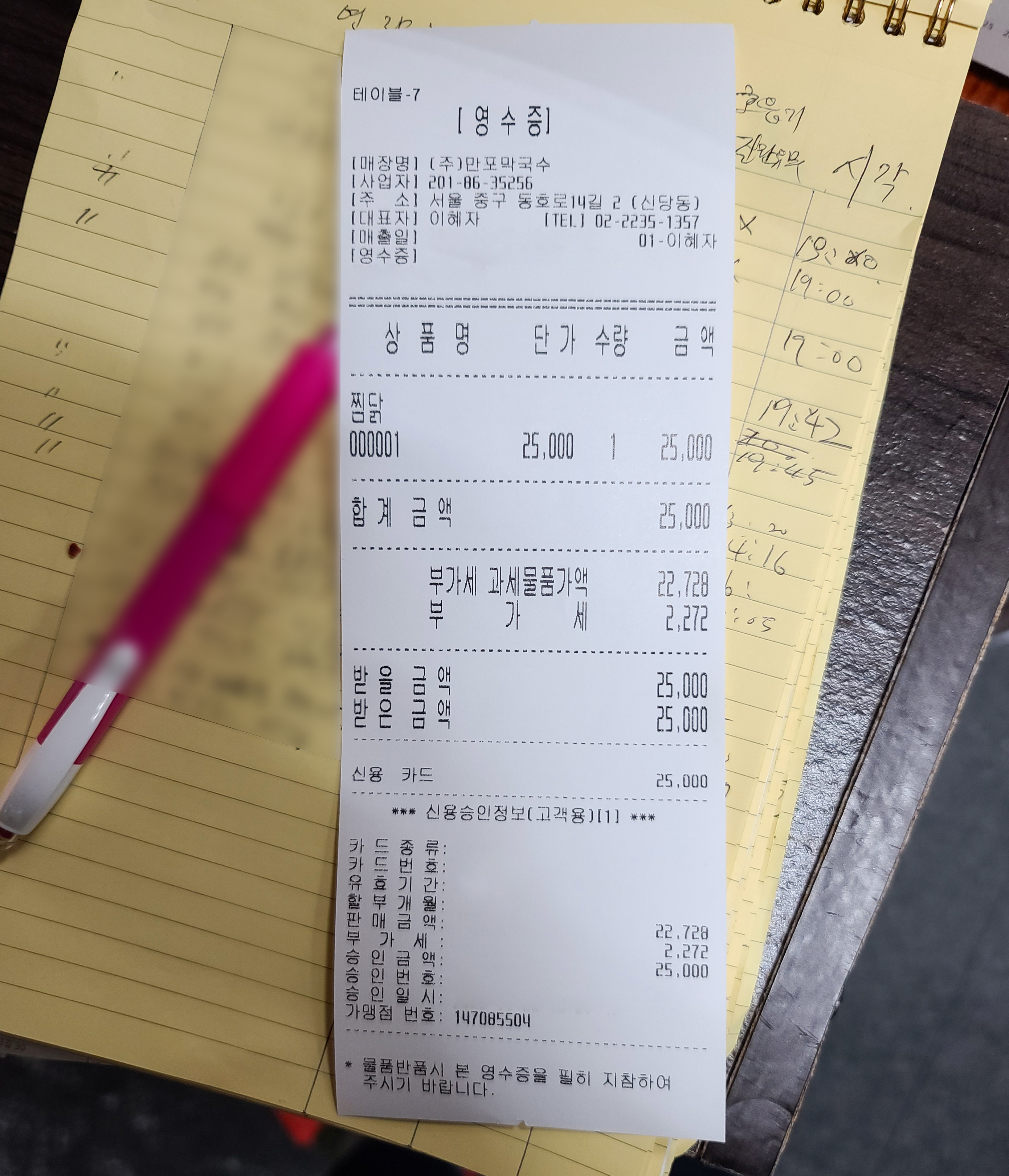 이 날 괜찮은 찜닭 맛집을 알게 되어 맛있게 식사하고 나왔습니다. 나중에 어르신 모시고 다시 방문해도 좋을 것 같은 가게였고요. 총금액은 25,000원이 나왔습니다. 만두도 맛있을 것 같았는데... 나중에 방문하거든 만두는 꼭 메뉴에 넣어서 먹어봐야겠습니다. 깔끔 담백한 이북식 찜닭을 맛보기 원하시는 분께 꼭 한번 들러보시라 추천해드리고 싶은 가게이고요. 정말 맛있게 식사한 가게였답니다.
