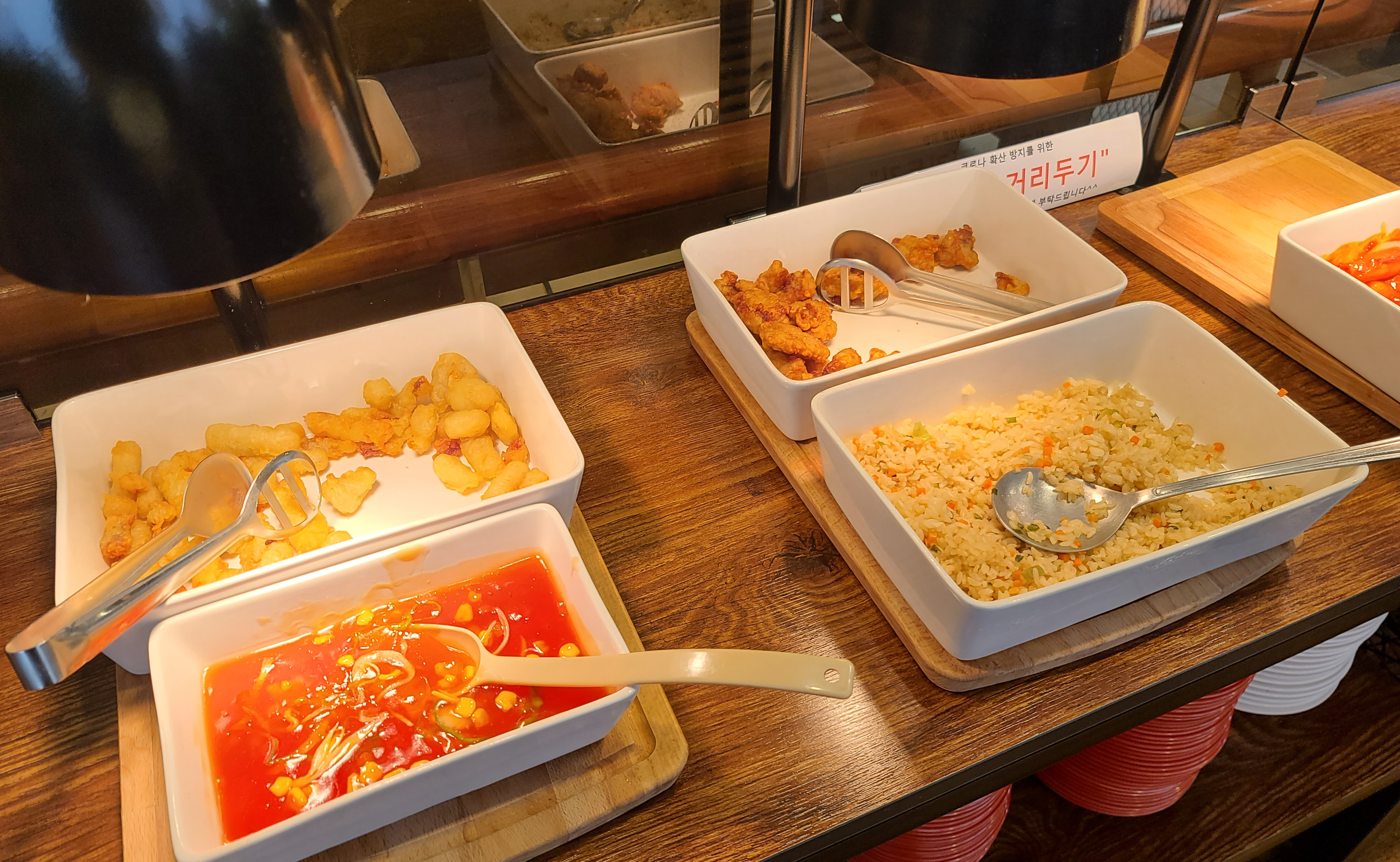 특히 탄산음료와 샐러드를 마음껏 골라먹을 수 있는 코너에서는 제가 좋아하는 치즈들도 많이 있고, 단호박샐러드, 감자샐러드, 계란샐러드, 계절과일, 시리얼 및 파스타까지 다양하게 갖추어져 있었습니다. 저는 요즘 샌드위치에 넣어먹는 계란 샐러드가 왜 이리도 맛있는지 계란 샐러드만 집중적으로 먹었습니다.