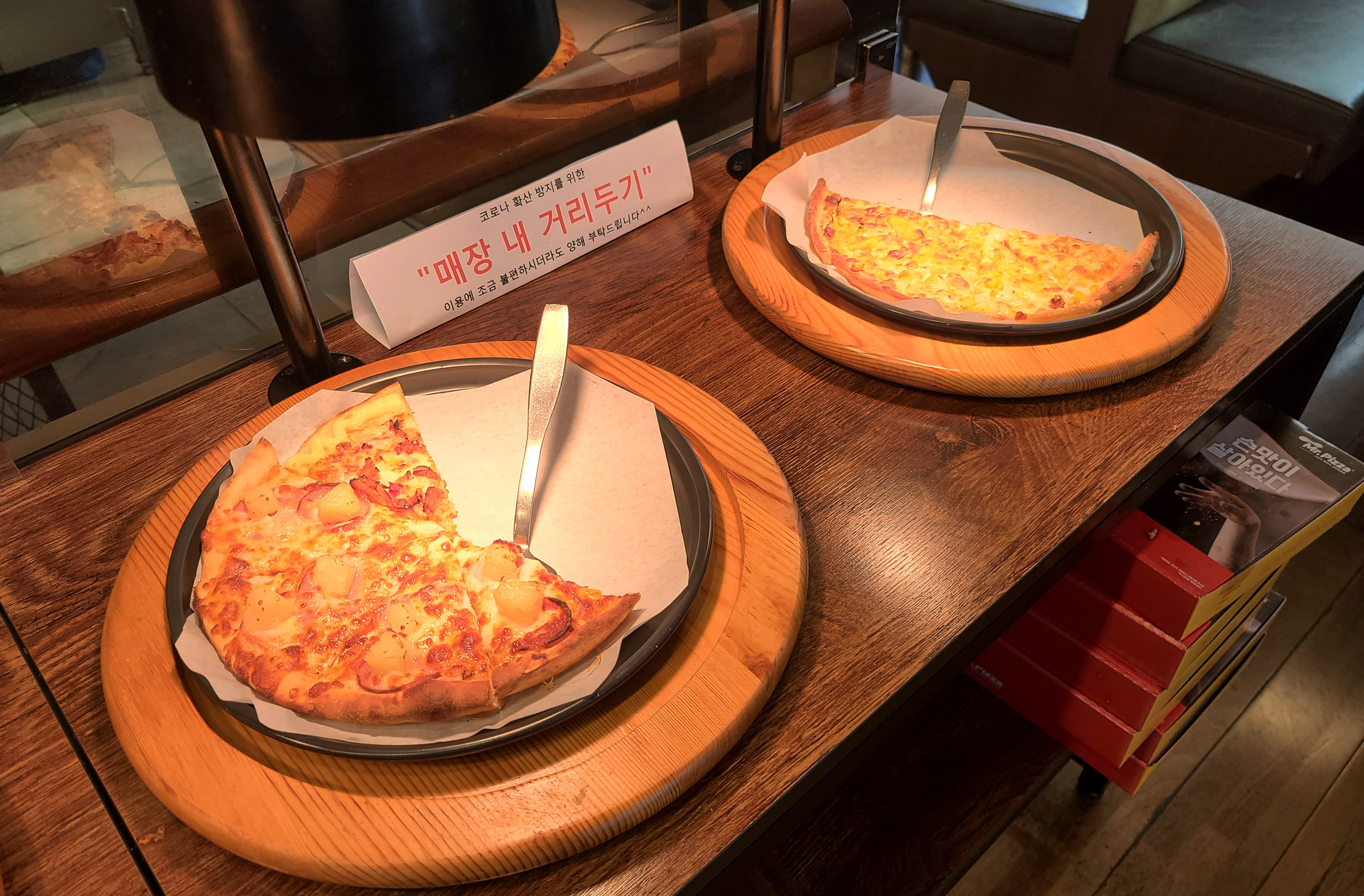 제가 이용한 미스터피자 피자뷔페는 미스터피자 문정점으로 가락동에 꽤 오래 있었던 피자집입니다. 발열검사 및 방문기록을 남기고 자리에 앉아 피자뷔페를 이용하는 것으로 주문하였습니다. 이 날 피자뷔페 비용은 제가 결제했고요. 친구는 이후의 시간에 비용을 지불했습니다. 우선 샐러드바는 위와 같이 튀김, 분식, 피자 등을 선택하여 먹을 수 있었습니다. 피자는 각자 다른 메뉴들로 번갈아가며 나왔습니다.
