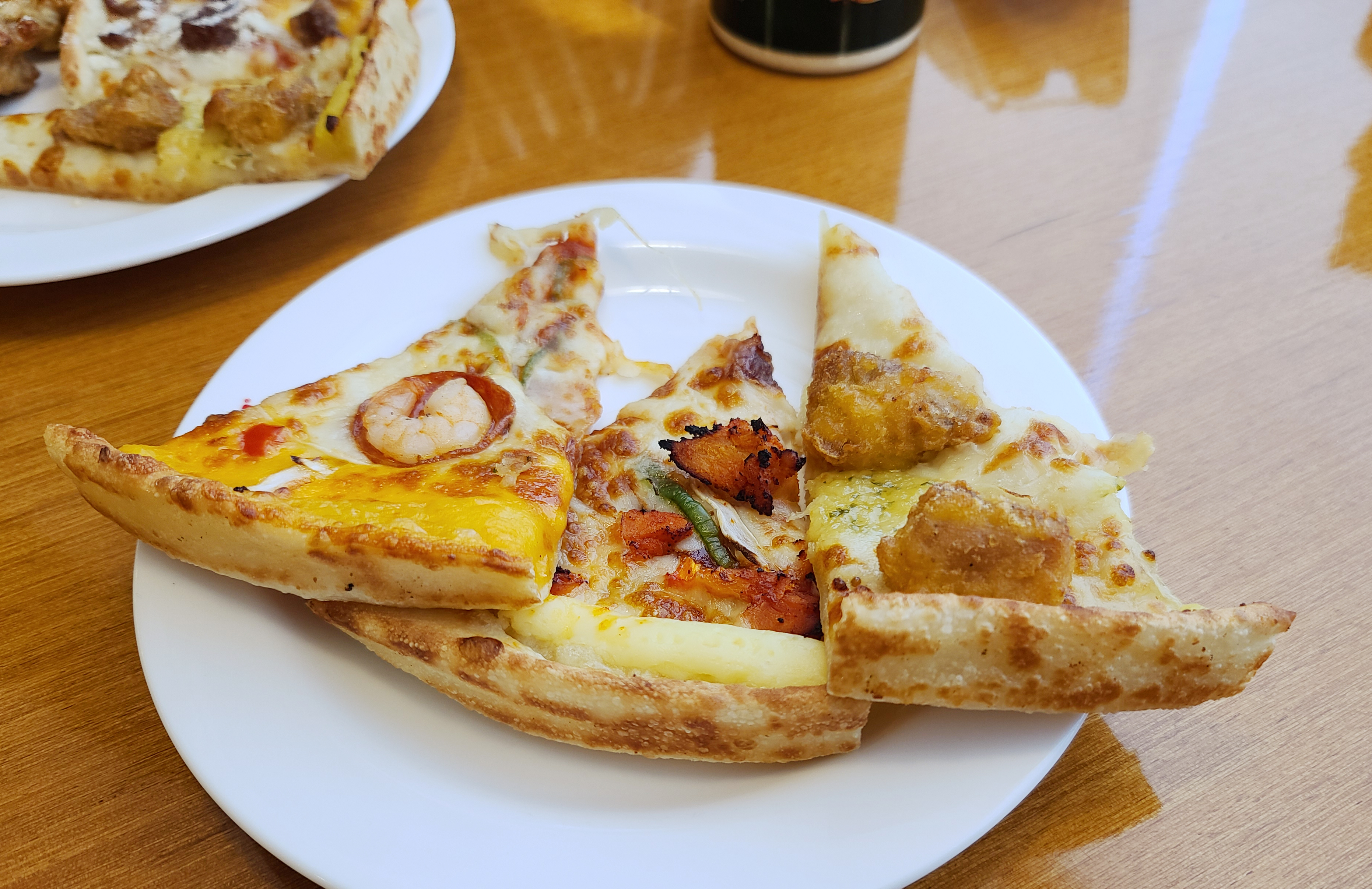 미스터 피자의 피자는 피자 끝 부분인 에지 부분을 얇게 만들어 빵을 먹기 싫어하는 사람도 부담 없이 먹을 수 있게 만들었더라고요. 샐러드바에 올라오는 피자의 양이 많은 것은 아니지만 자주 바뀌고 여러 가지 메뉴를 맛볼 수 있어서 괜찮았습니다.