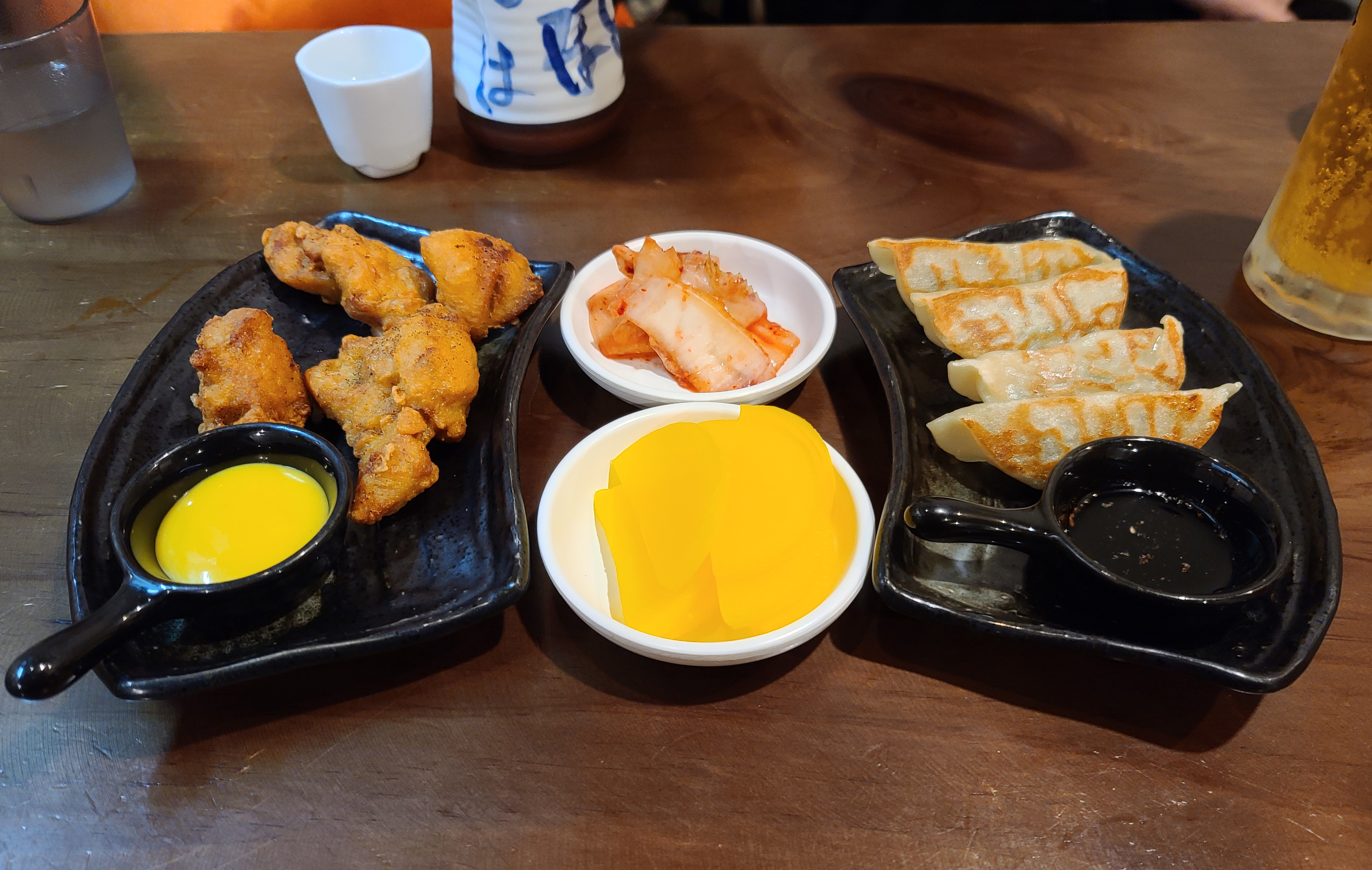 잇쇼니의 오꼬노미야끼도 꽤 두툼하고 양이 많아서 안주로 먹기에 괜찮았고요, 오뎅탕은 얼큰한 국물이 있어서 요즘같이 쌀쌀한 날씨에 먹기 좋았습니다. 이 날 3명이서 제법 많은 양의 메뉴를 다양하게 먹었는데요, 제 주관적인 기준으로 순위를 매기자면 마제라멘 > 대창덮밥 > 오꼬노미야끼 > 새우깡 > 오뎅탕 > 교자 = 가라아게 순으로 맛있었던 것 같습니다.