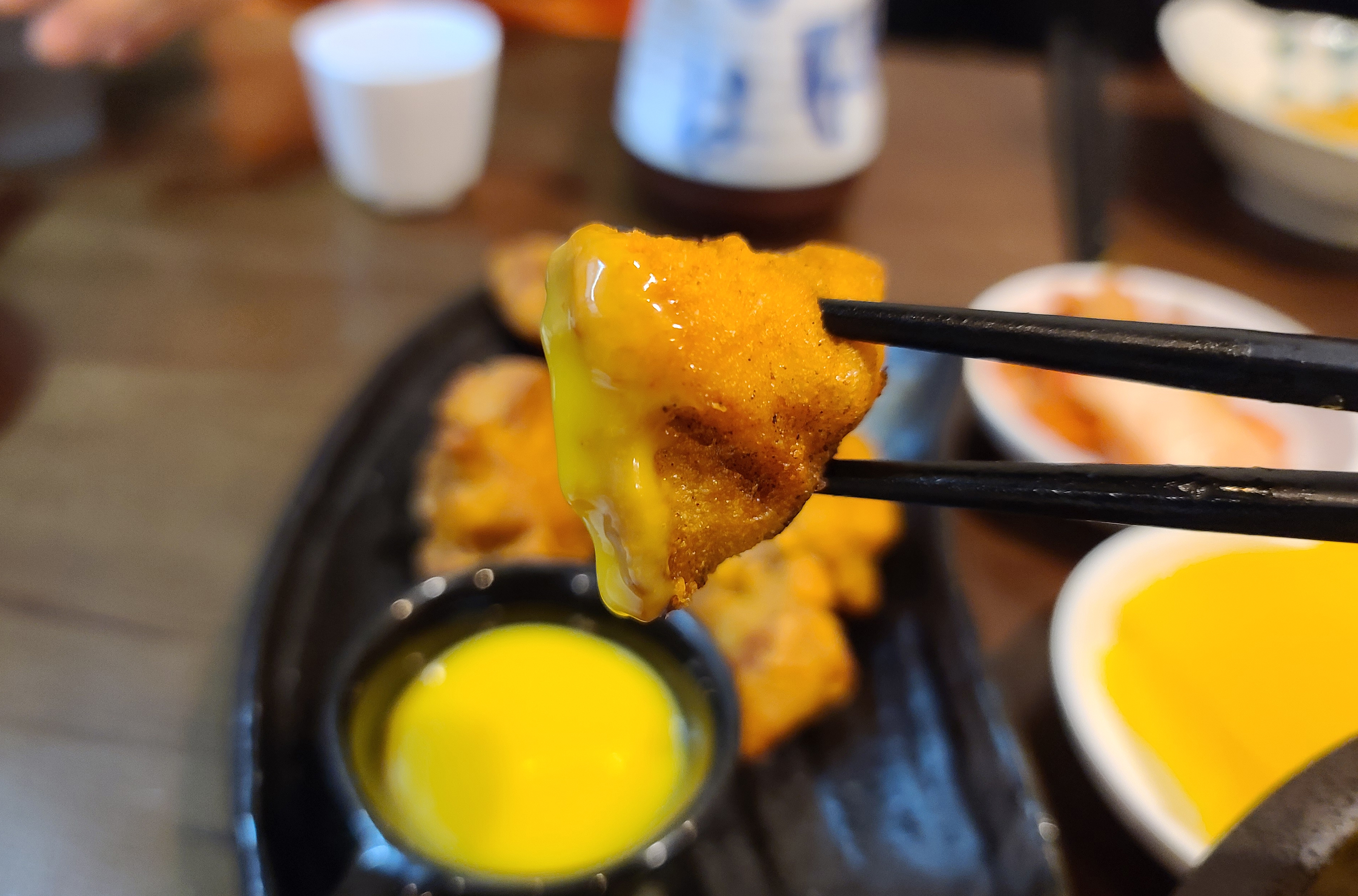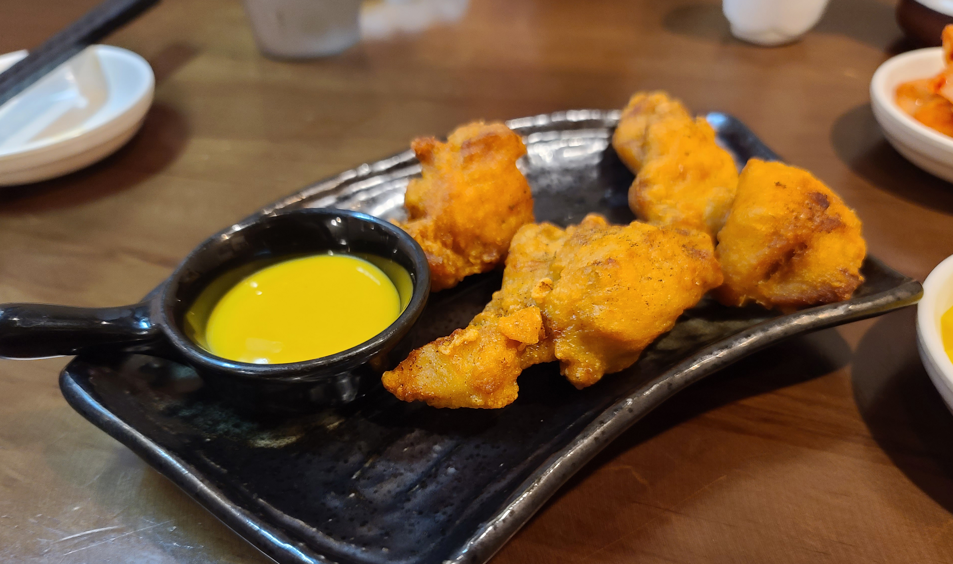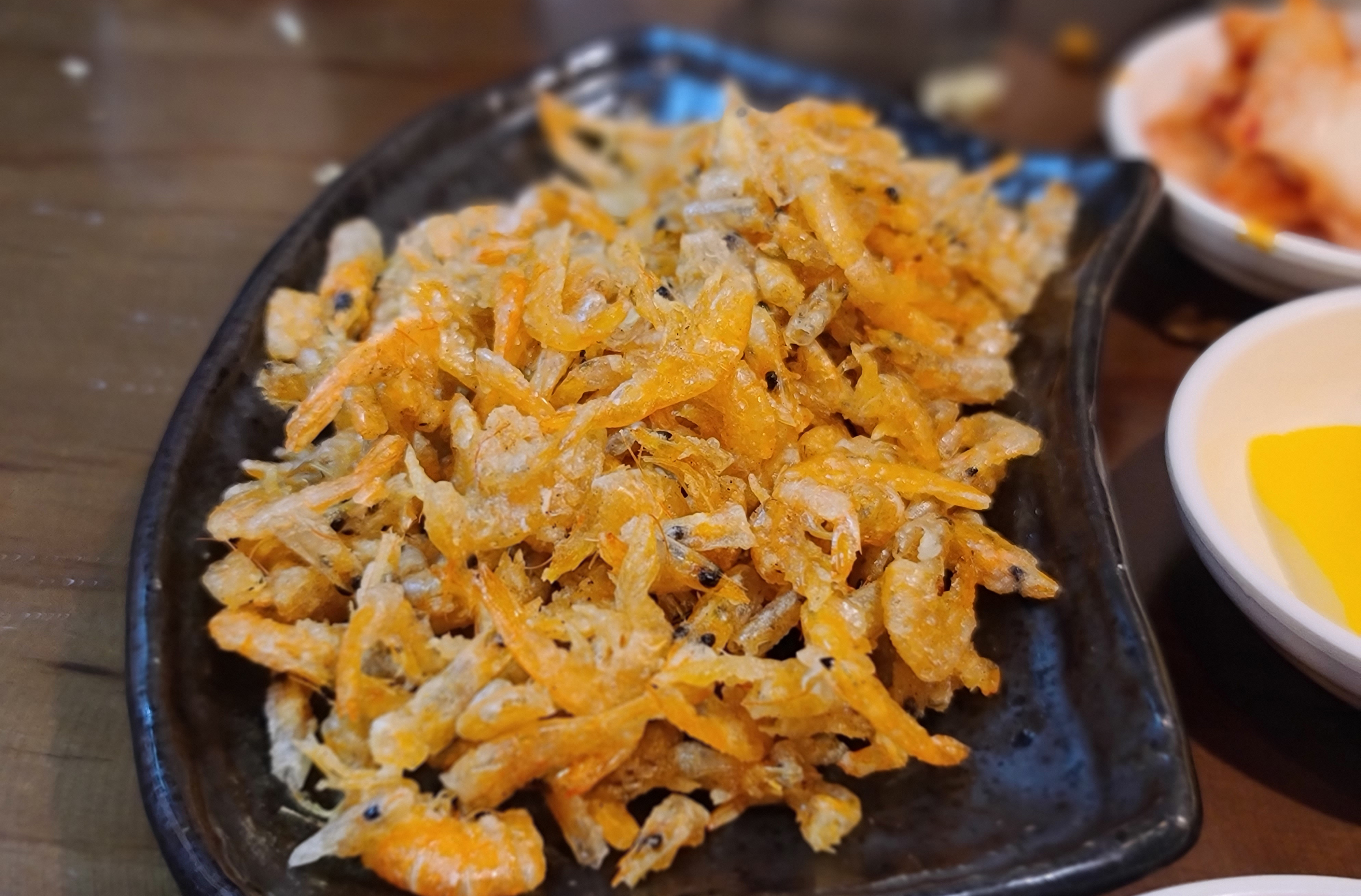 다음으로 이야기를 좀 나누면서 새우깡이라는 메뉴도 주문해봤습니다. 새우깡은 조그만 새우를 튀겨낸 새우튀김이었는데, 간이 되어있어 계속 손이 가는 메뉴였습니다. 자가용을 가져가서 술을 마시진 않았지만, 술을 마시는 분들에게는 꽤 괜찮은 안줏거리이지 않나 생각합니다.