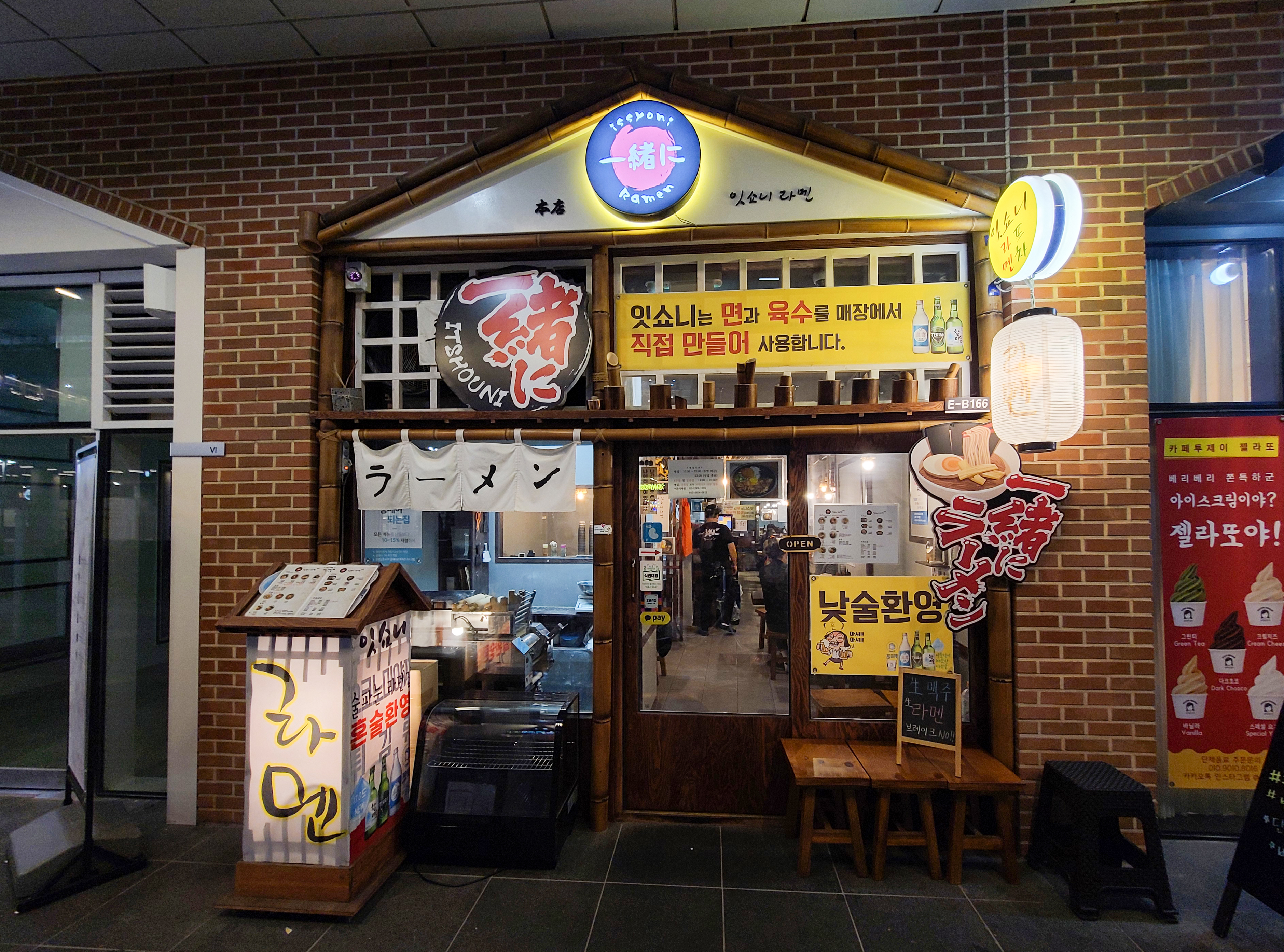 엠스테이트 지하 주차장에 주차를 한 뒤 잇쇼니 라멘집을 찾아갔습니다. 잇쇼니 라멘은 면과 육수를 직접 만들기에 더 신선하고 맛있는 라멘을 맛볼 수 있는 가게였습니다. 가게에는 가볍게 술 한잔 하러 온 손님들로 북적였습니다. (영업시간은 평일 10:30~22:00 까지이며, 주말과 공휴일은 11:00~21:00 까지 운영하는 가게였습니다.)