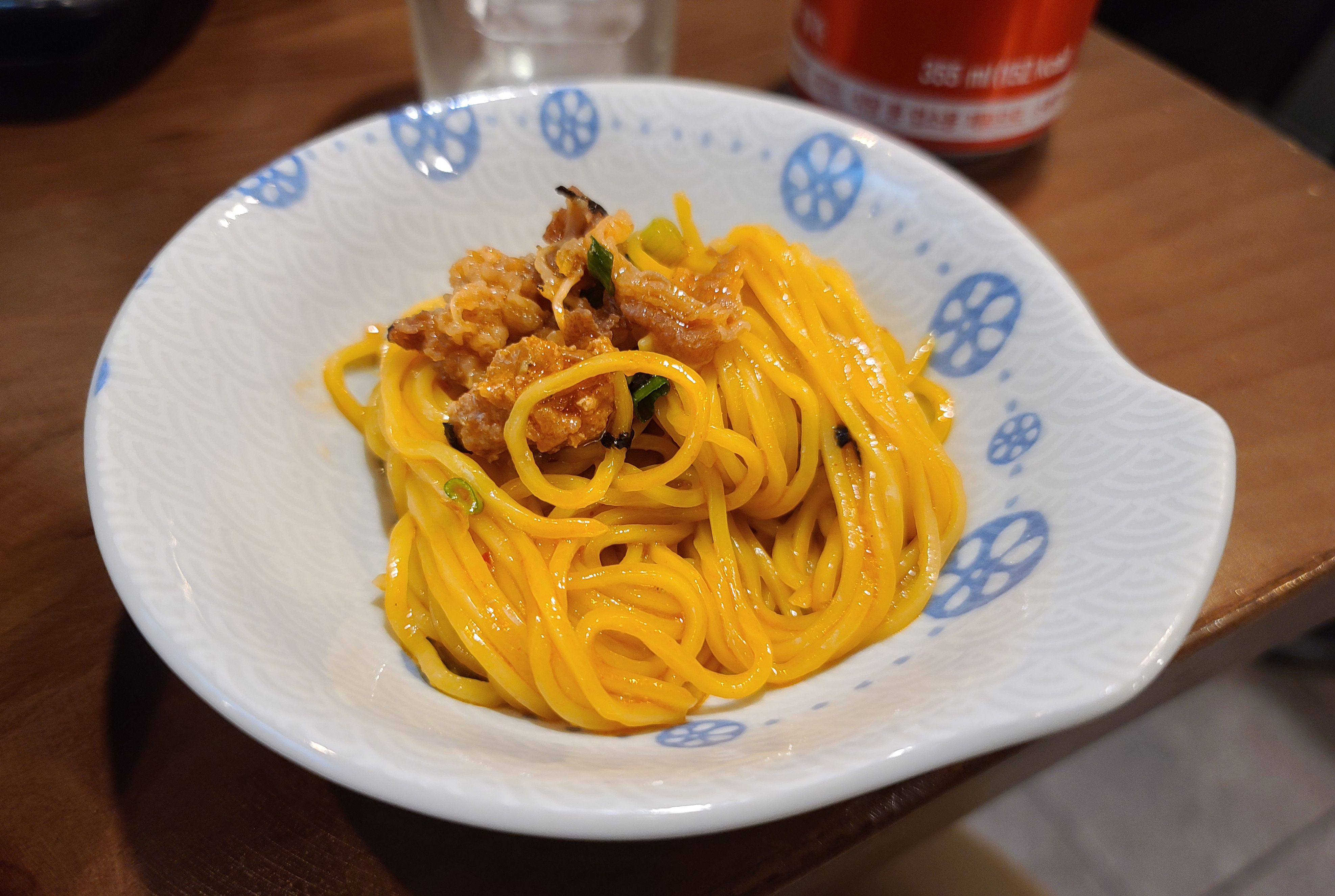 마제라멘은 비빔 라멘으로 약간 매콤한 맛이 있었는데, 평소 먹던 돈코츠 베이스의 라멘과 달리 된장이 첨가되어 맛이 오묘했습니다. 대창마제라멘도 있었는데 저는 대창덮밥을 같이 주문하였기에 마제라멘만 먹었습니다. 저는 개인적으로 느끼한 맛이 적은 마제라멘이 맛있었다고 생각합니다.