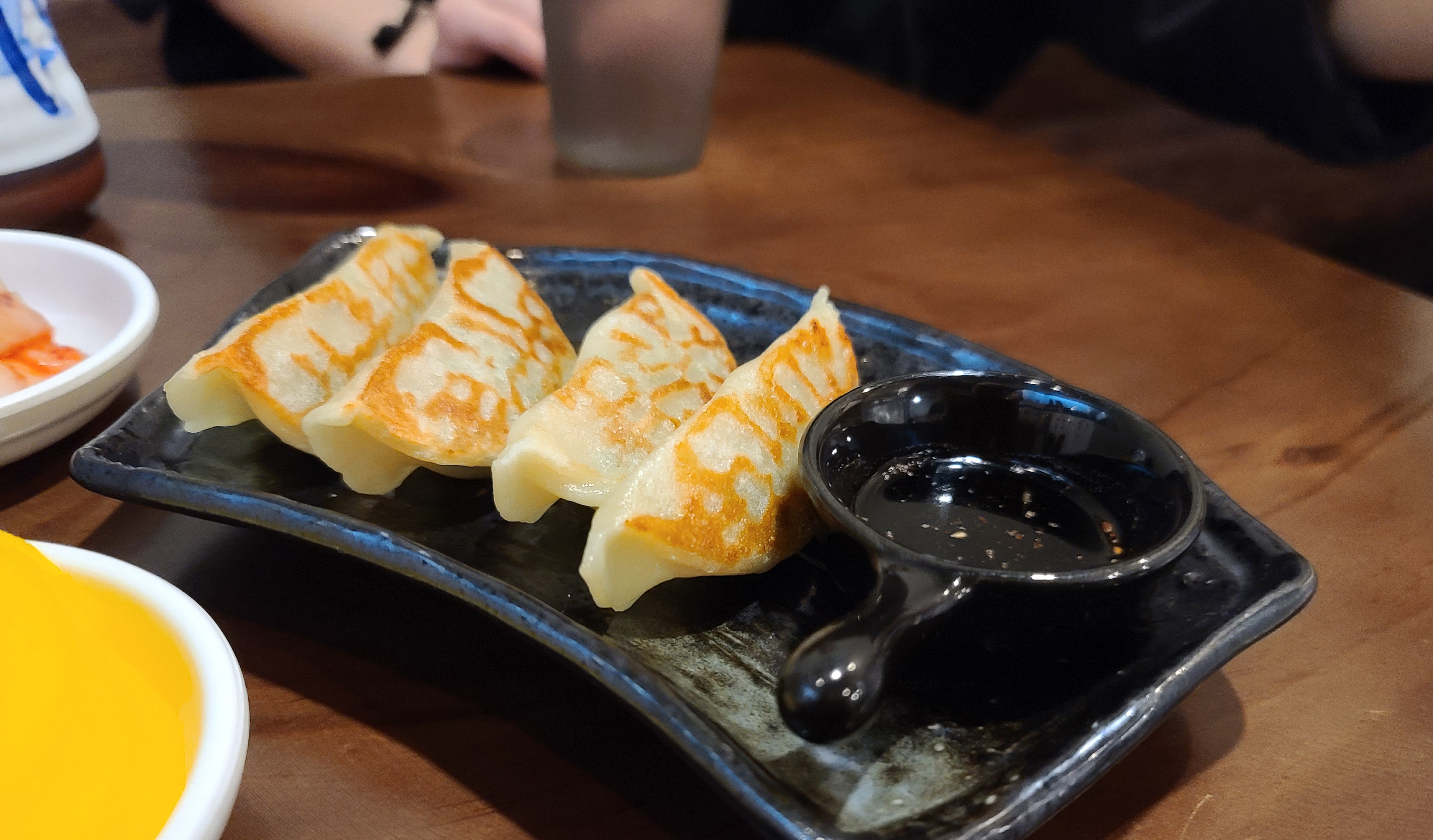 먼저 잇쇼니 라멘의 '교자'와 '가라아게'가 나왔습니다. 교자는 피가 좀 두꺼운 편이었는데 그런대로 먹을만했고, 가라아게는 머스터드 소스와 함께 제공되었는데 약간 느끼한 게 제 취향은 아니었습니다.