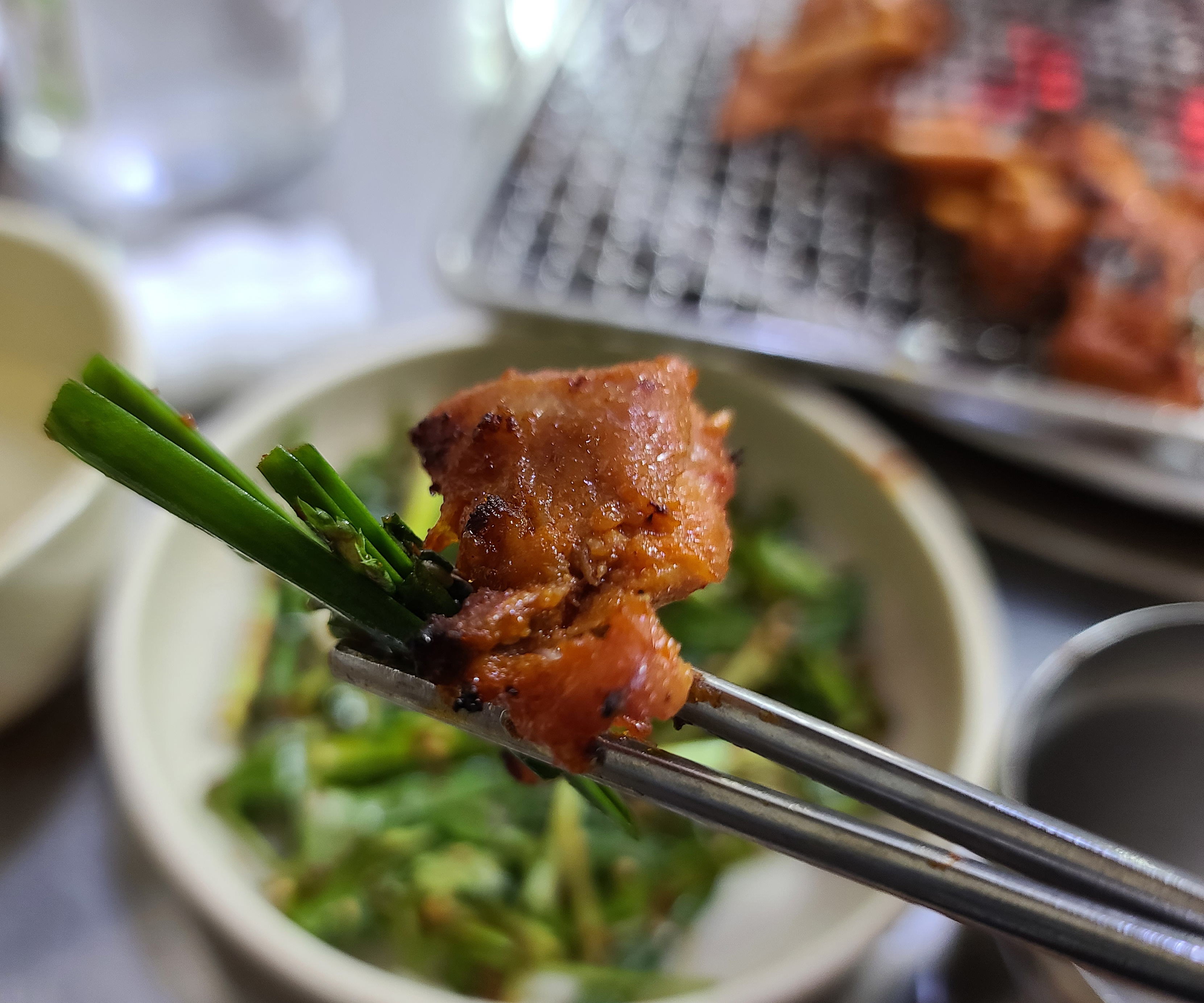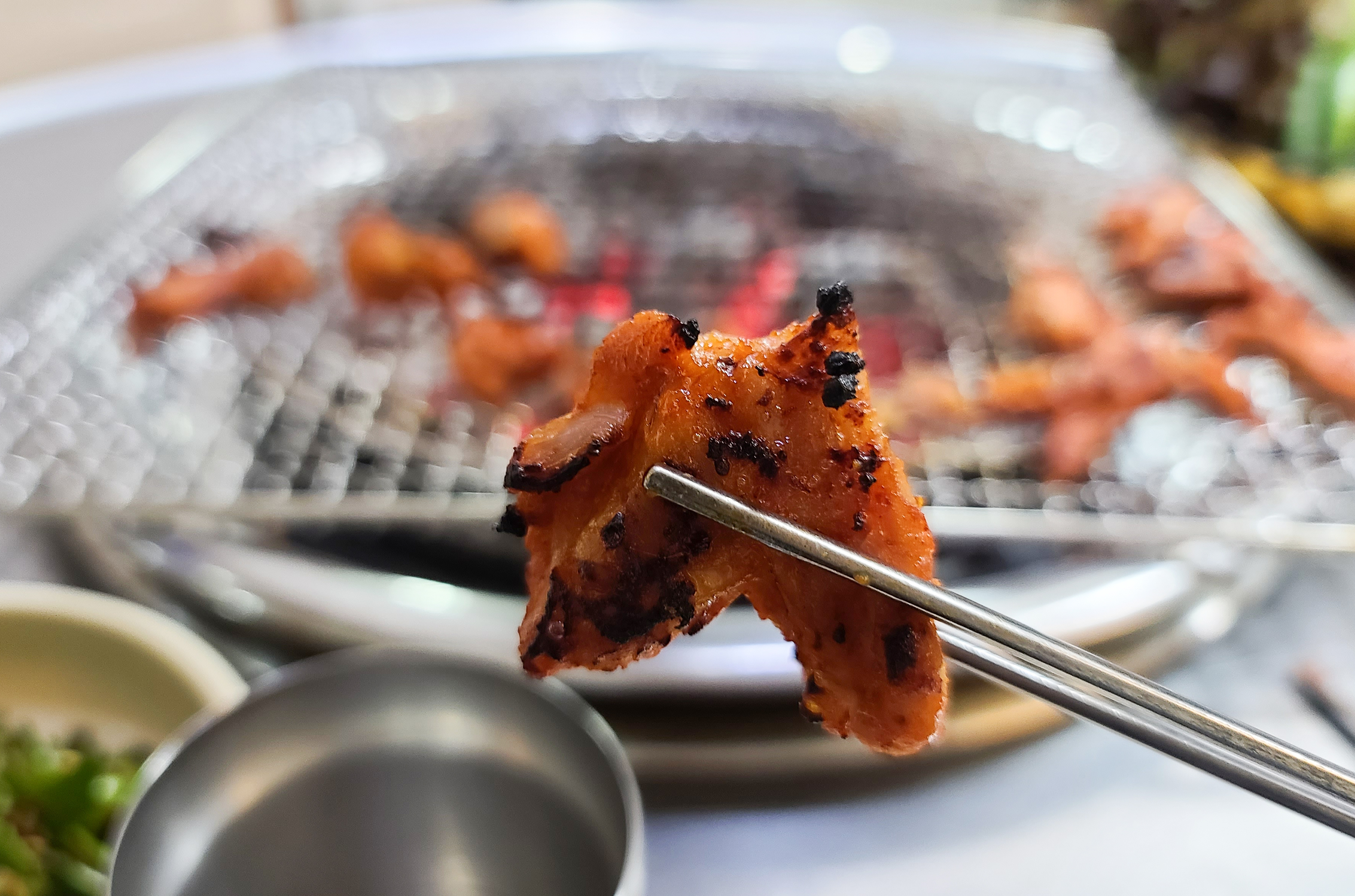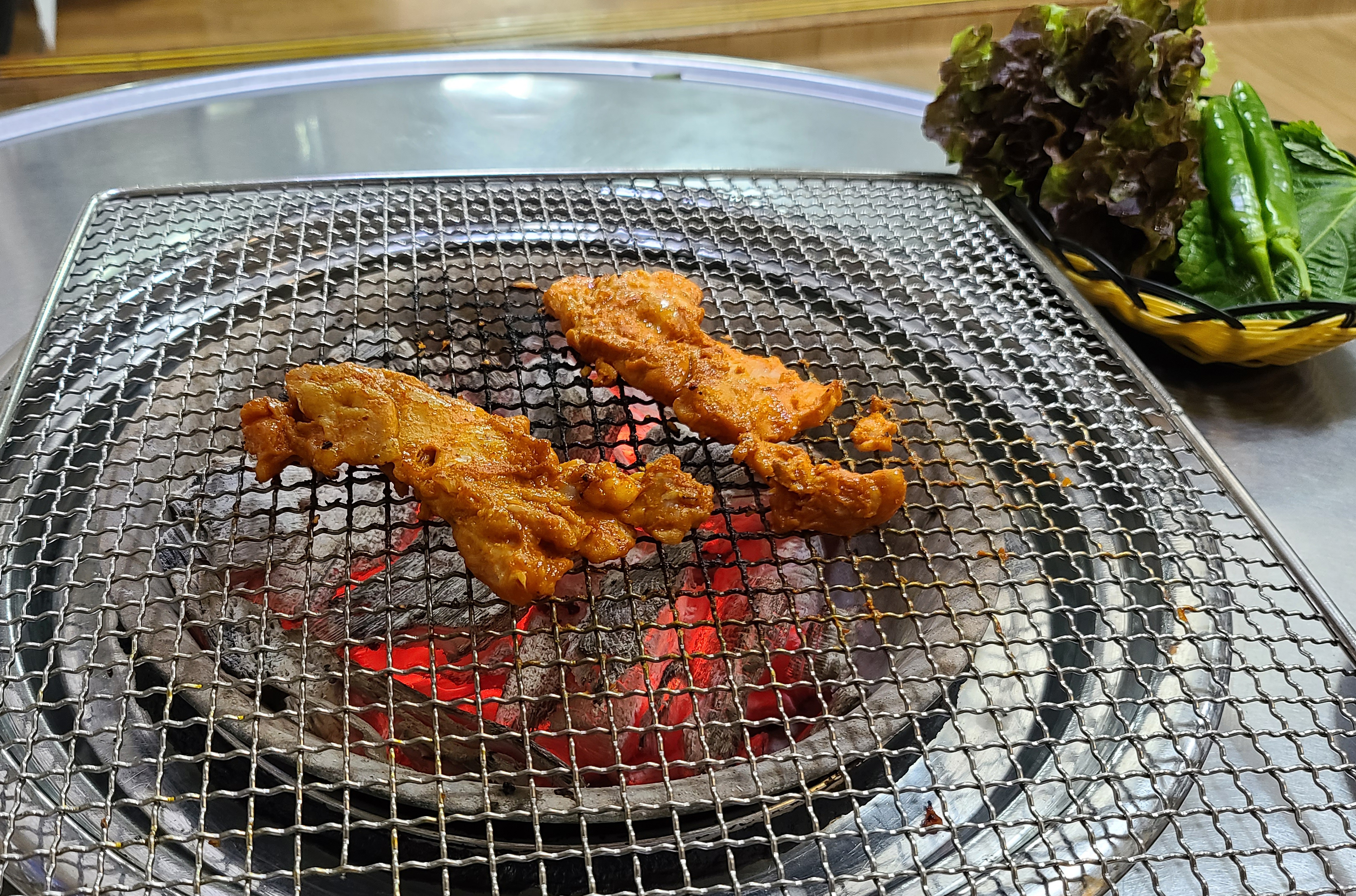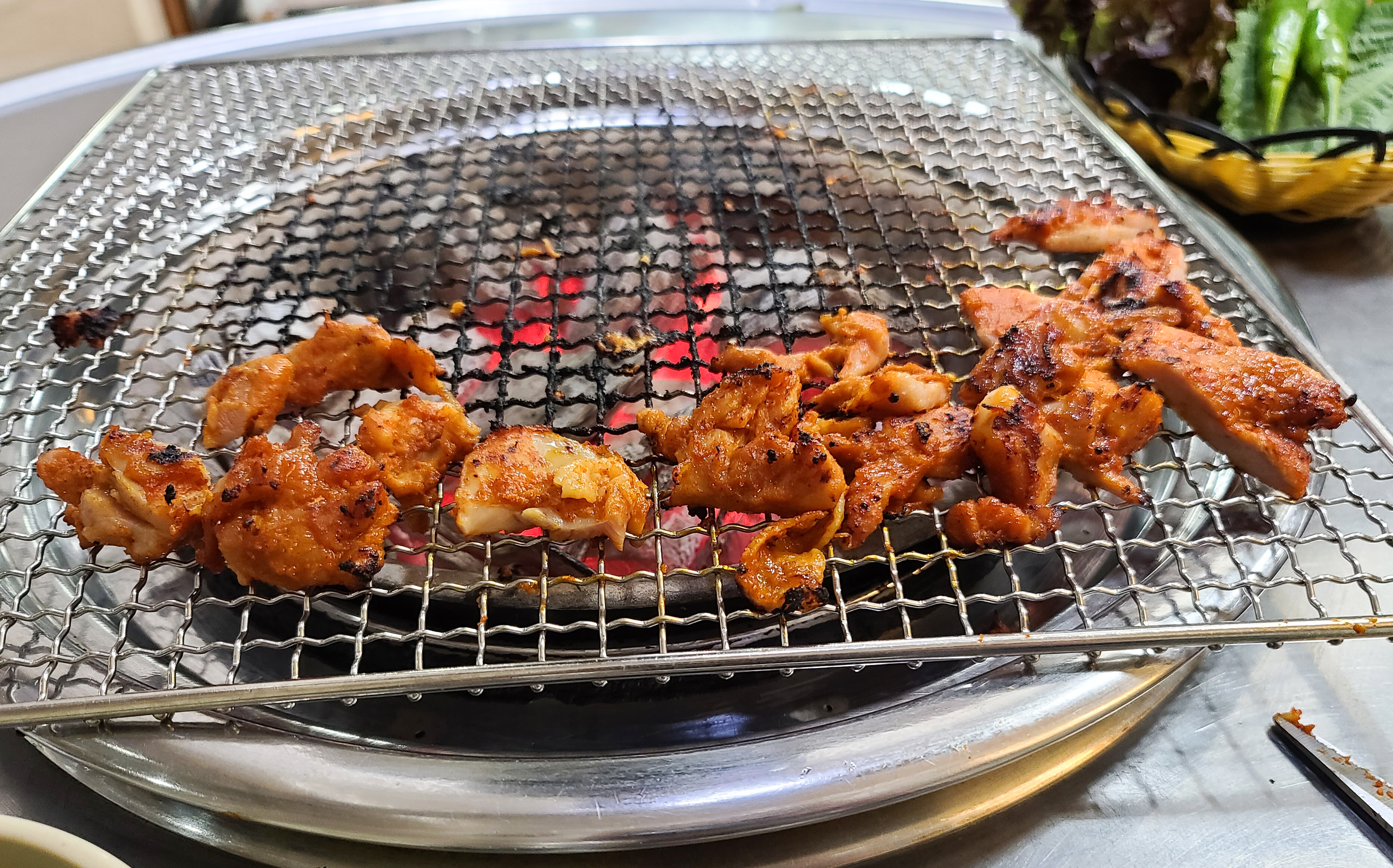 닭갈비는 양념이 되어있어 10초에 한 번씩 뒤집어주라고 하더라고요, 자주 뒤집어주는 게 조금 번거로웠지만 닭갈비는 맛이 괜찮았습니다. 사실 서비스만 괜찮았으면 더 맛있게 먹고 추가로 메뉴도 주문하여 블로그에 소개하는 게 아깝지 않았을 텐데, 첫 방문에 불친절을 겪으니 먹는 내내 기분은 썩 좋지 않더라고요.