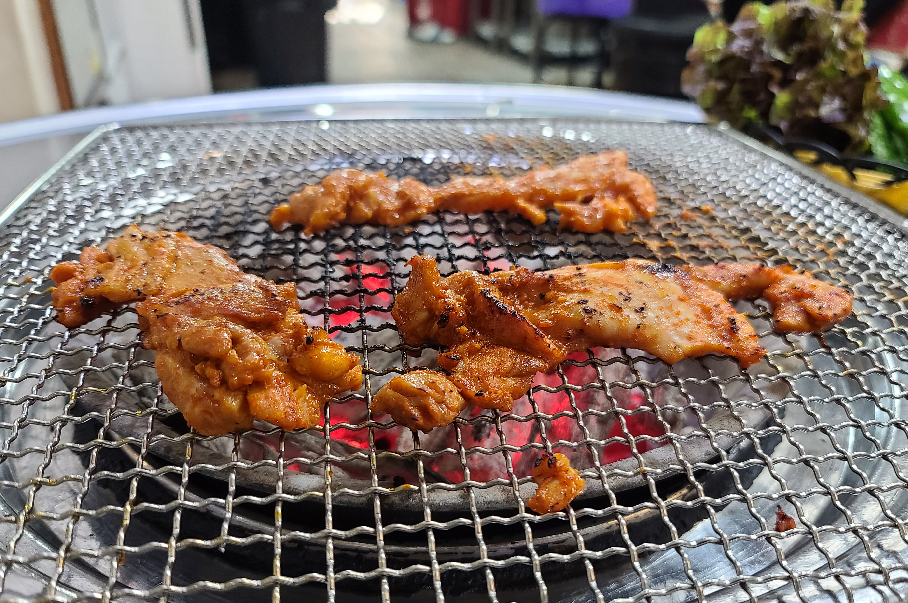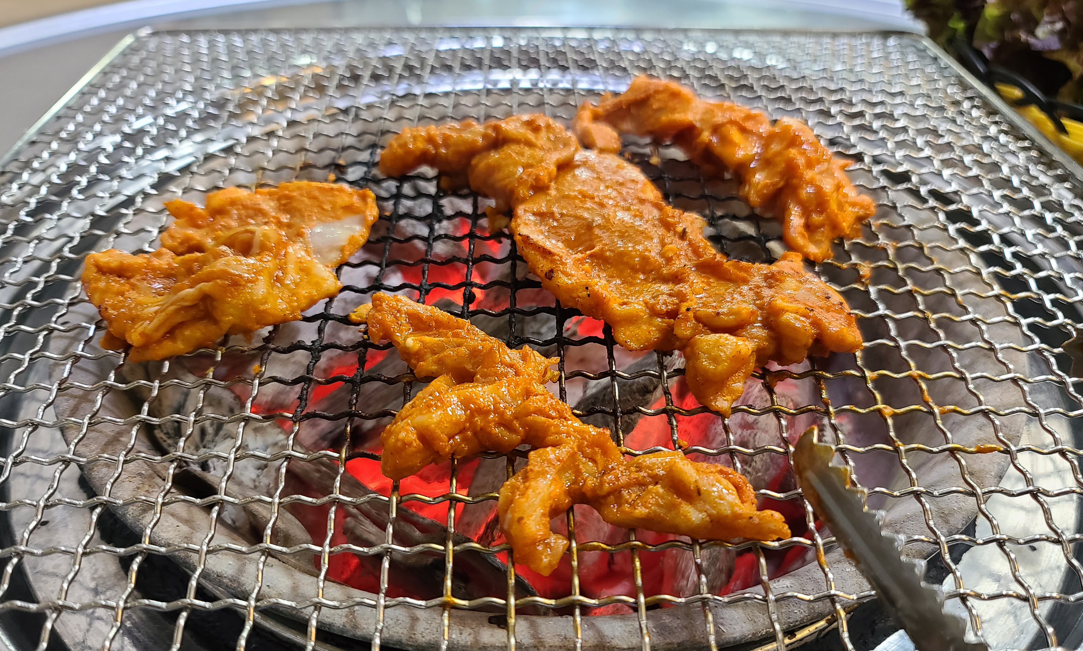 닭갈비는 양념이 되어있어 10초에 한 번씩 뒤집어주라고 하더라고요, 자주 뒤집어주는 게 조금 번거로웠지만 닭갈비는 맛이 괜찮았습니다. 사실 서비스만 괜찮았으면 더 맛있게 먹고 추가로 메뉴도 주문하여 블로그에 소개하는 게 아깝지 않았을 텐데, 첫 방문에 불친절을 겪으니 먹는 내내 기분은 썩 좋지 않더라고요.