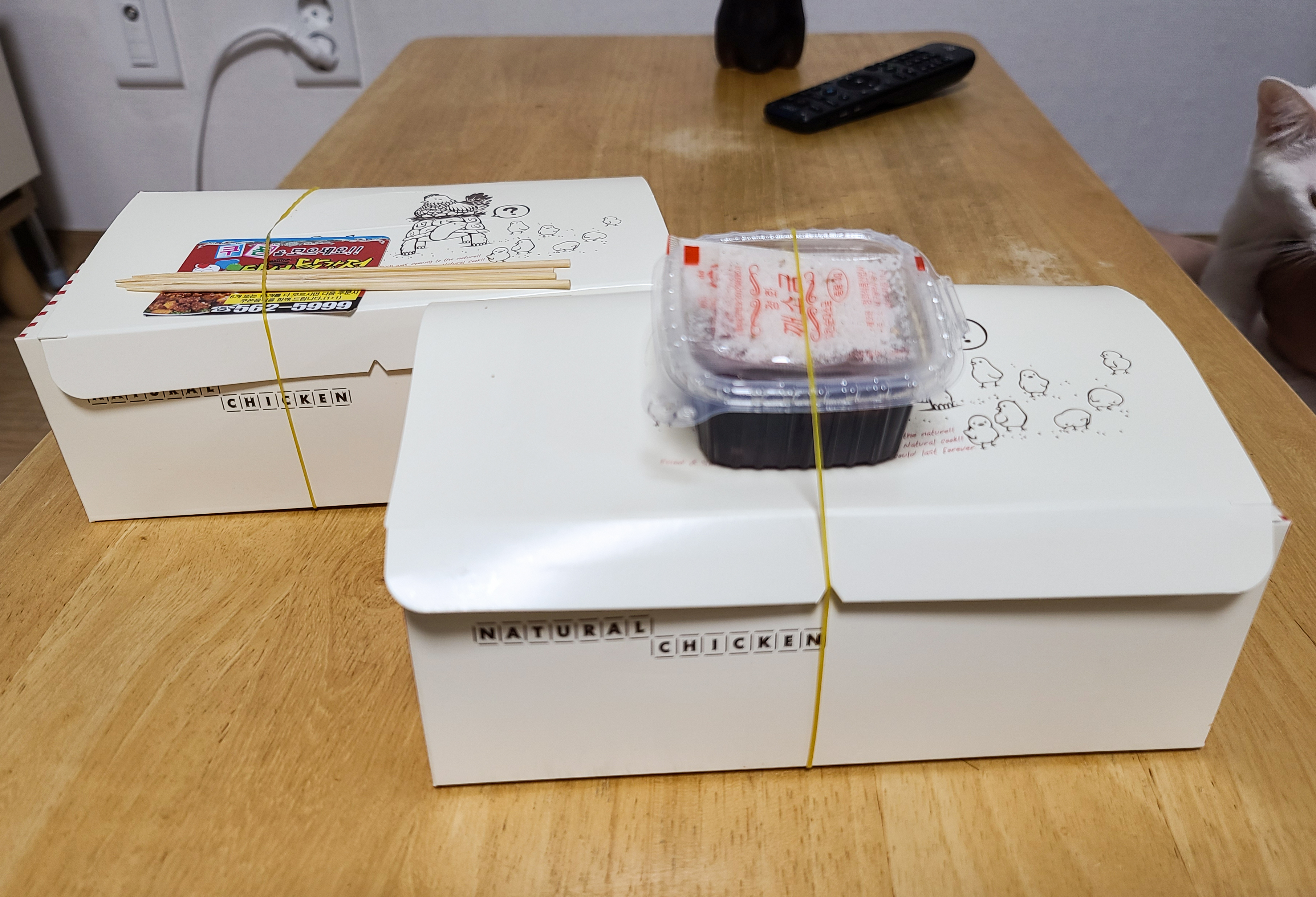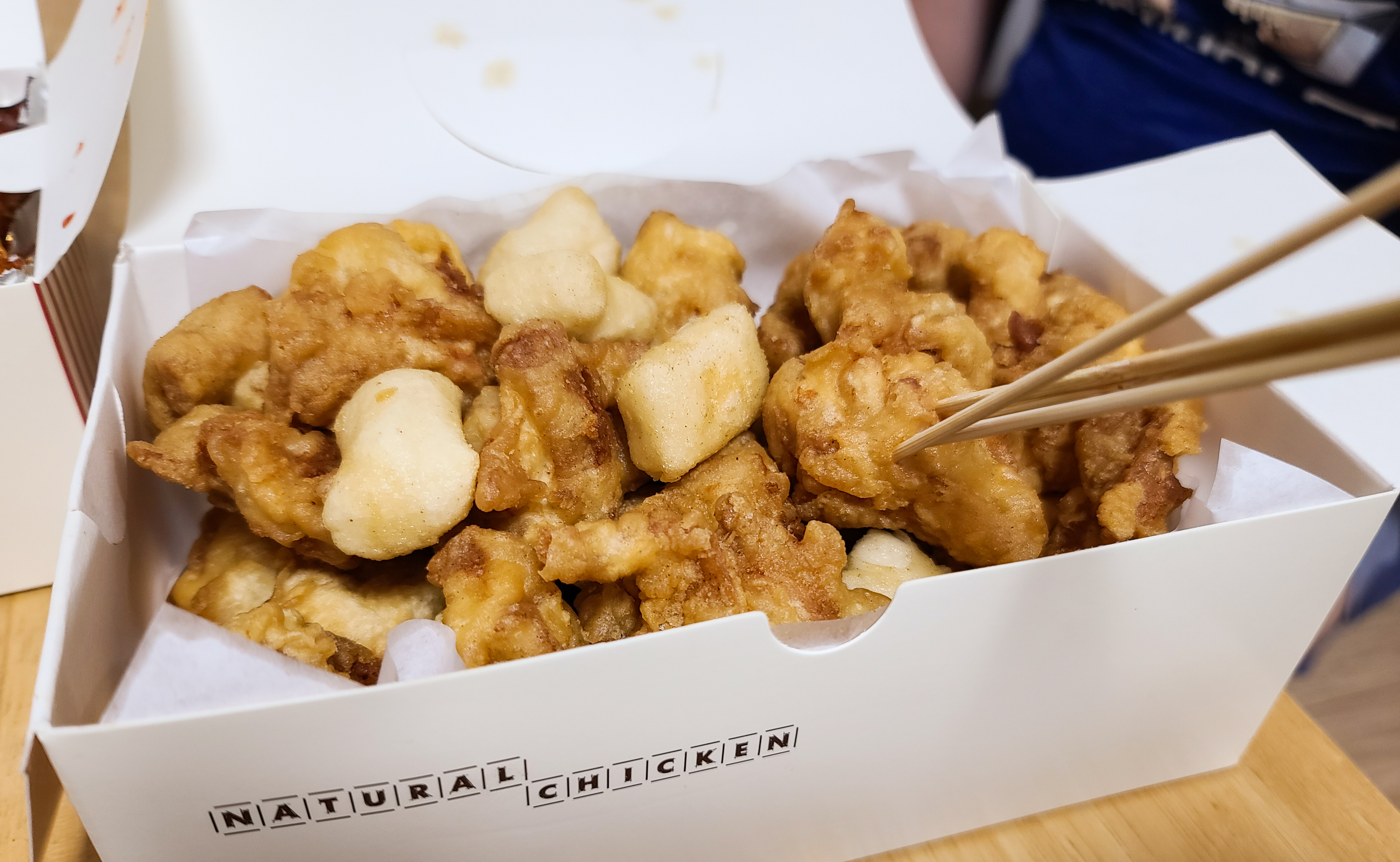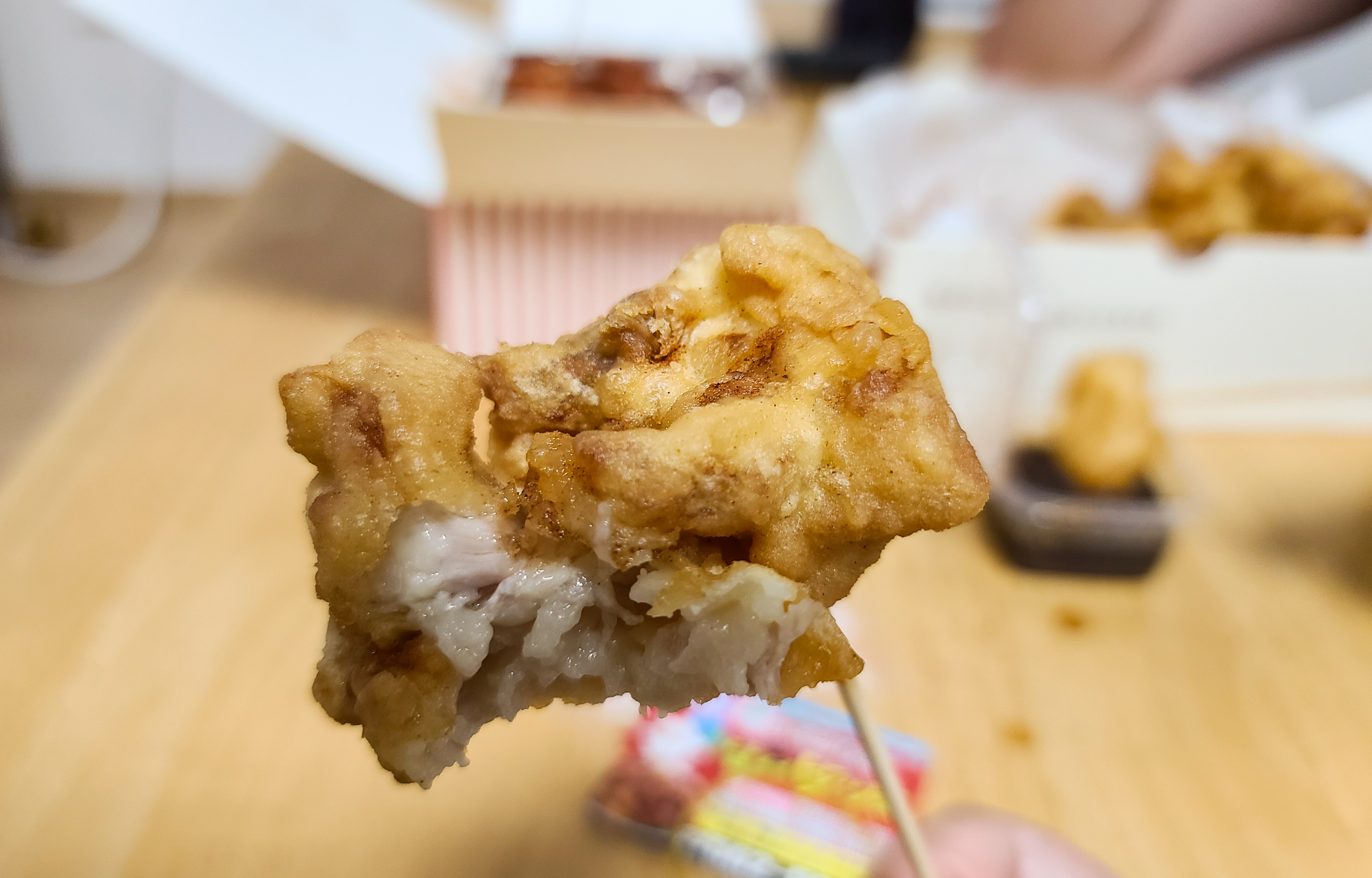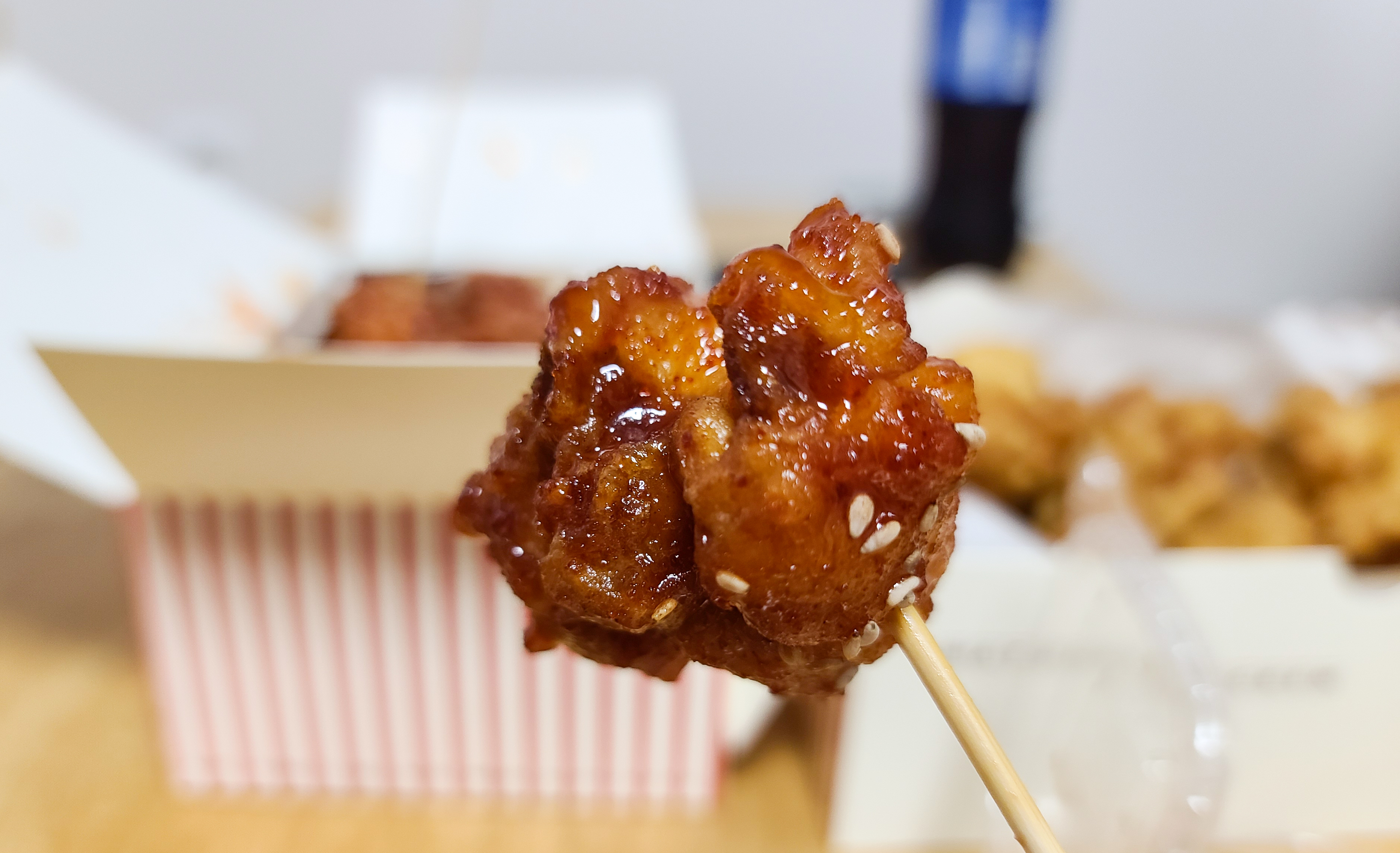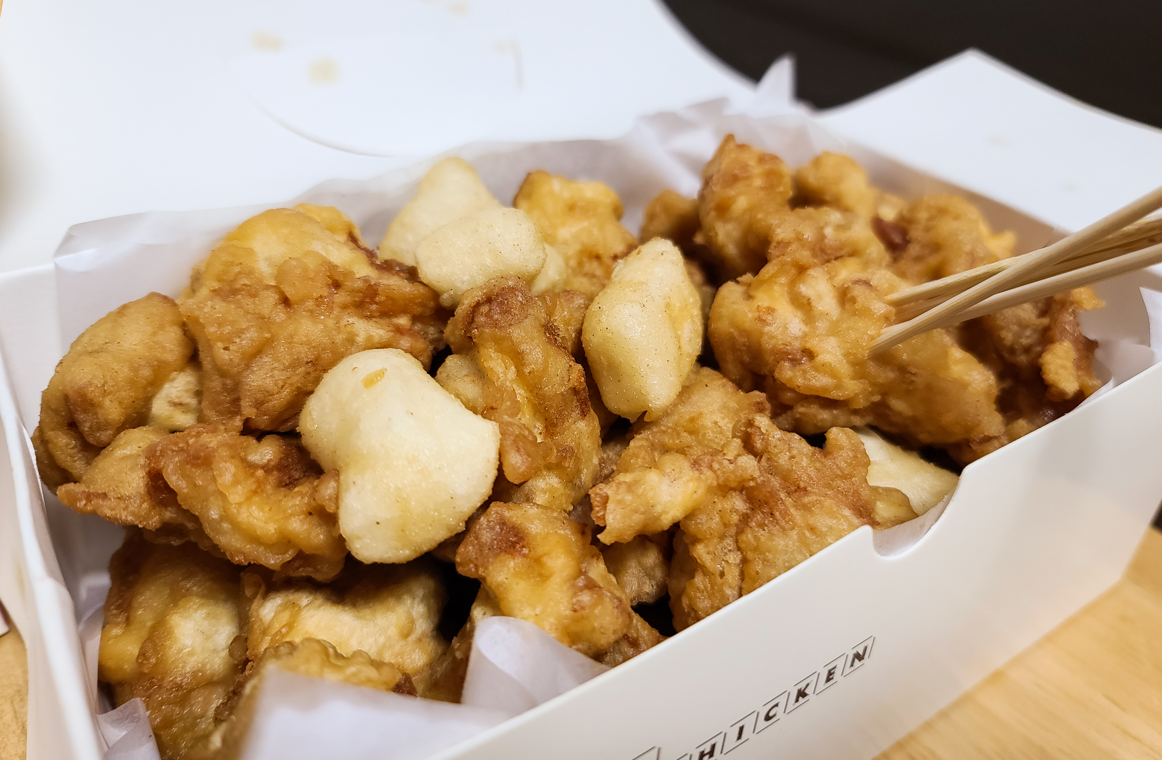 닭강정 쿠폰은 따로 챙겨두고, 치킨과 함께 먹을 양념간장과 소금을 찍어먹을 수 있도록 따로 준비했습니다. 치킨은 조각이 너무 크지도 않고, 한 입 크기로 되어있어 편하게 먹을 수 있었습니다.
