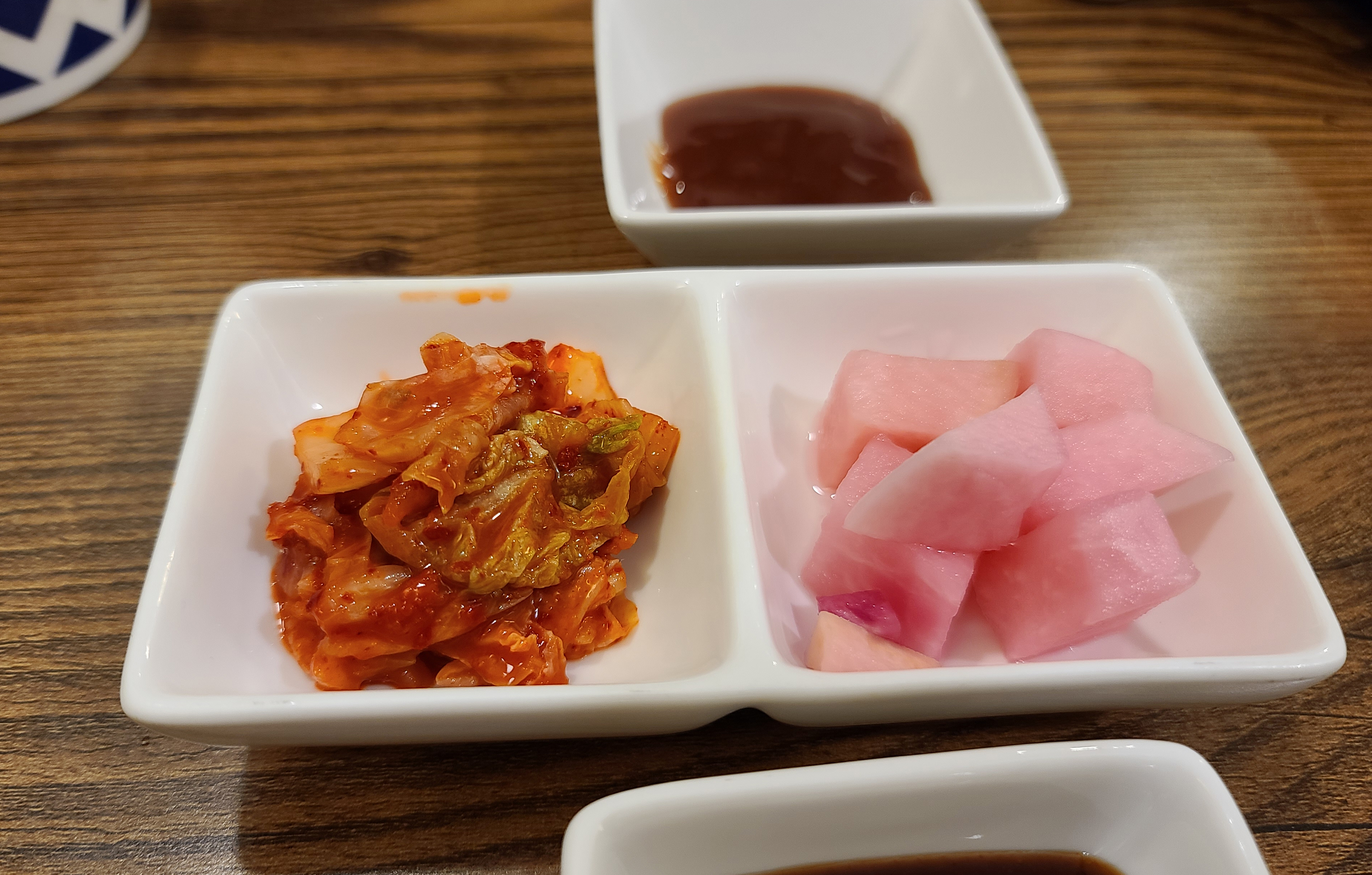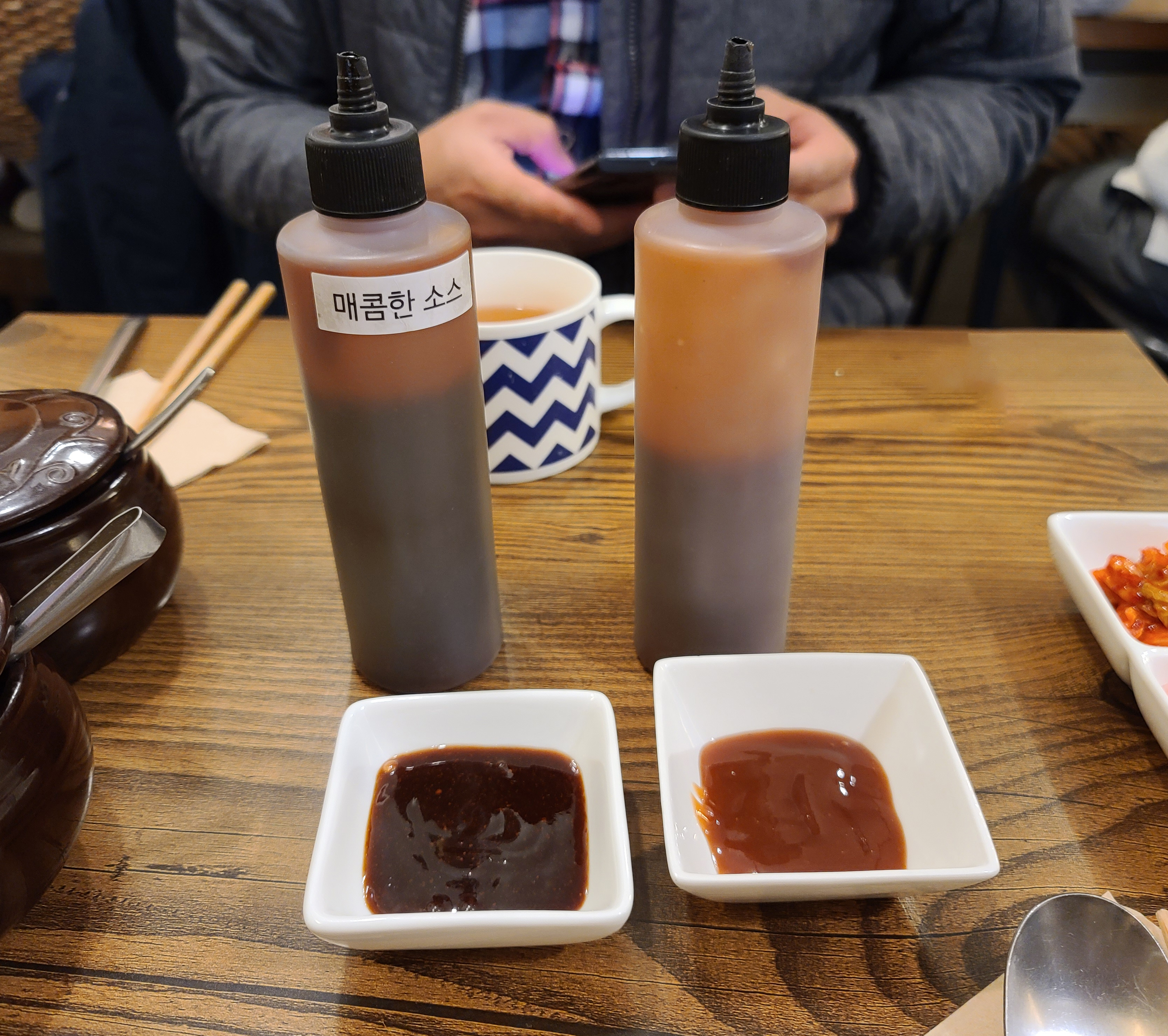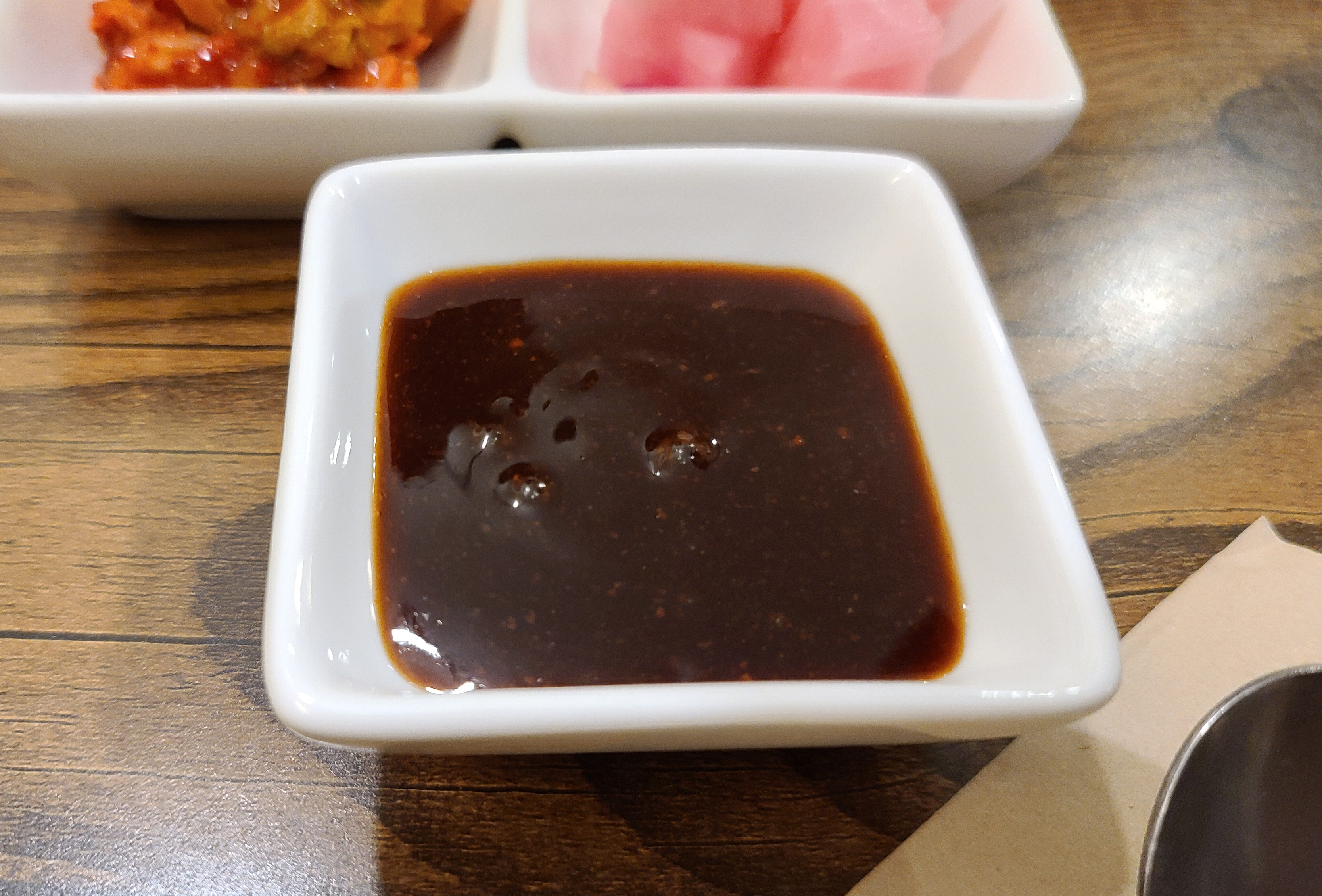 바삭한식당은 기본적으로 장국을 제공하고 있으며, 배추김치와 무 피클은 기호에 따라서 덜어먹을 수 있었습니다. 소스는 일반 소스와 매콤한 소스가 있었는데, 저는 개인적으로 매콤한 소스가 더 맛있는 것 같더라고요. 약간 쏘는 듯 하지만 돈까스의 느끼함도 잡아주고, 꽤 매력적인 맛이었습니다.