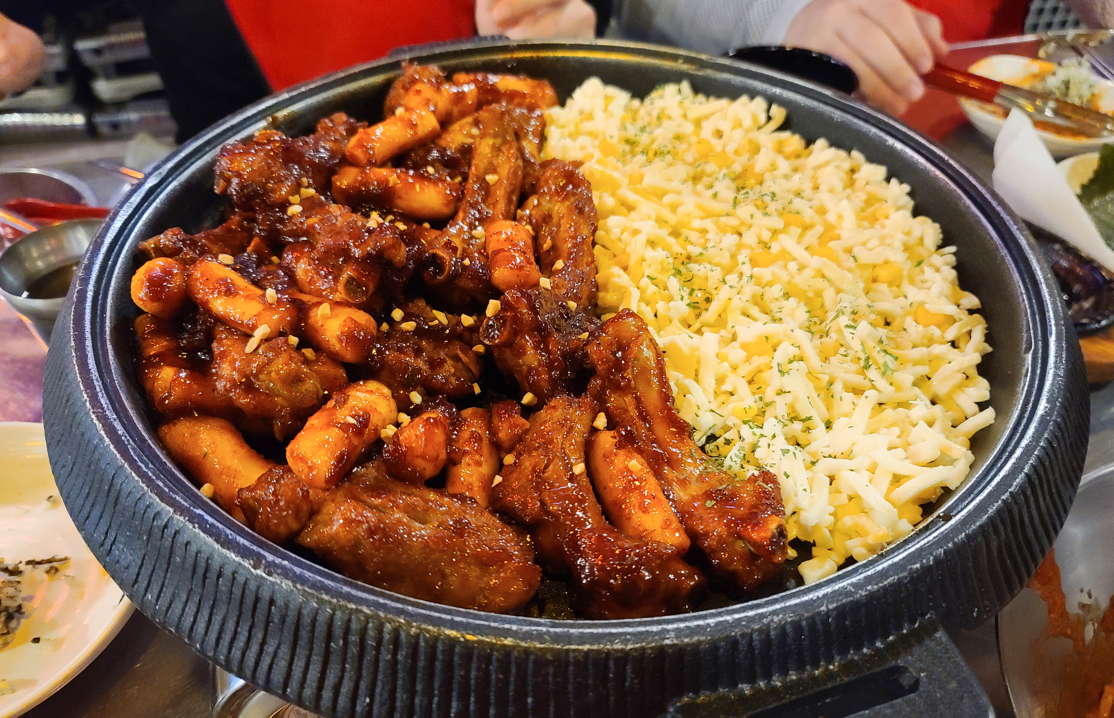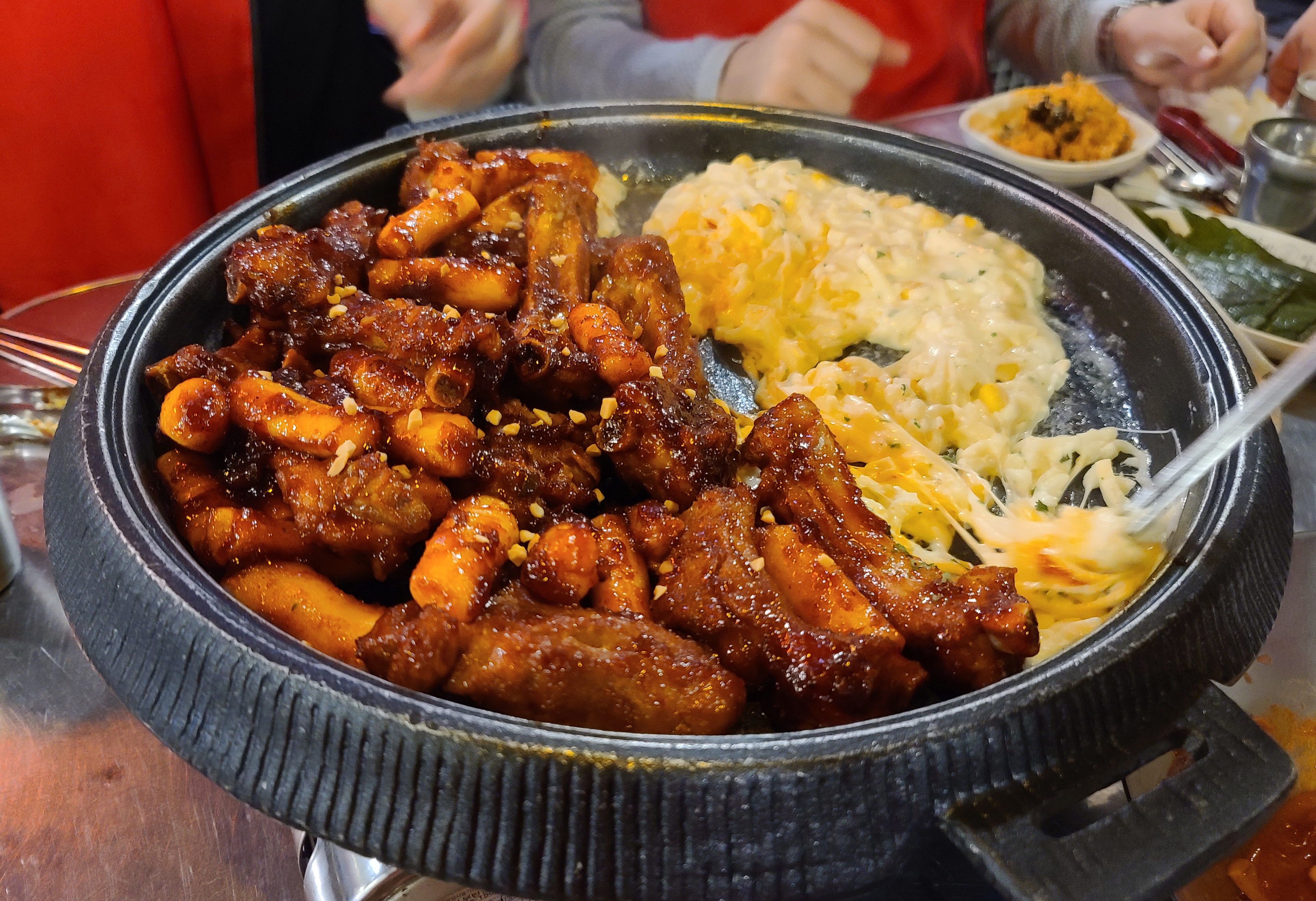다른 날 다시 방문했을 때는 치즈철판등갈비도 주문해보았습니다. 약간 매콤한 맛이 있었는데, 김치등갈비는 자연스러운 매콤함이었다면 약간 인위적인 매운맛이라 톡 쏘는 맛이 조금 별로였습니다. 치즈랑 곁들이면 중화가 되어 괜찮았는데, 다음에 등갈비달인에 다시 방문한다면 그냥 기본적인 메뉴인 김치등갈비를 먹을 것 같습니다.