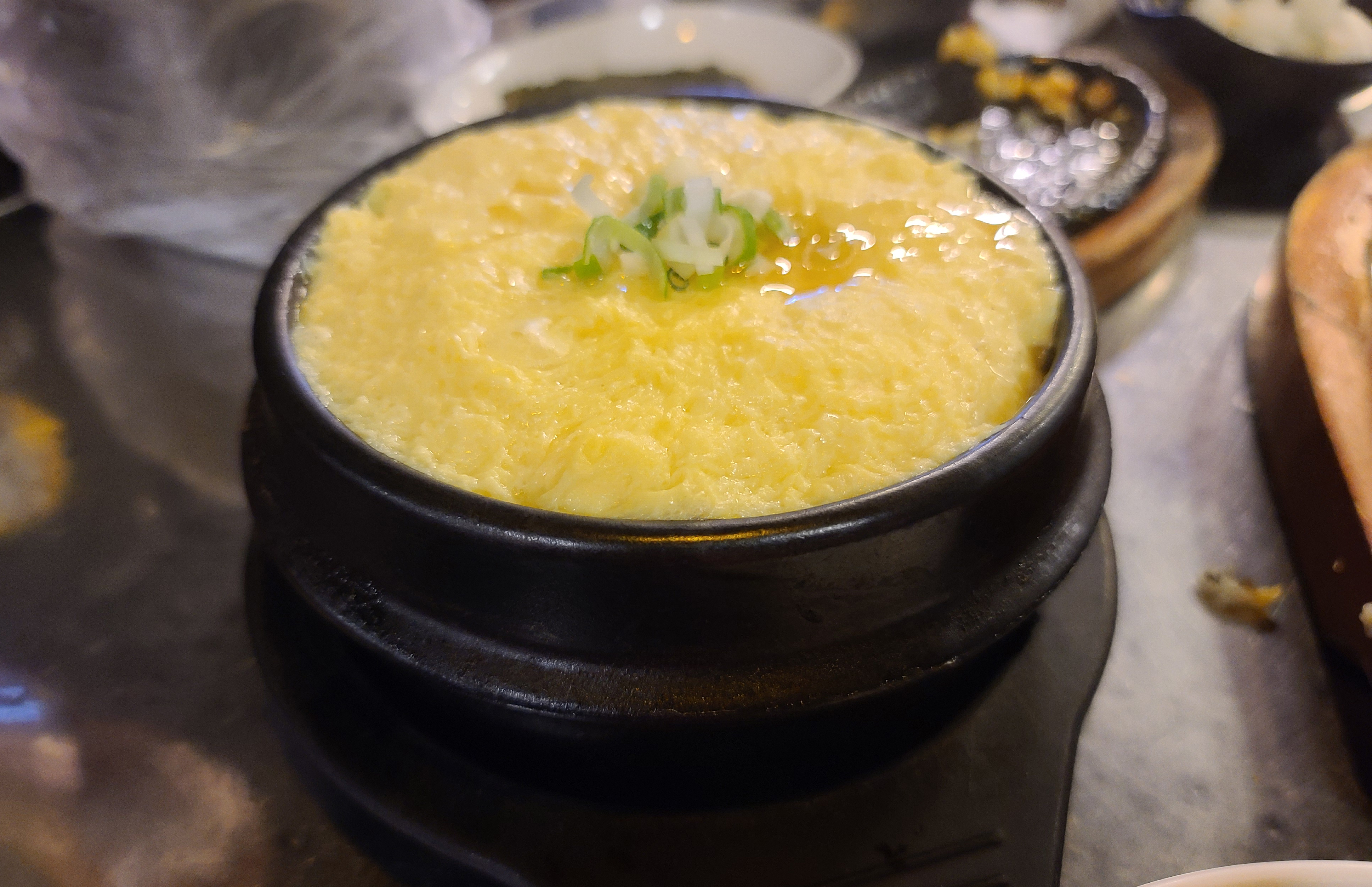 주문한 계란찜과 서비스로 받은 날치알 주먹밥의 모습입니다. 날치알주먹밥은 마요네즈, 김가루 등을 조물조물 섞어서 주먹밥 형태로 말아먹게 되어있었고, 계란찜은 군더더기 없이 무난한 맛이었습니다.