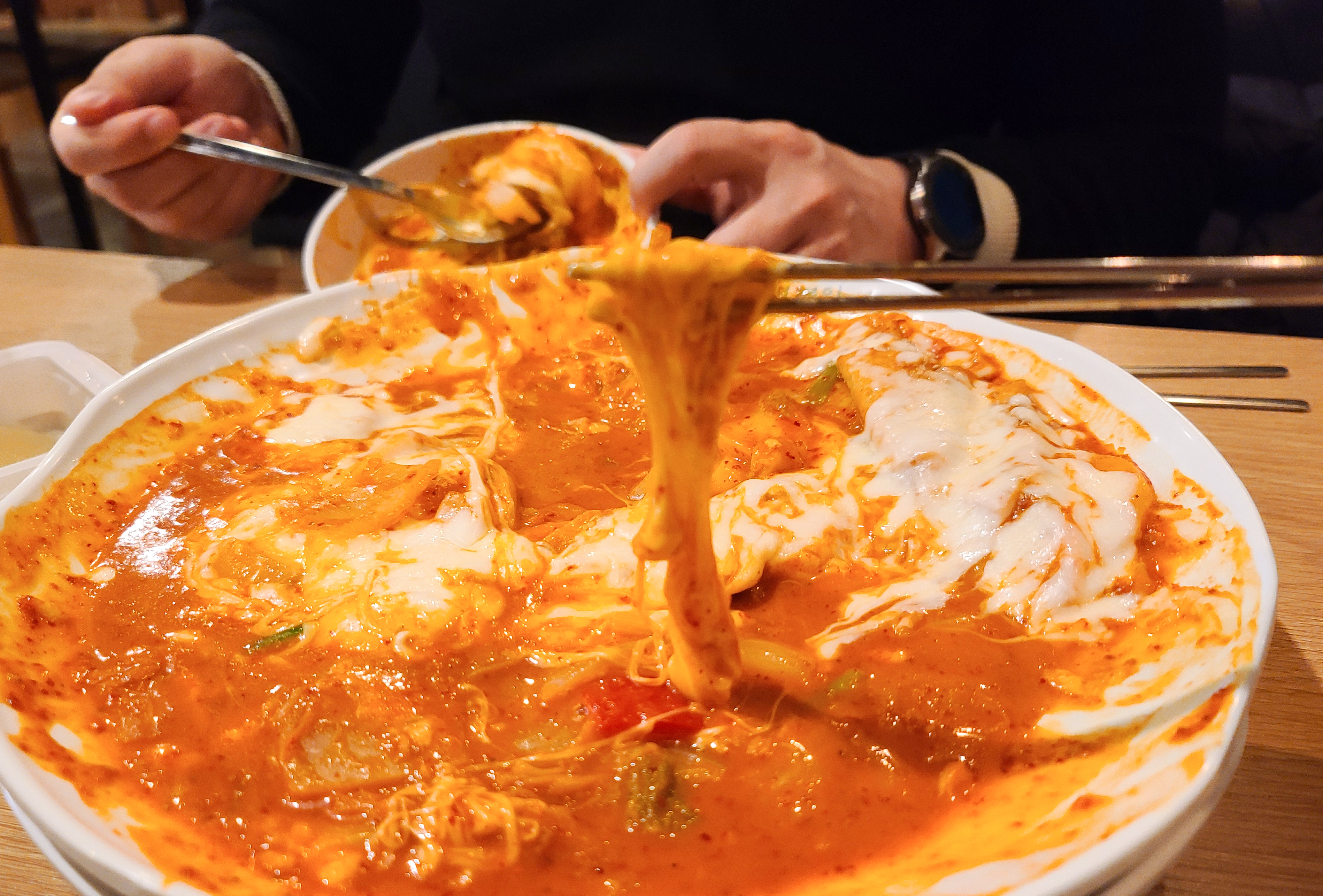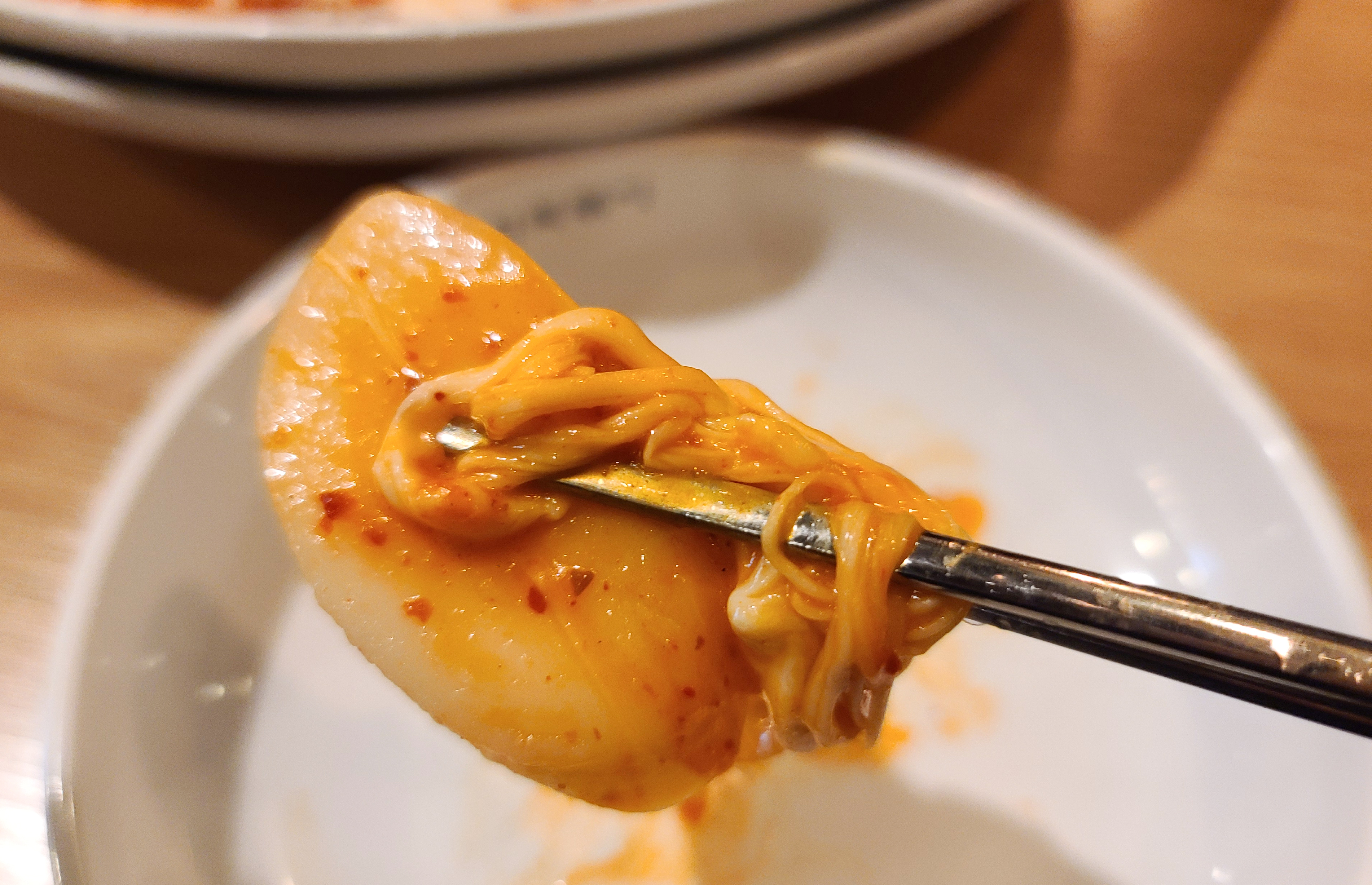 떡볶이의 맛은 솔직히 기대했던 것보단 조금 못 미치는 맛이었습니다. 김치와 떡볶이의 조합이 신기할 뿐이었지, 떡볶이 자체만으로 놓고 보면 기본적인 떡볶이 떡으로 만든 떡볶이가 더 맛있다고 느껴집니다.