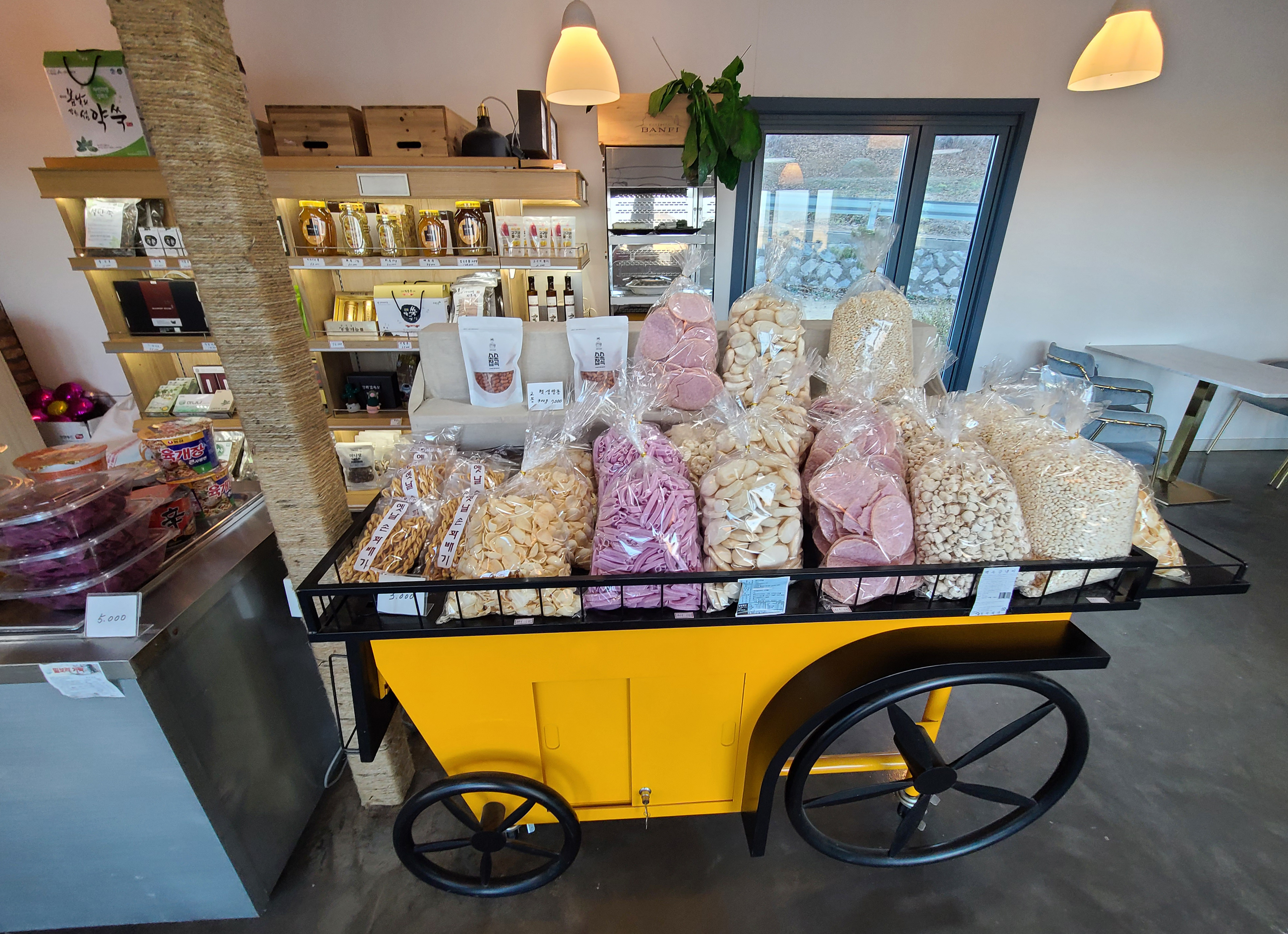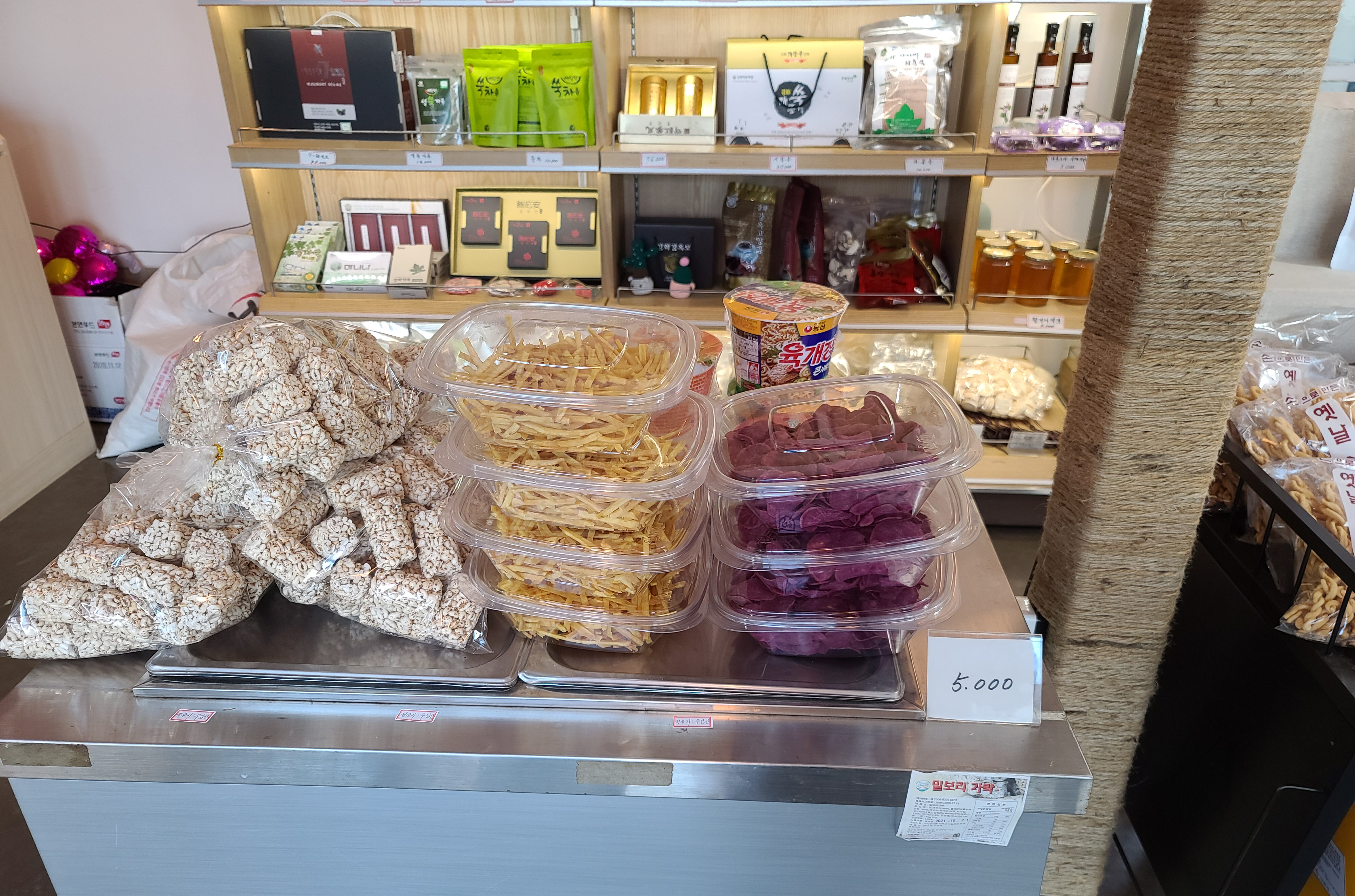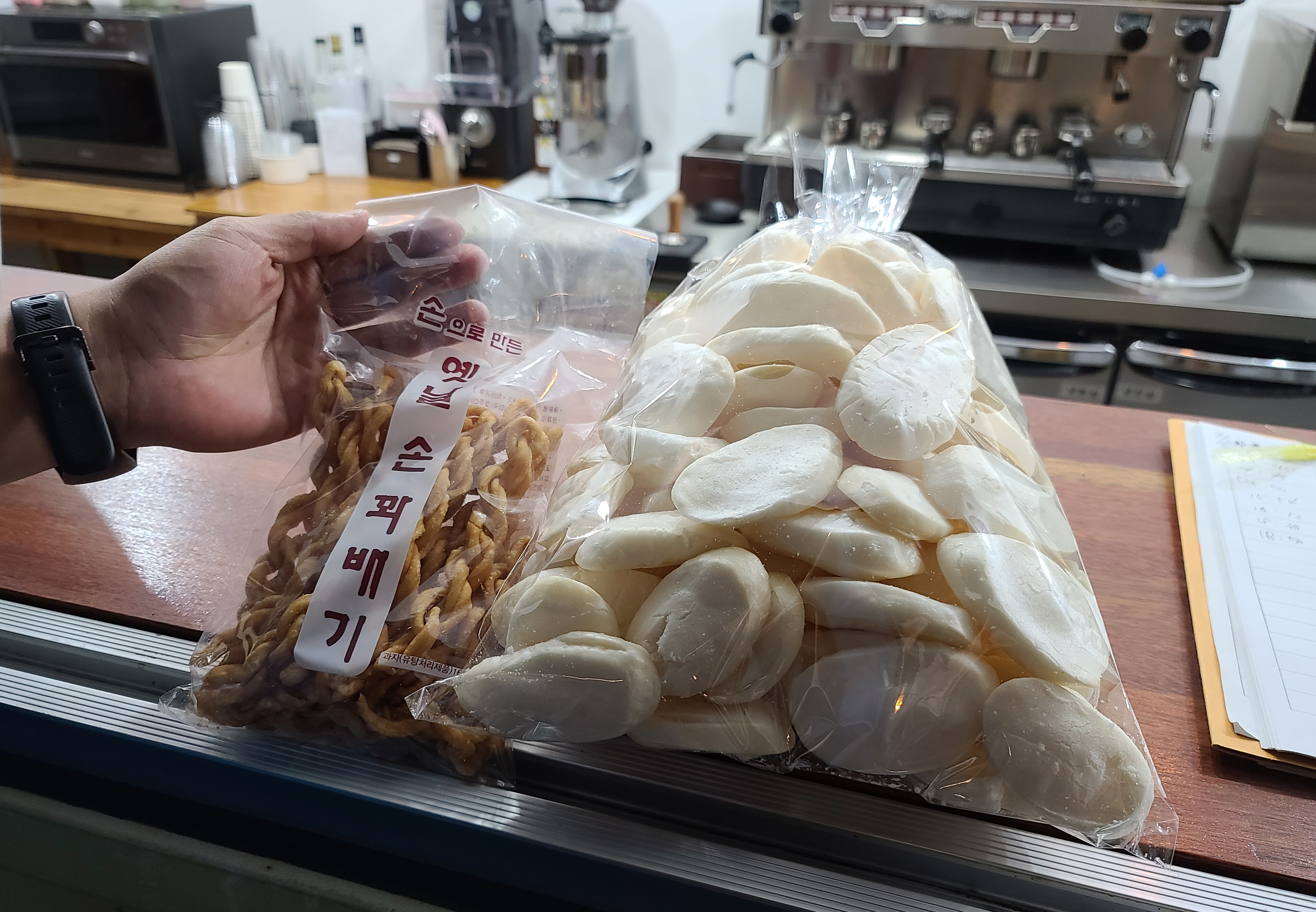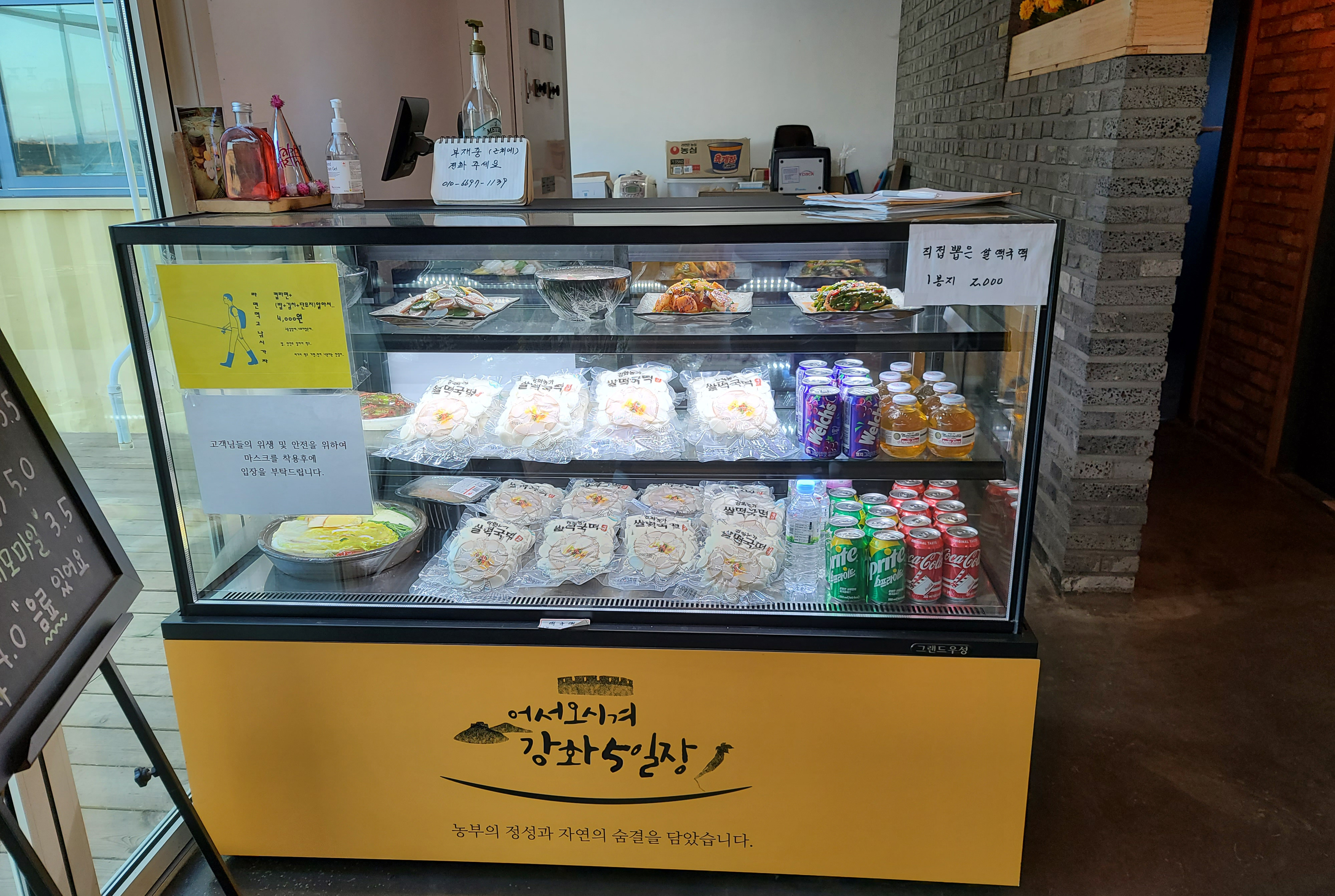 강화 특산품을 파는 기념품 코너도 마련되어 있어서, 쌀과자와 옛날 손꽈배기라는 튀김과자도 구입했습니다. 이제 보니 팥빙수를 다 먹고 따뜻하게 몸 녹이는 라떼도 시켰었네요..(ㅋㅋ)