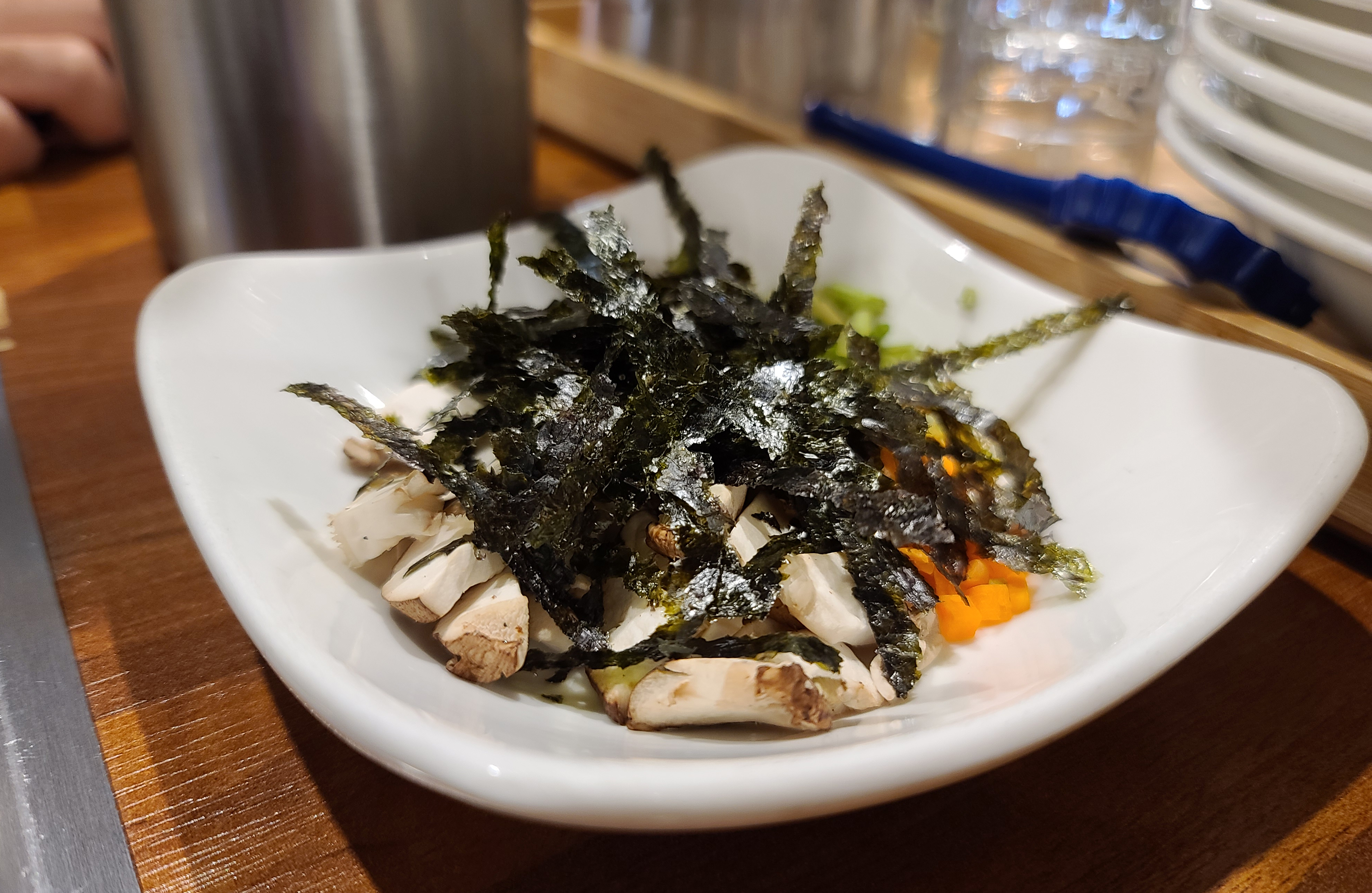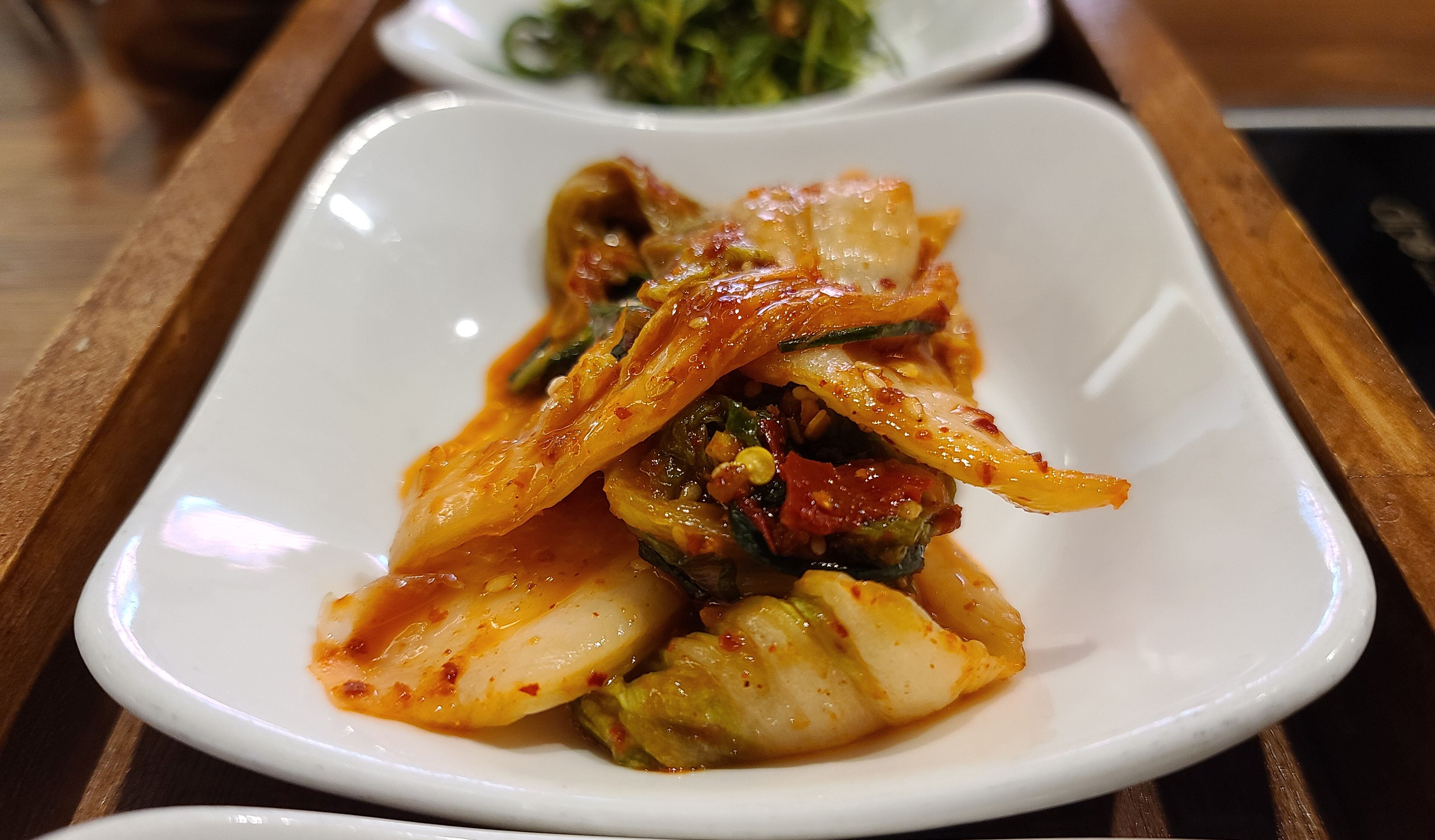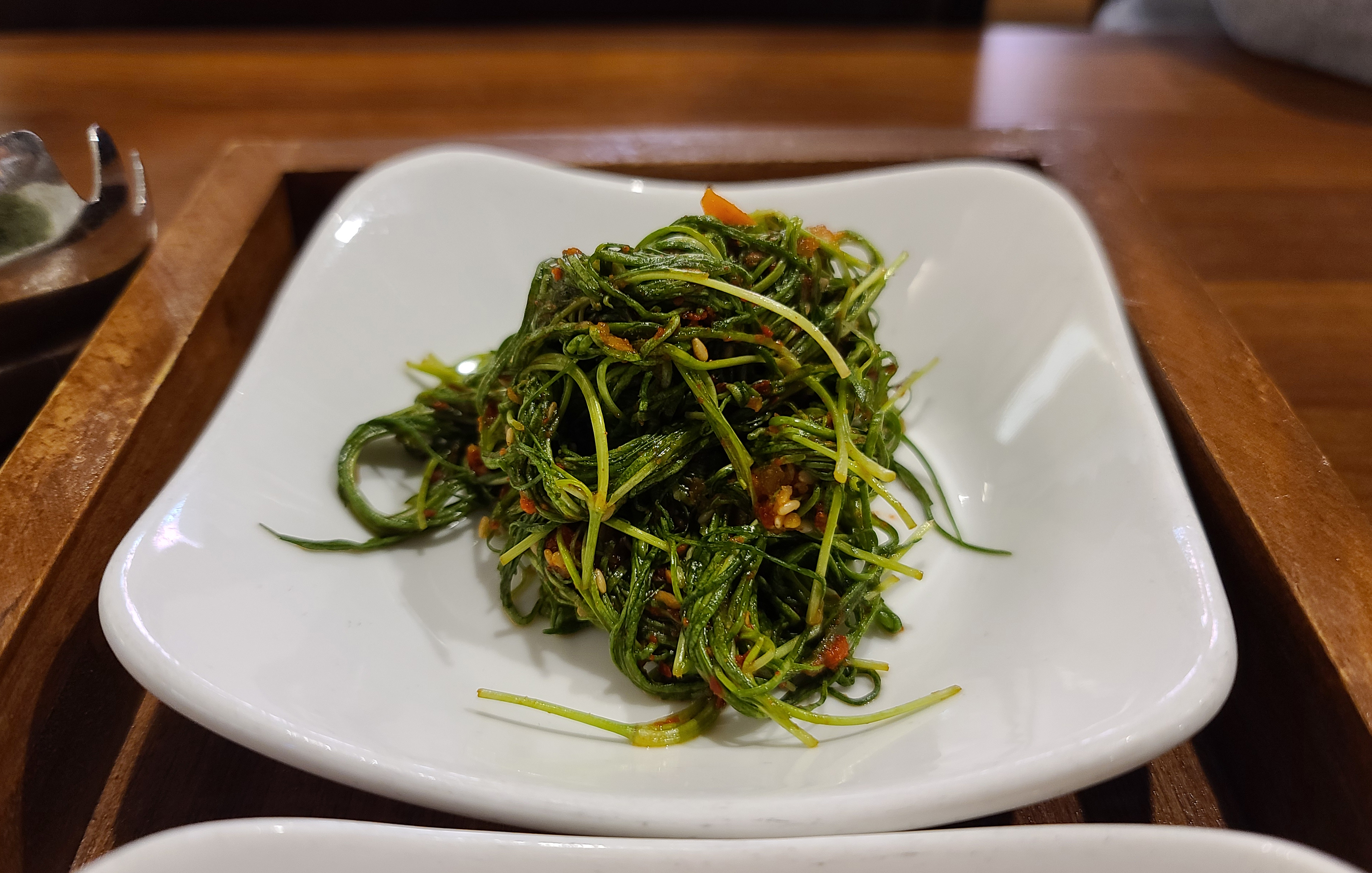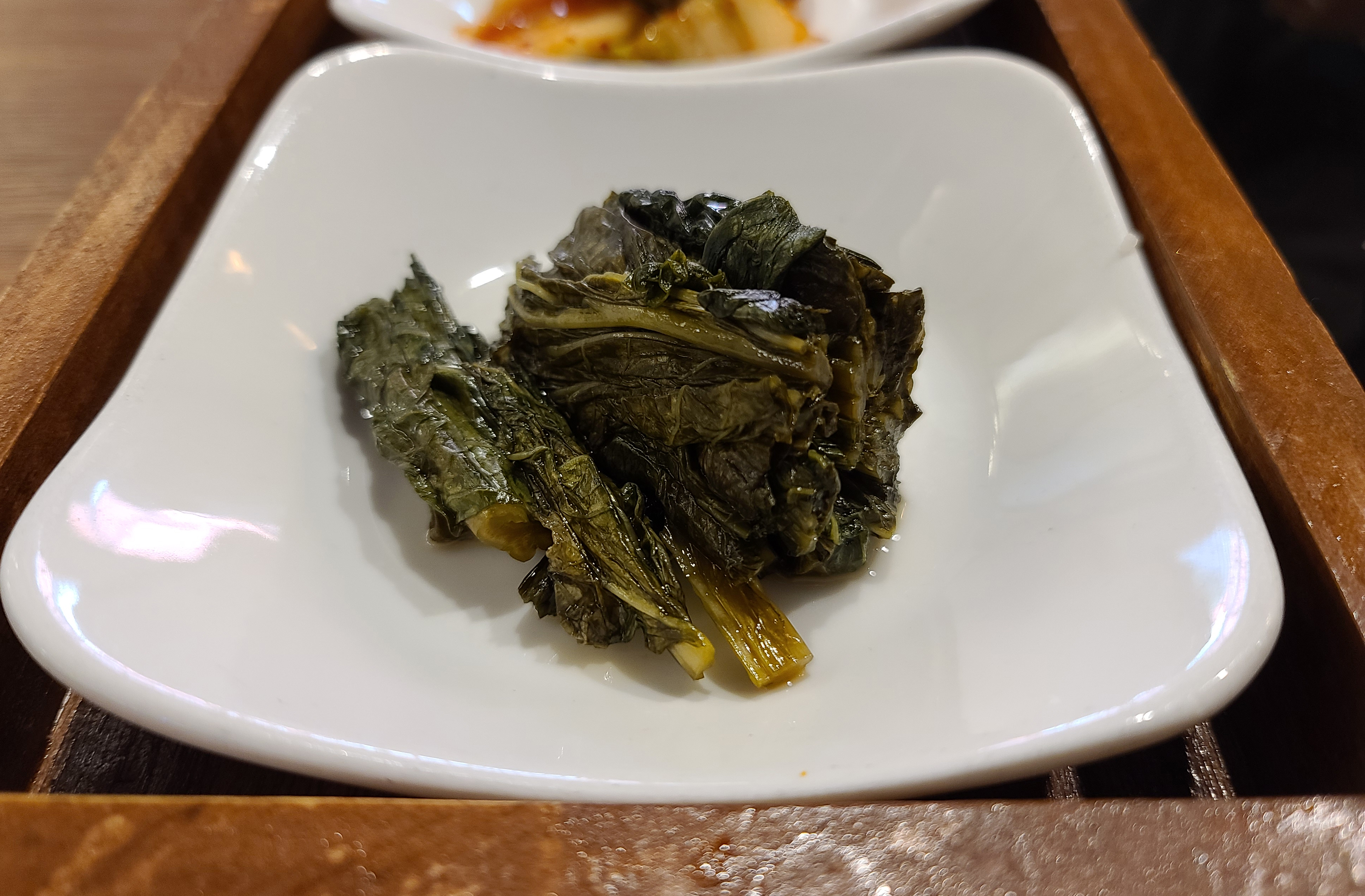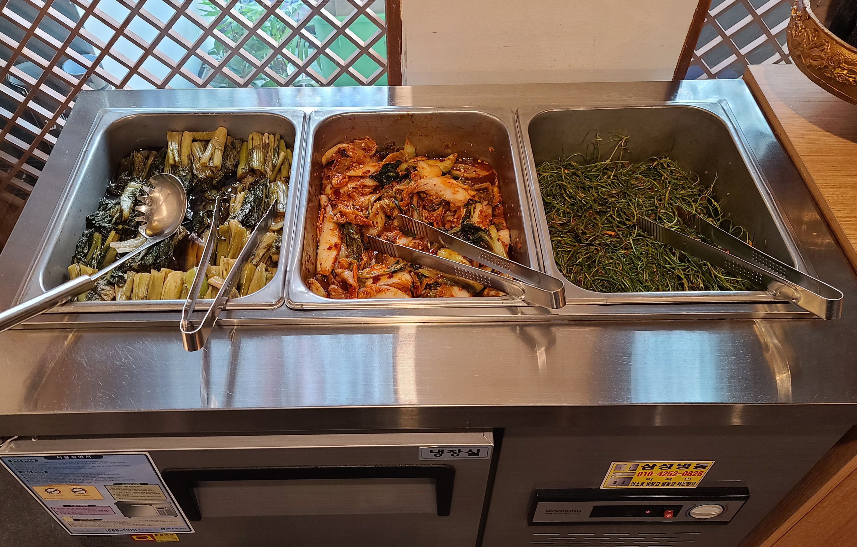 그 사이 반찬들을 살펴보면, 반찬들이 하나같이 깔끔하고 맛이 좋았습니다. 추가 반찬을 원할 경우 셀프바에서 직접 가져다 먹을 수 있었고, 저는 개인적으로 갓김치가 아삭아삭한 식감과 맛에 가장 맛있더라고요.