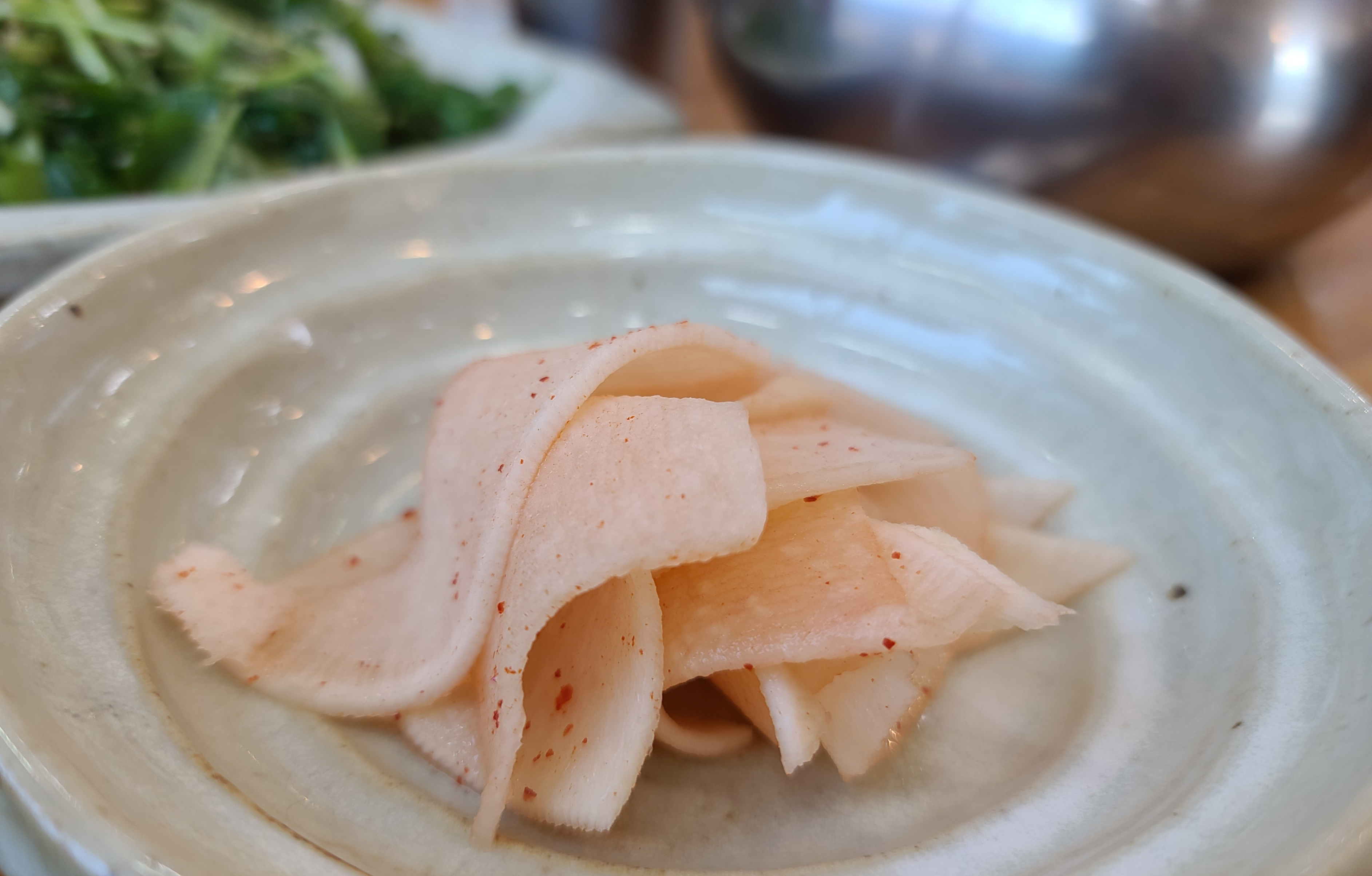 먼저 송가네막국수의 수육이 나왔습니다. 수육은 위와 같이 다양한 쌈채소, 무침, 무말랭이 등과 제공되었습니다. 역시 막국수와 수육을 함께 먹으면 더 맛있죠. 수육과 함께 나온 반찬들은 맛이 대체적으로 깔끔하고 담백했습니다.