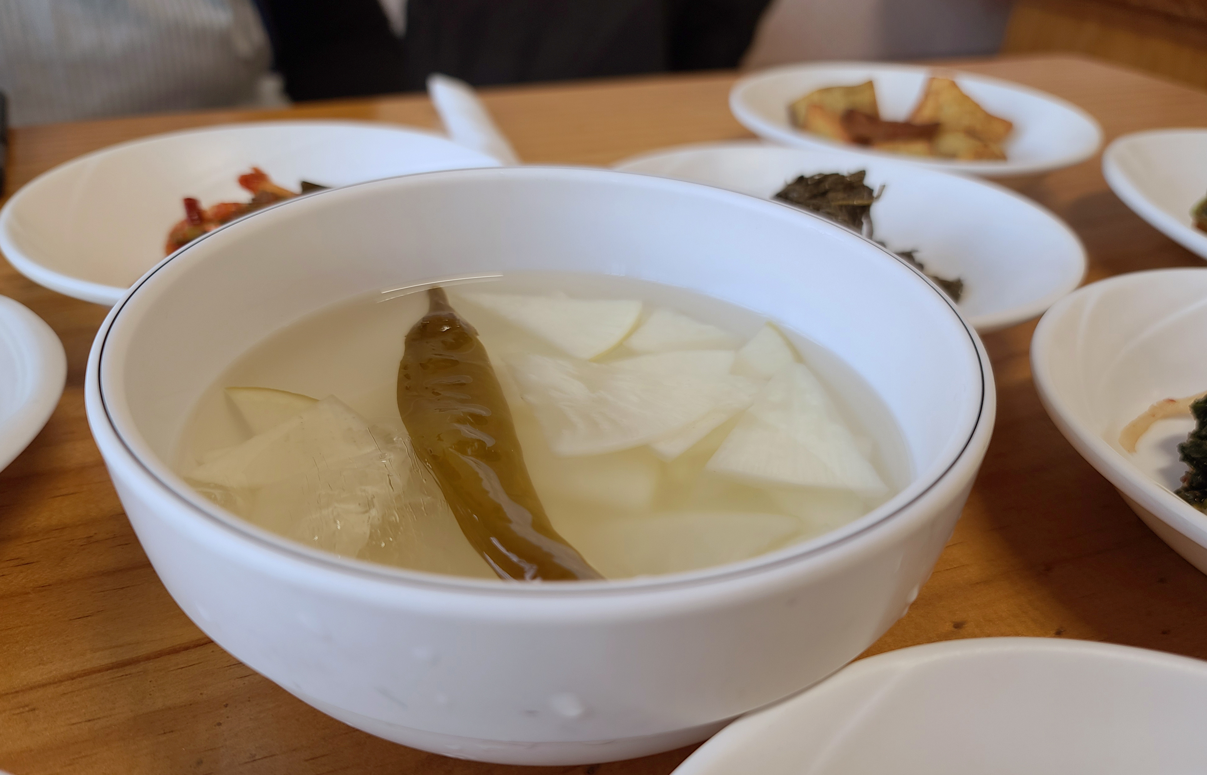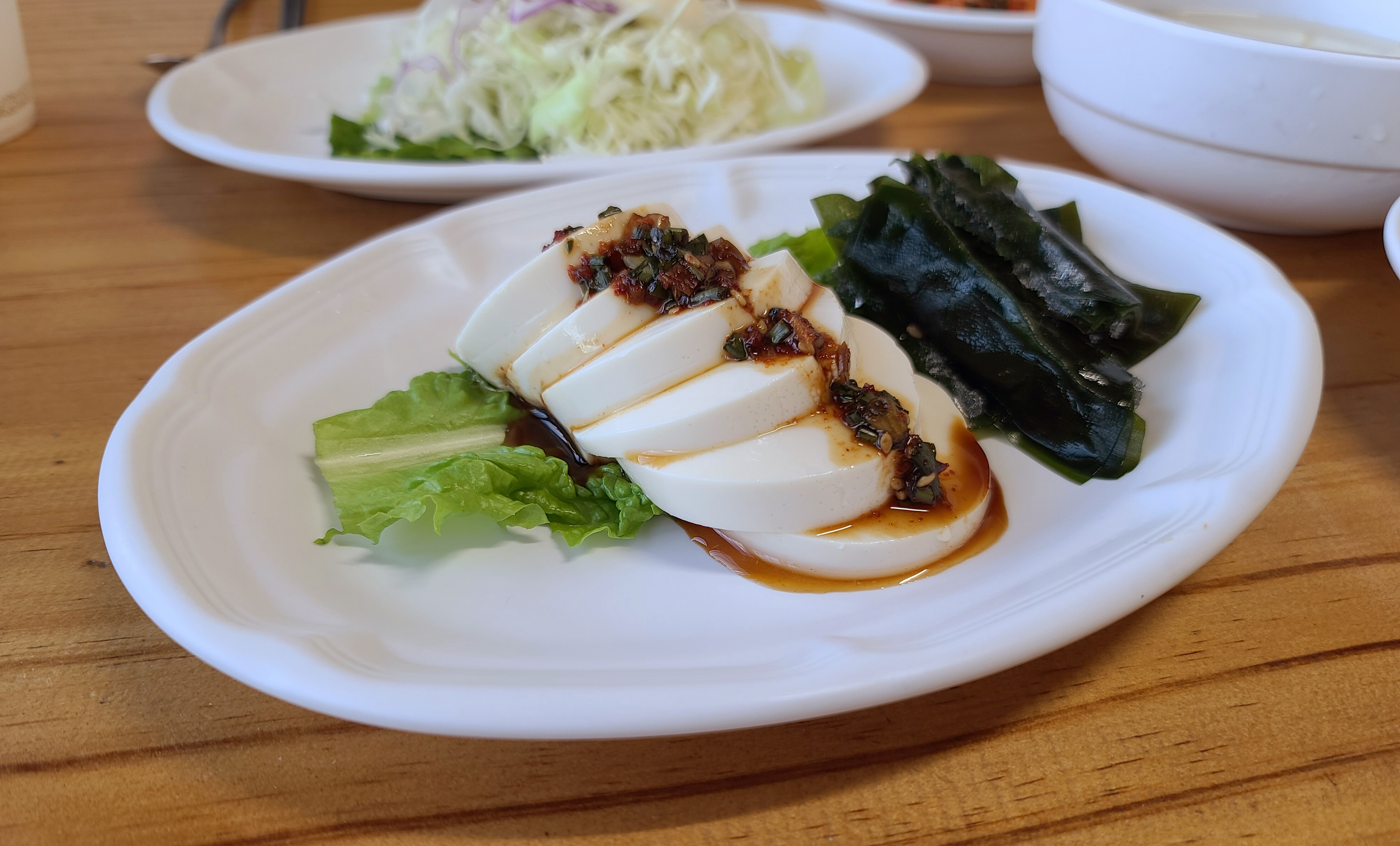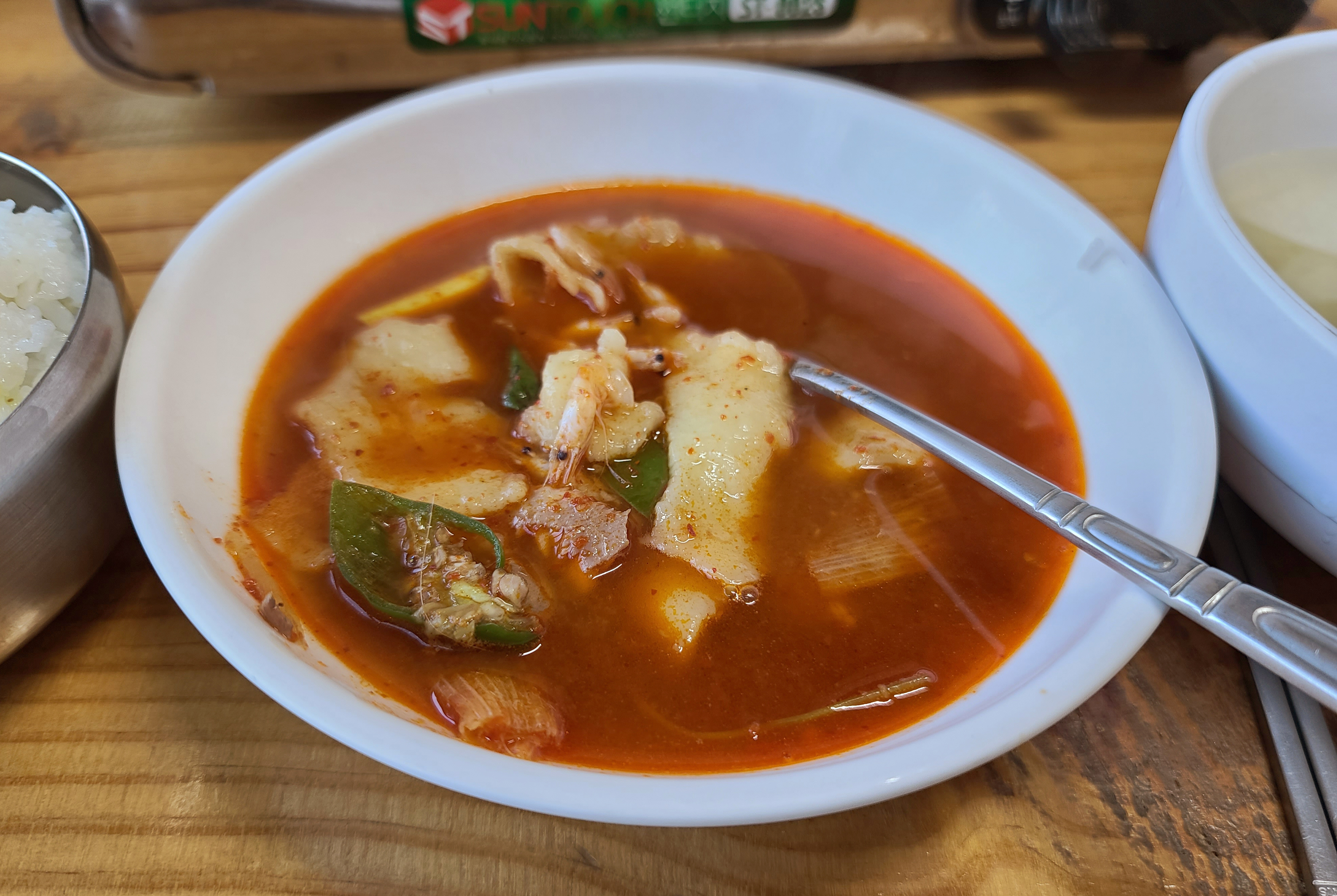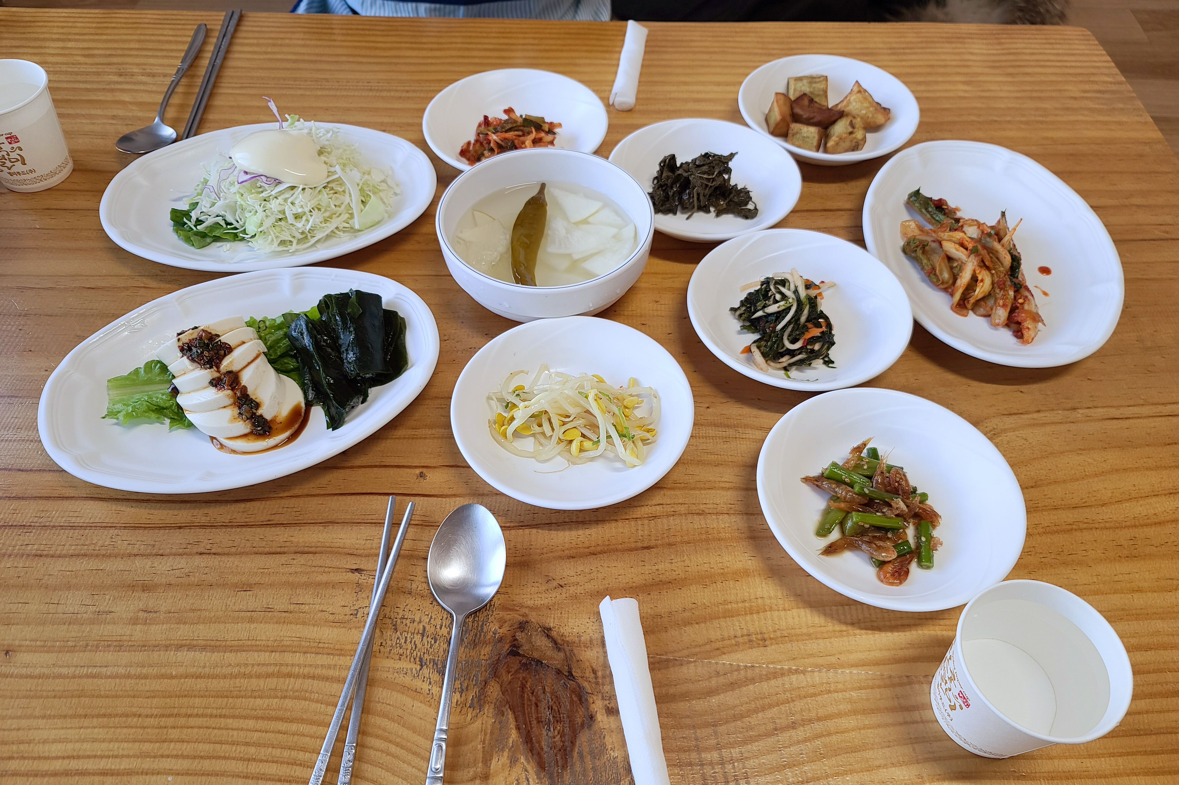 남강집 메기매운탕에 함께 나오는 밑반찬은 몇 가지 나물과 함께 동치미, 순두부, 샐러드, 새우볶음 등이 나왔습니다. 반찬들이 대체적으로 정갈하고 맛이 깔끔해서 좋았습니다.