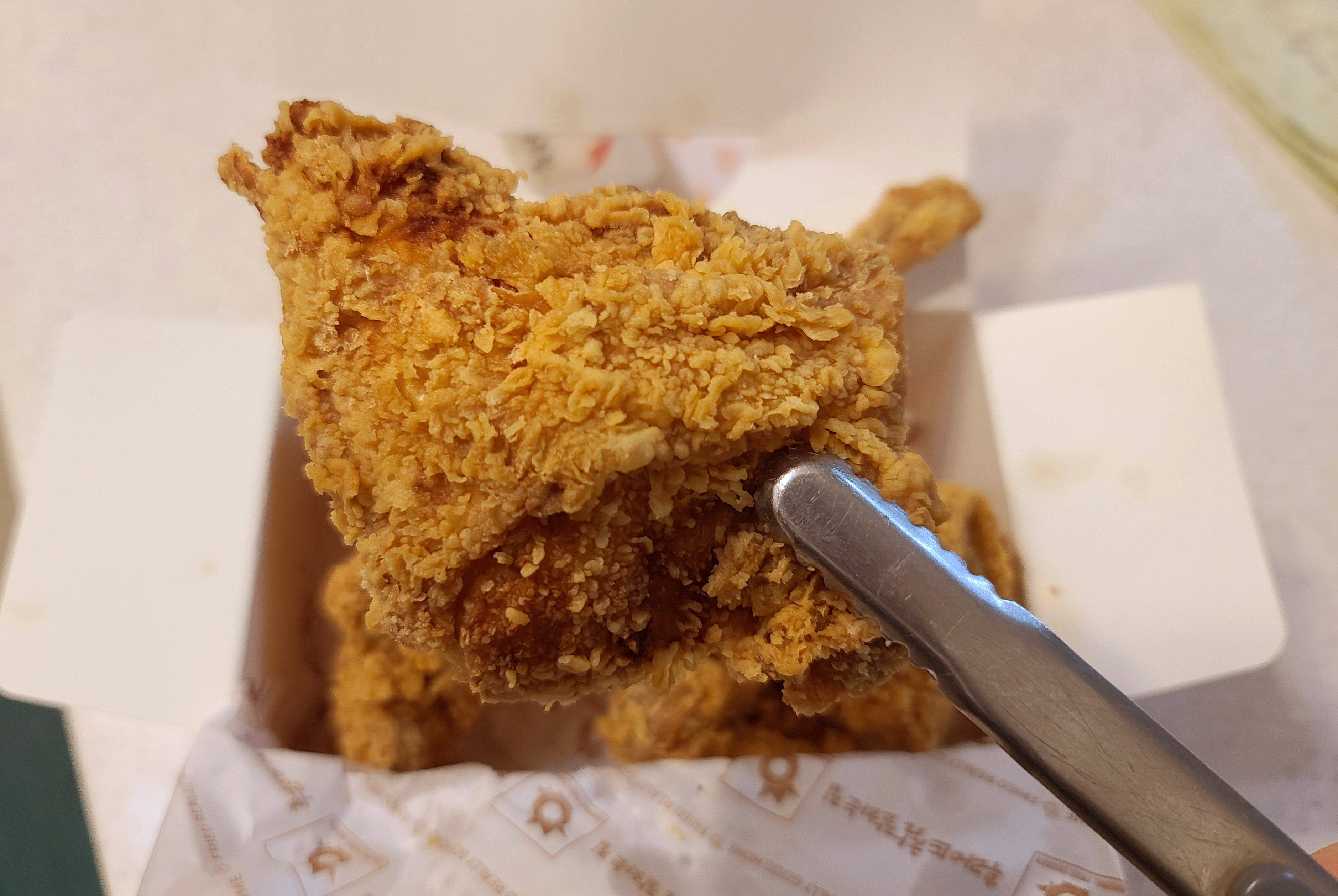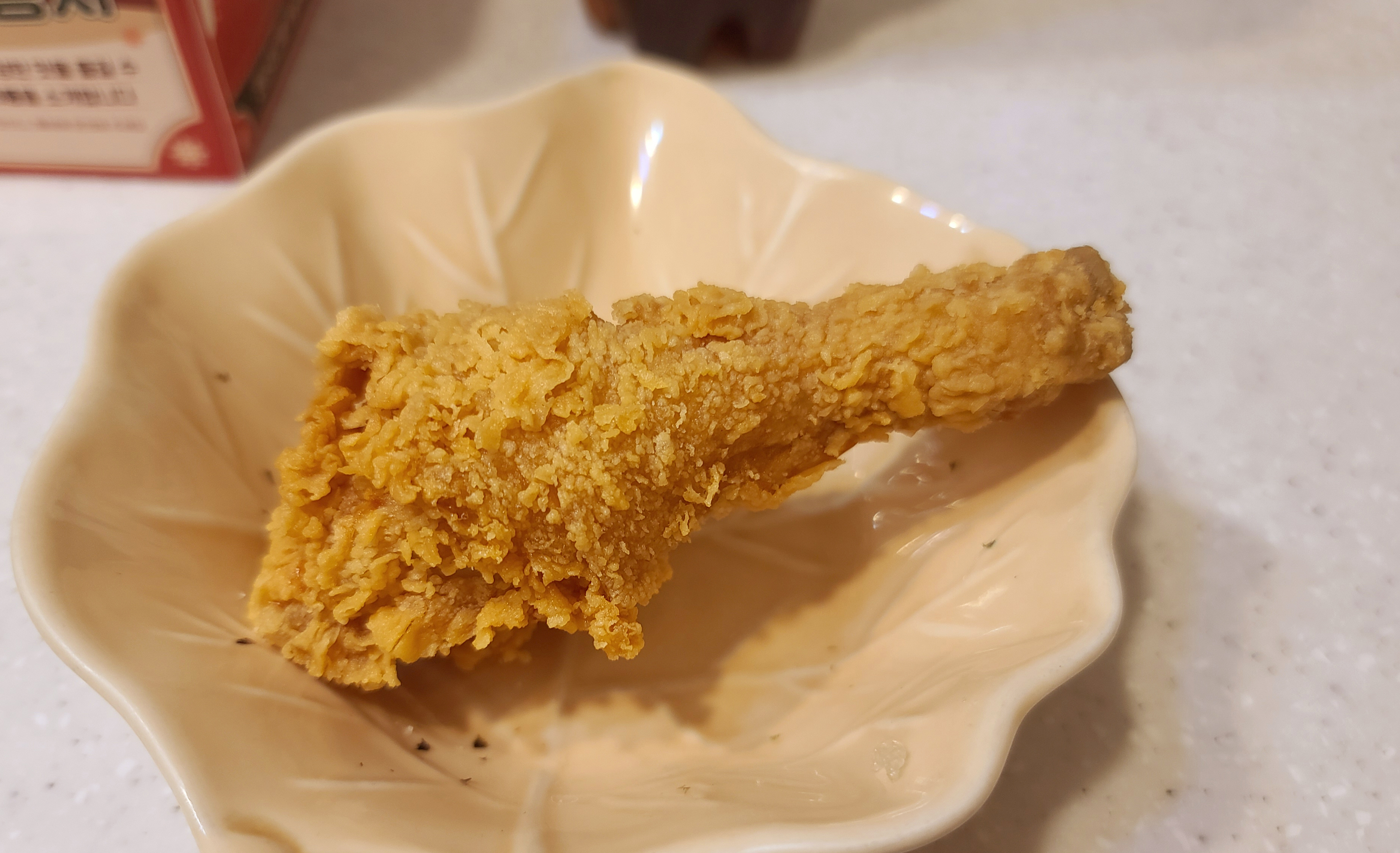 후라이드참잘하는집의 치킨은 크리스피 형태로 튀겨져, 바삭한 식감과 매콤한 맛이 특징입니다. 치킨집중 기름관리를 못하거나, 튀김옷이 두꺼우면 맛이 없는데, 후라이드참잘하는집 치킨은 튀김옷이 너무 두껍지도 않고 튀김옷에서 역한 기름 냄새가 나지 않아서 맛있게 먹는 편입니다.