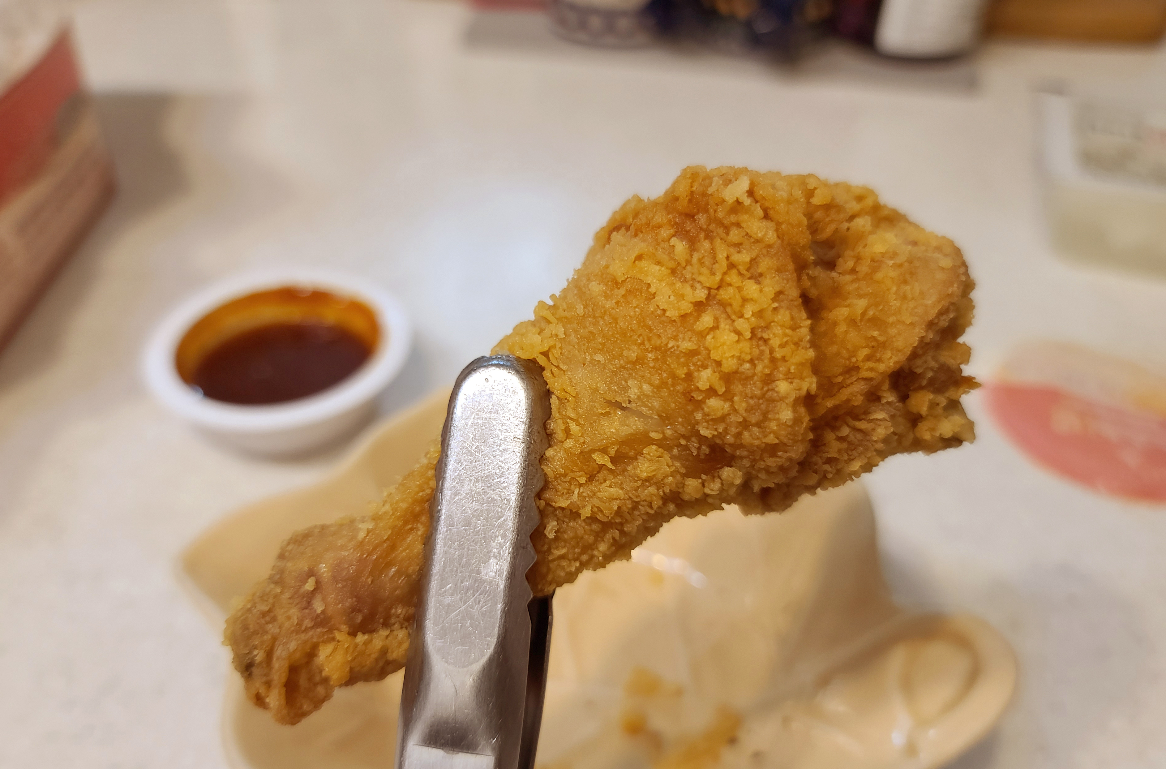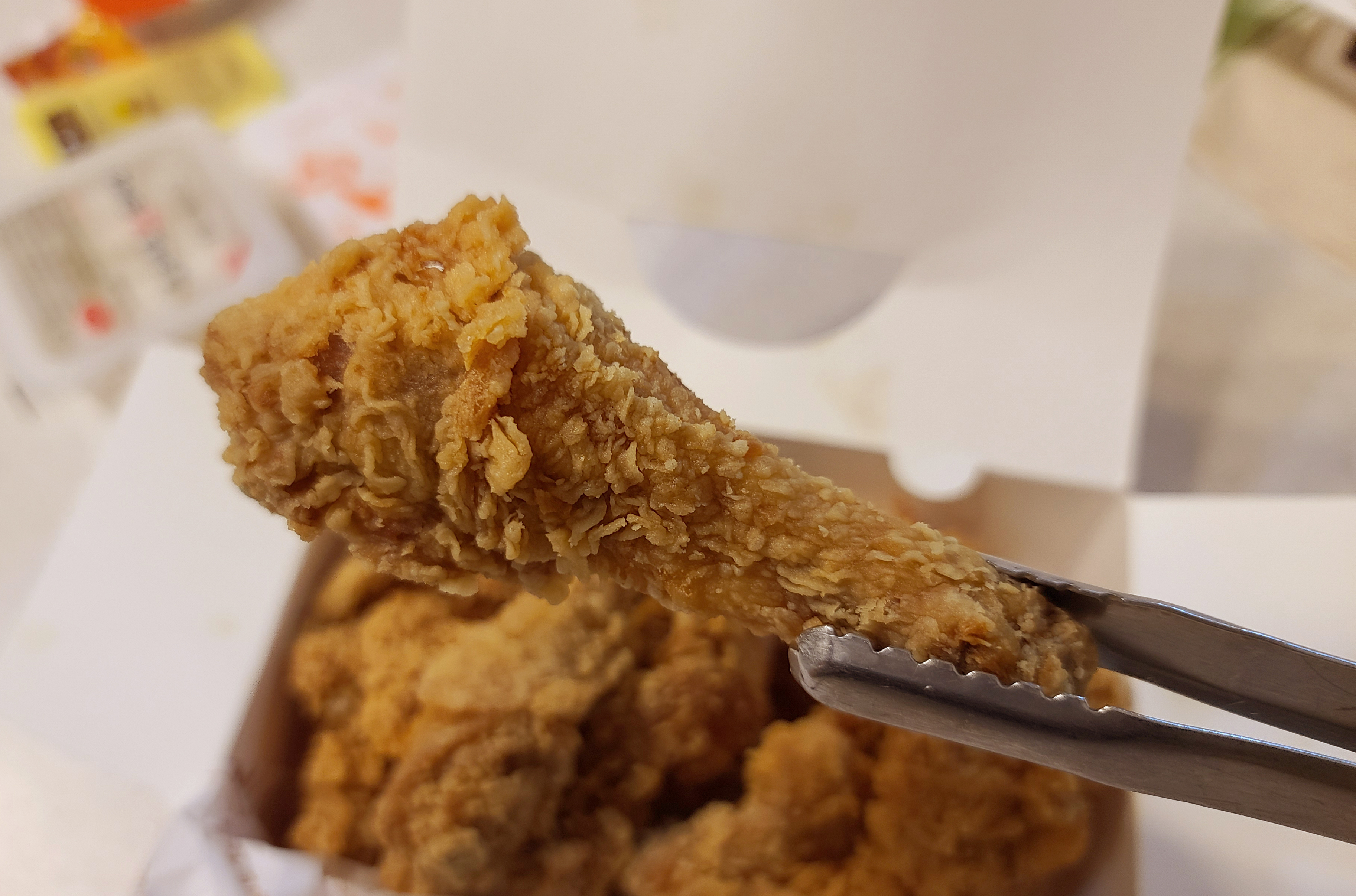 후라이드참잘하는집의 치킨은 크리스피 형태로 튀겨져, 바삭한 식감과 매콤한 맛이 특징입니다. 치킨집중 기름관리를 못하거나, 튀김옷이 두꺼우면 맛이 없는데, 후라이드참잘하는집 치킨은 튀김옷이 너무 두껍지도 않고 튀김옷에서 역한 기름 냄새가 나지 않아서 맛있게 먹는 편입니다.