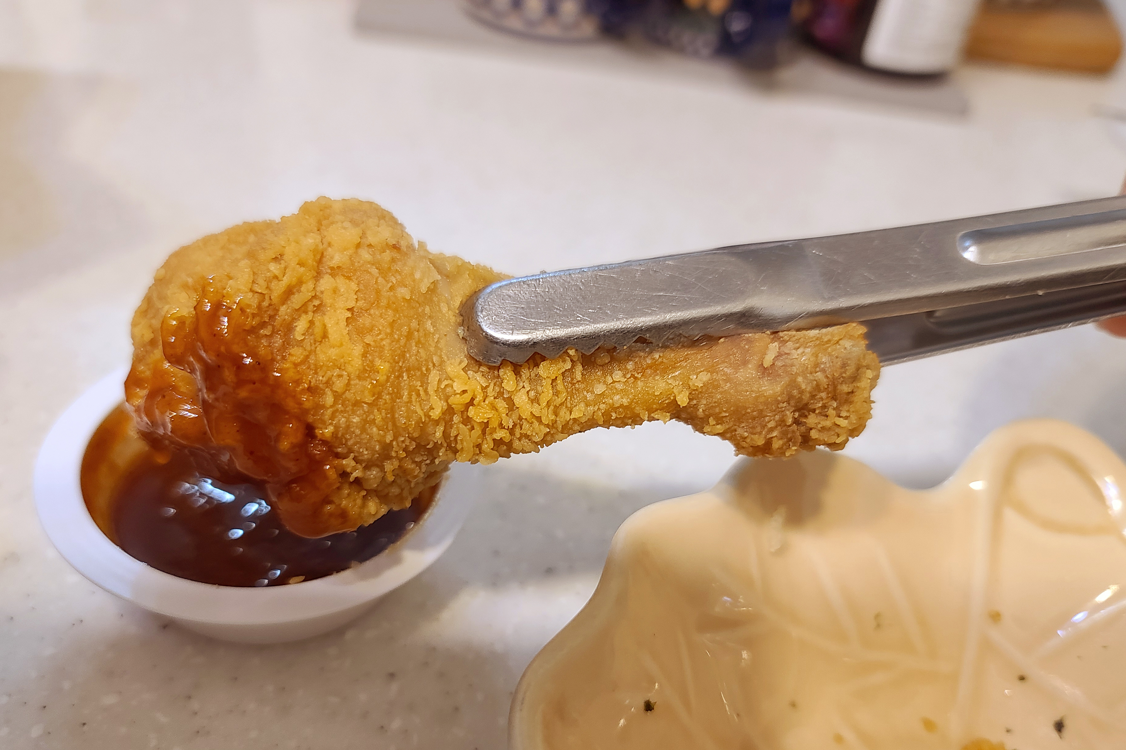 닭은 총 8조각으로 나뉘어 오는데, 퍽퍽한 살을 좋아하는 분은 가슴살을, 부드러운 식감을 원하신다면 다릿살을 먹으면 되었습니다. 같이 제공되는 소스와 함께 먹어도 맛이 좋았고, 기호에 따라 소금이나 허니머스타드 소스와 곁들여 먹을 수도 있었습니다. 물론 치킨집마다 특징이 다 다르겠지만, 후라이드참잘하는집의 치킨은 항상 느끼는 거지만 만족감을 주는 것 같습니다. 여러분도 한 번 이용해 보세요.