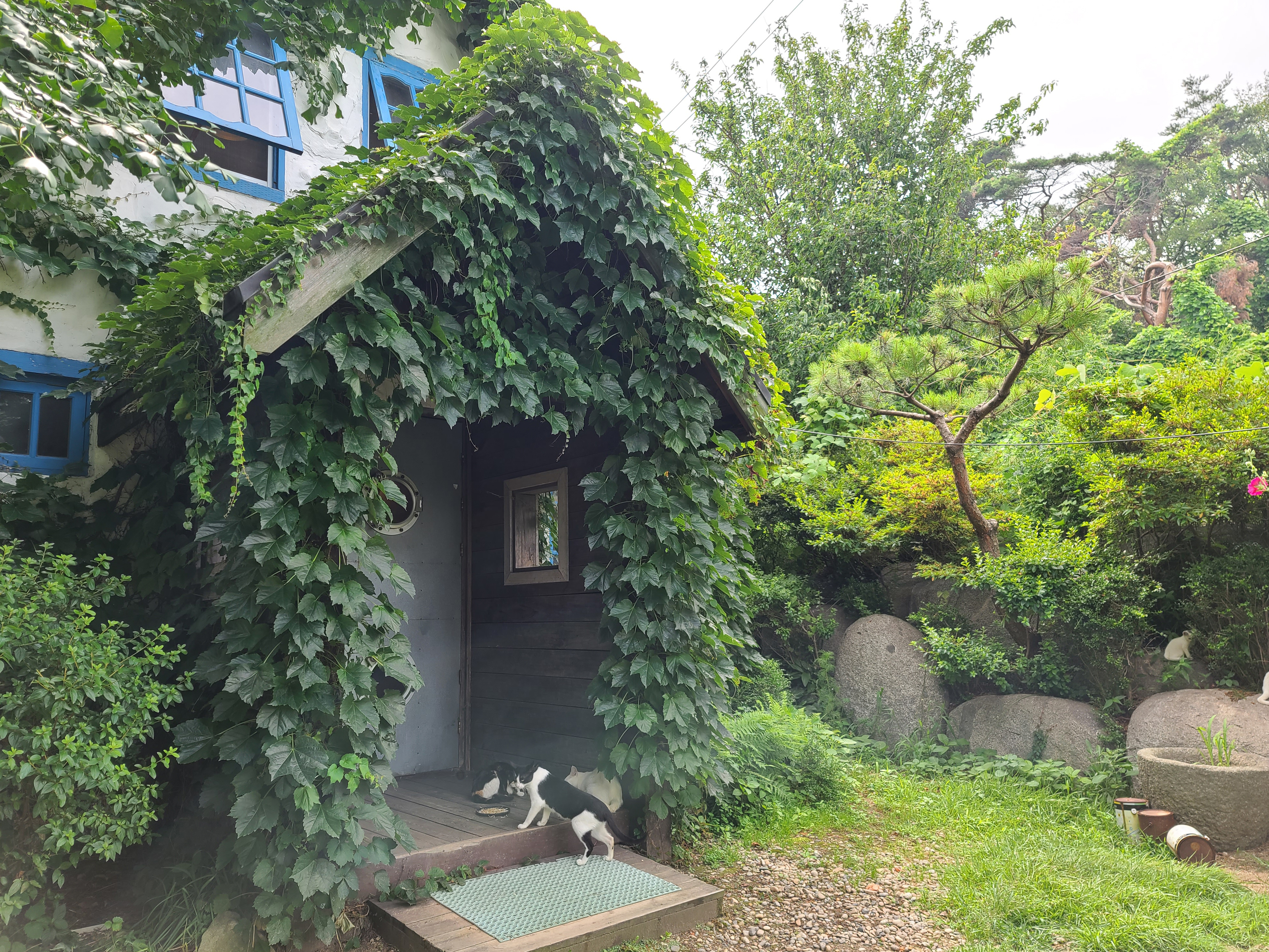 가게 밖의 공간은 이런 분위기가 나는 공간이었죠. 사용하지 않는 공간인지 조금 지저분한데 사진은 잘 나올 것 같은 공간이었죠. 다른 곳에 가면 인테리어도 더 뛰어나고 좋은 공간이 많겠지만, 저는 이렇게 한적하고 낡은 느낌의 장소가 더 마음에 들더라고요.