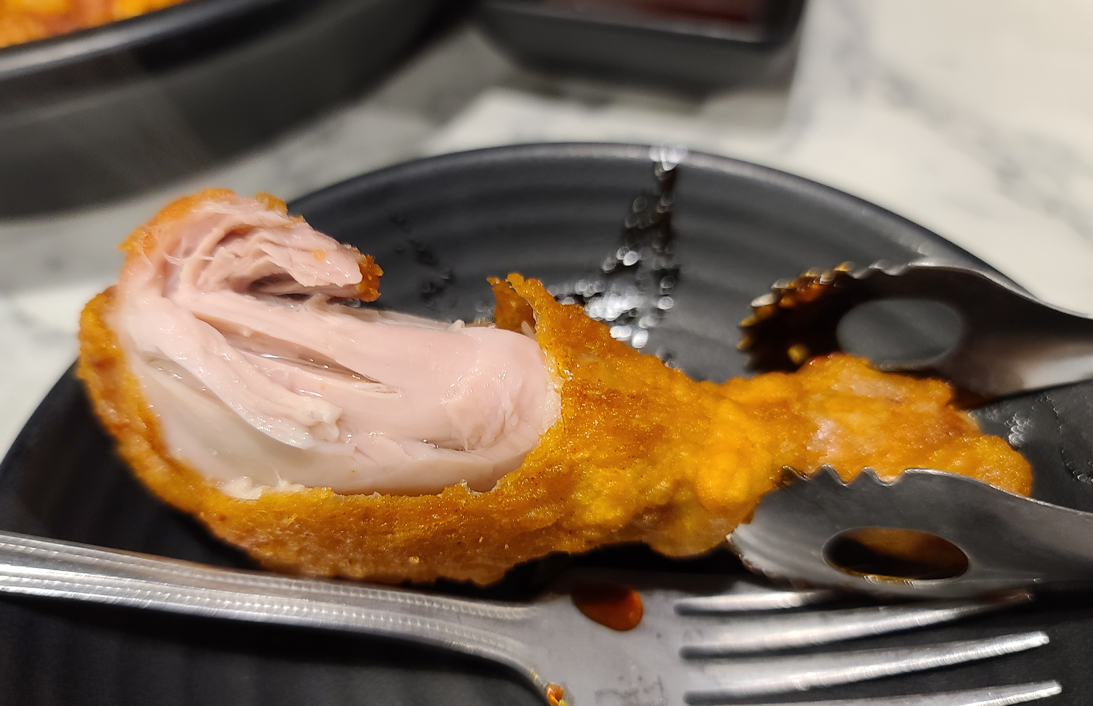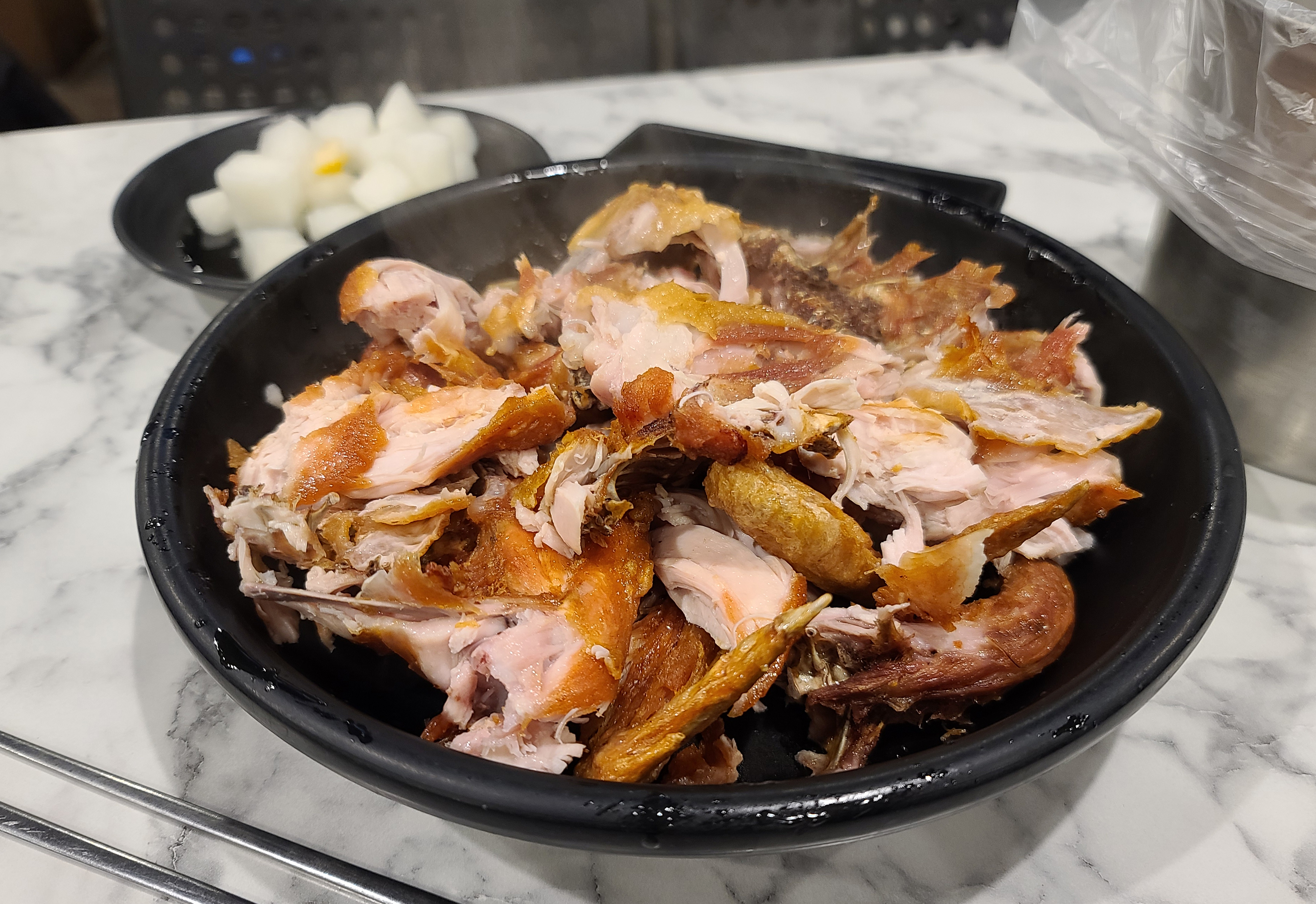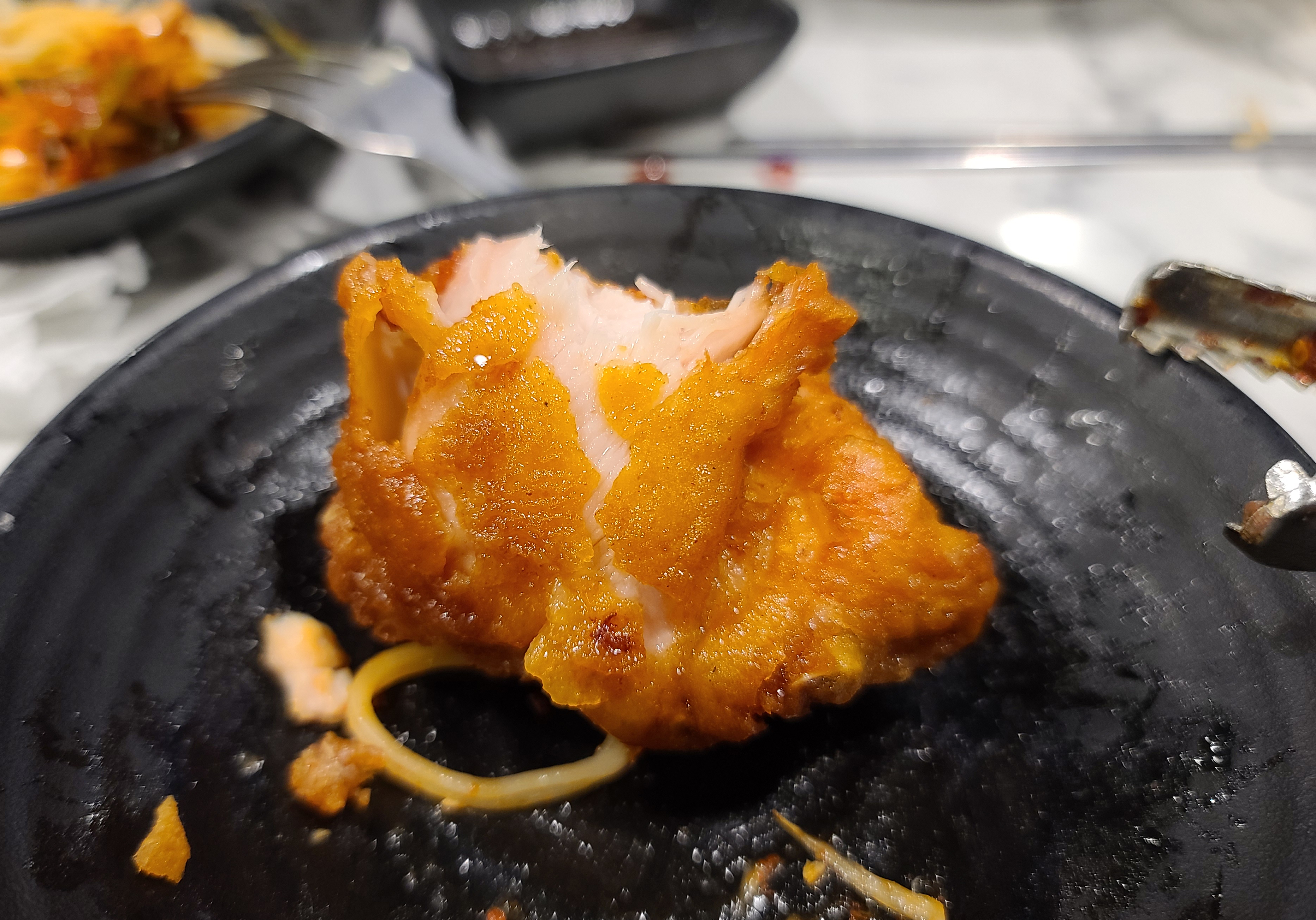 옛날통닭은 위 사진처럼 손으로 직접 찢어서 제공하고 있습니다. 후라이드치킨에 비해 금새 뻣뻣해지는 편이지만, 직접 찢어주는 치킨이 옛날의 치킨을 먹는 느낌을 잘 표현해주었습니다. 매콤한 양념소스와 곁들여도 맛있어서 좋았습니다. 오랫동안 애용한 가게여서그런지 이제는 사장님과도 인사하고 지내는 사이가 되었습니다. 관심이 있으신 분은 이용해보시는 것을 추천드리며, 즐거운 한 주 되시길 바랍니다.😀