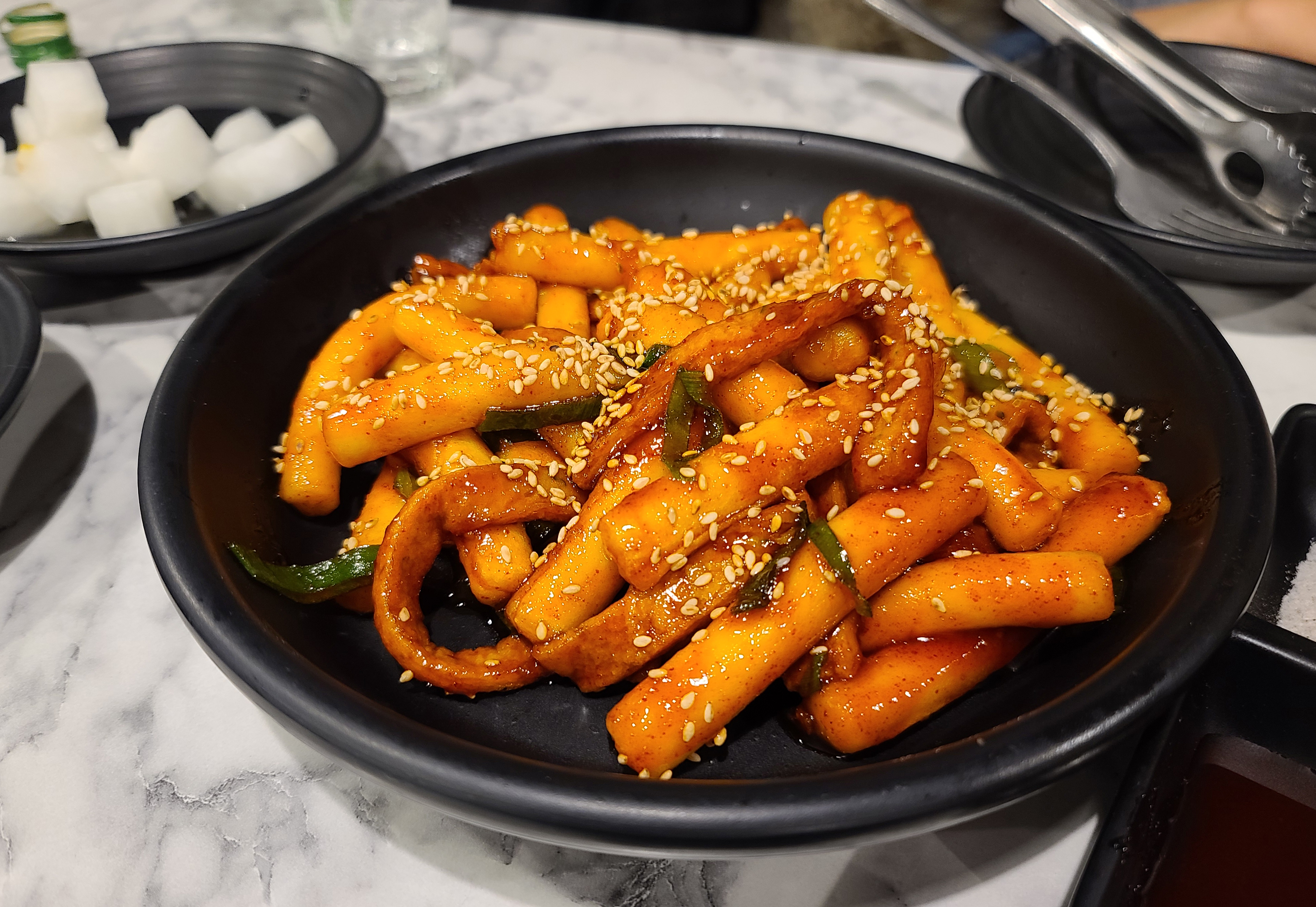 가락동 치킨 맛집 다가마통닭의 기름떡볶이는 쫄깃한 떡과 어묵을 볶아낸 메뉴로, 매콤하면서도 쫀득쫀득한 게 은근 당기는 맛이 일품인 메뉴였습니다. 약간 어묵볶음을 떠올리게 하는 맛도 있고요.