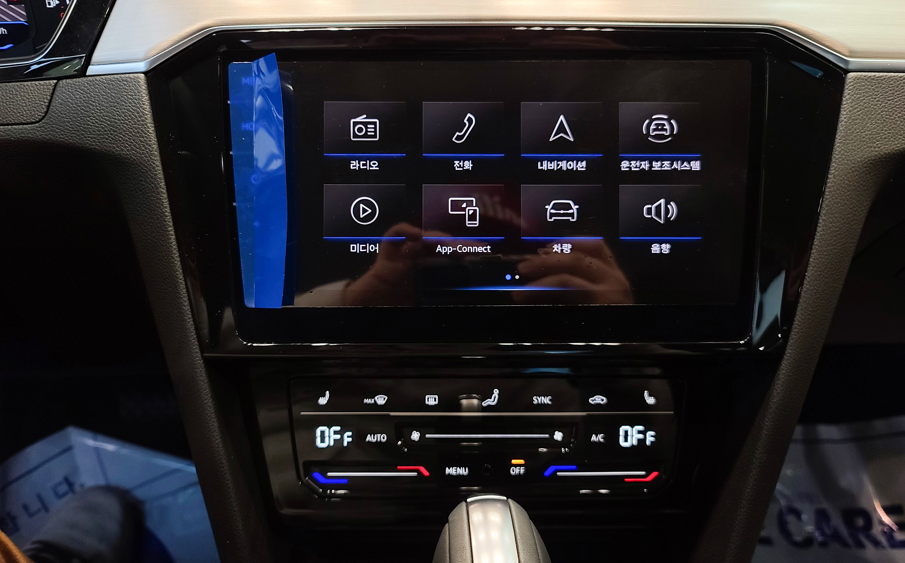 폭스바겐 신형 파사트 GT의 실내를 살펴보면, 외부 디자인과 통일된 느낌의 가로로 길게 뻗어있는 듯한 송풍구가 눈에 들어옵니다. 그리고 스티어링 휠이 D 컷으로 되어있었고, 디지털 콕핏과 물리적 버튼을 없앤 전자식 공조장치가 눈에 들어왔습니다. 공조장치는 전부 터치식으로 되어있었으며, 햅(탭)틱 피드백은 없었습니다. 물리 버튼처럼 누르는 느낌은 없었지만 빠르게 잘 작동되었습니다.