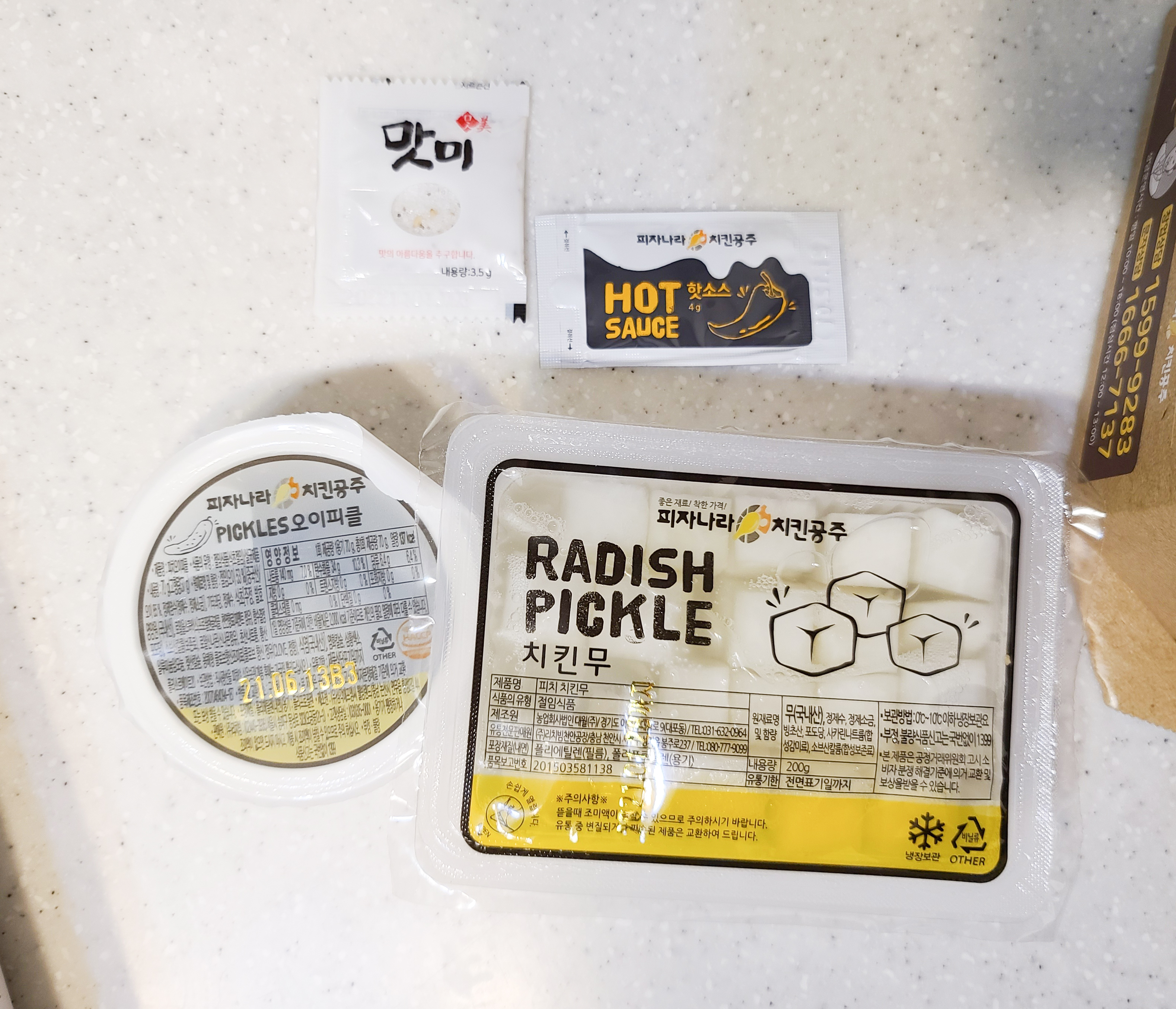 피자나라치킨공주 피치세트는 말 그대로 피자와 치킨을 세트로 맛볼 수 있는 메뉴라 할 수 있습니다. 소형 페트 콜라가 서비스로 제공되며, 핫소스, 피클, 치킨무, 소금이 함께 나오는 메뉴입니다. 두 가지 메뉴가 동시에 제공되는 메뉴인만큼 가격도 합리적인 메뉴였습니다. 기본 (M) 사이즈 피치 세트의 경우 16,900원, (L) 사이즈의 경우 19,900원에 맛볼 수 있었으며, 저는 크러스트가 추가된 피치 세트를 즐겨 주문하고 있습니다.