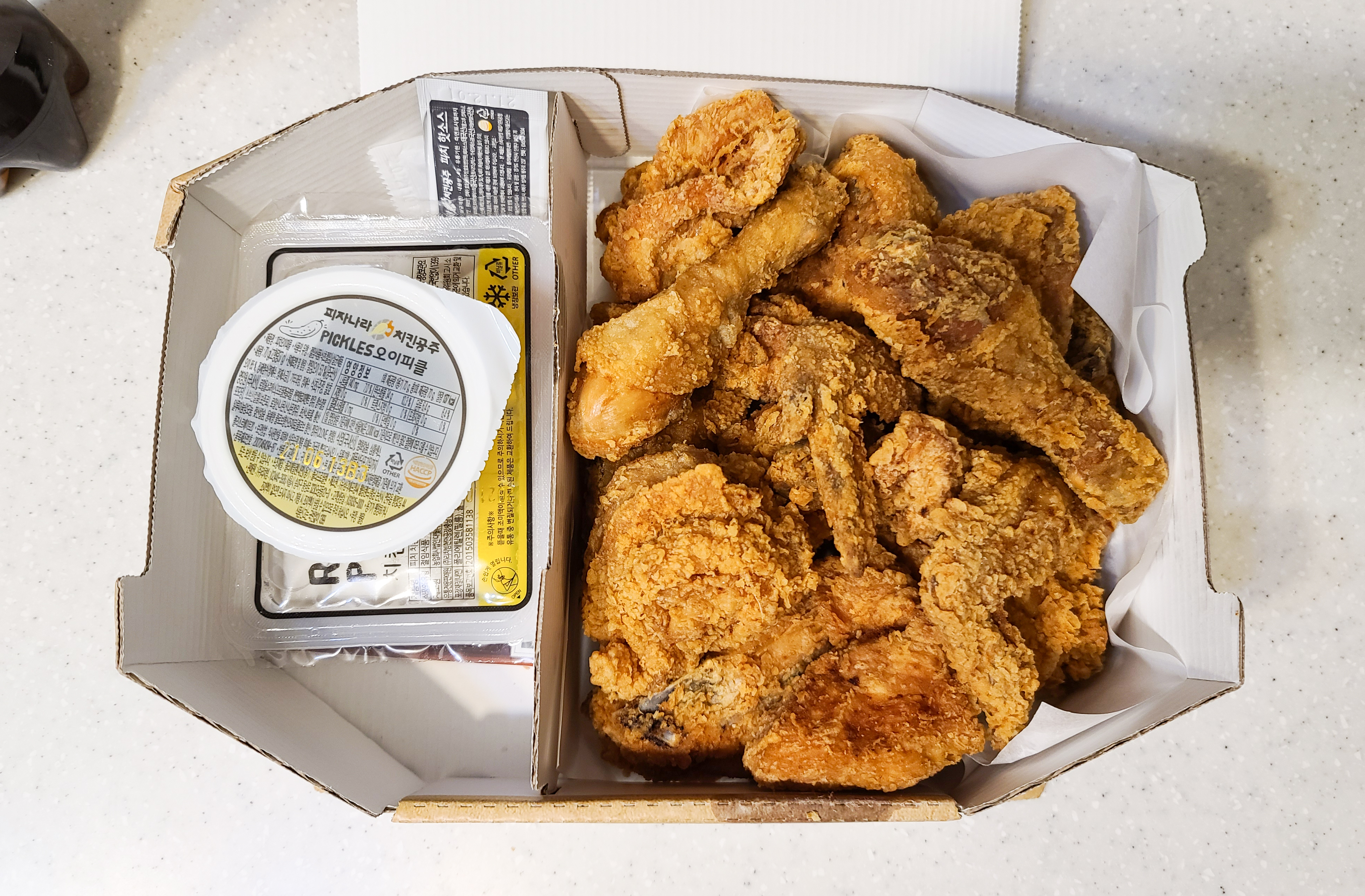 피자도 맛있었는데, 치킨 역시 크기는 좀 자그마하지만, 맛있더라고요. 튀김옷도 적당히 바삭한 게 있었고, 가장 유사한 치킨으로 BBQ 황금올리브가 떠오를 정도이니, 치킨은 꽤 맛있게 먹었던 것 같습니다. 물론 식기 전에 먹어야 맛있었고요.
