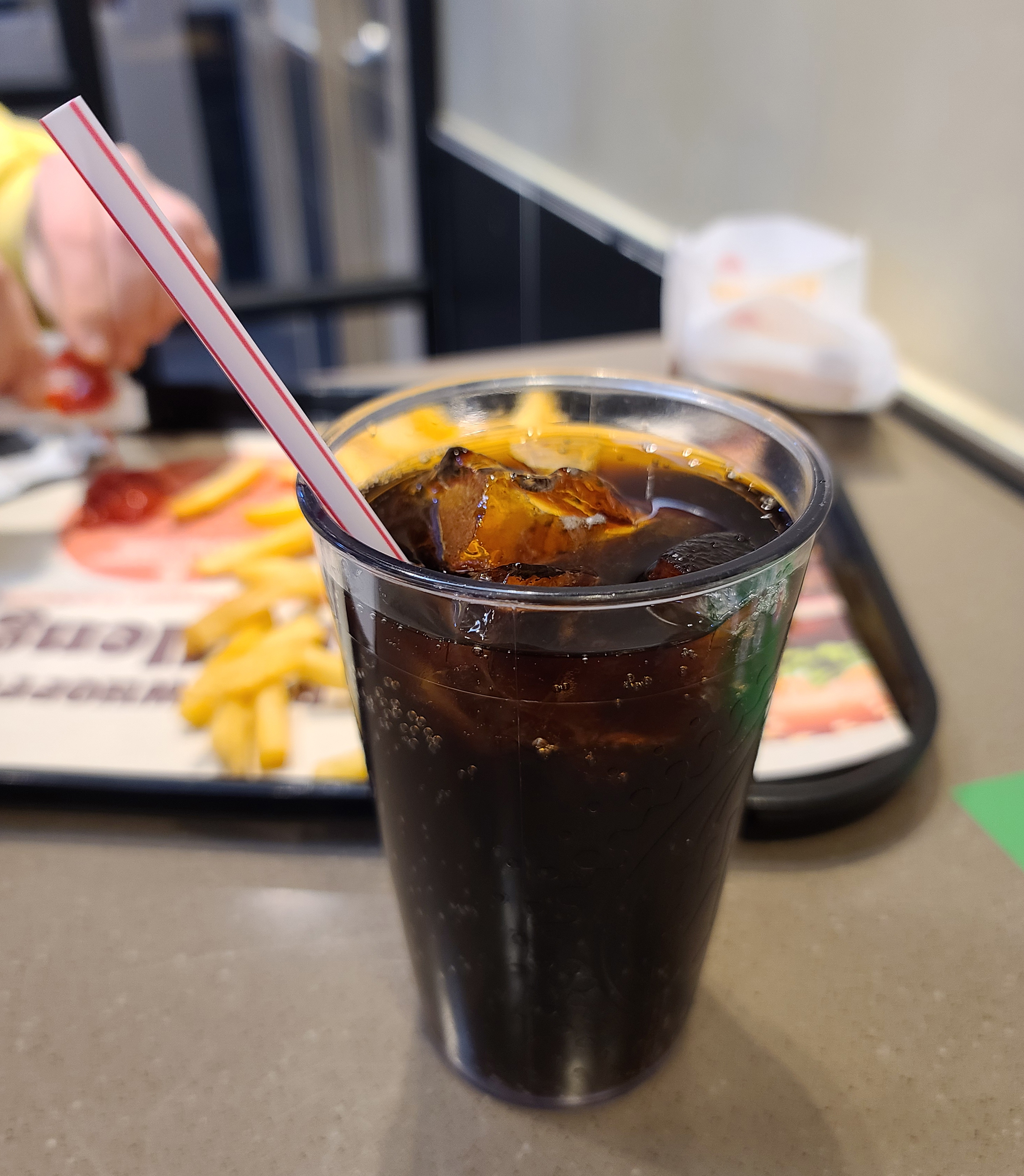 버거킹의 리얼 와퍼 챌린지 제품인 스태커와퍼는 일단 메뉴를 받아서 들고 가는데, 무게부터 남다르더라고요. 평소 들던 햄버거의 무게보다 훨씬 더 묵직했으며, 버거의 크기도 압도적이었습니다. 세트메뉴이니 콜라와 감자튀김도 함께 제공되었습니다.
