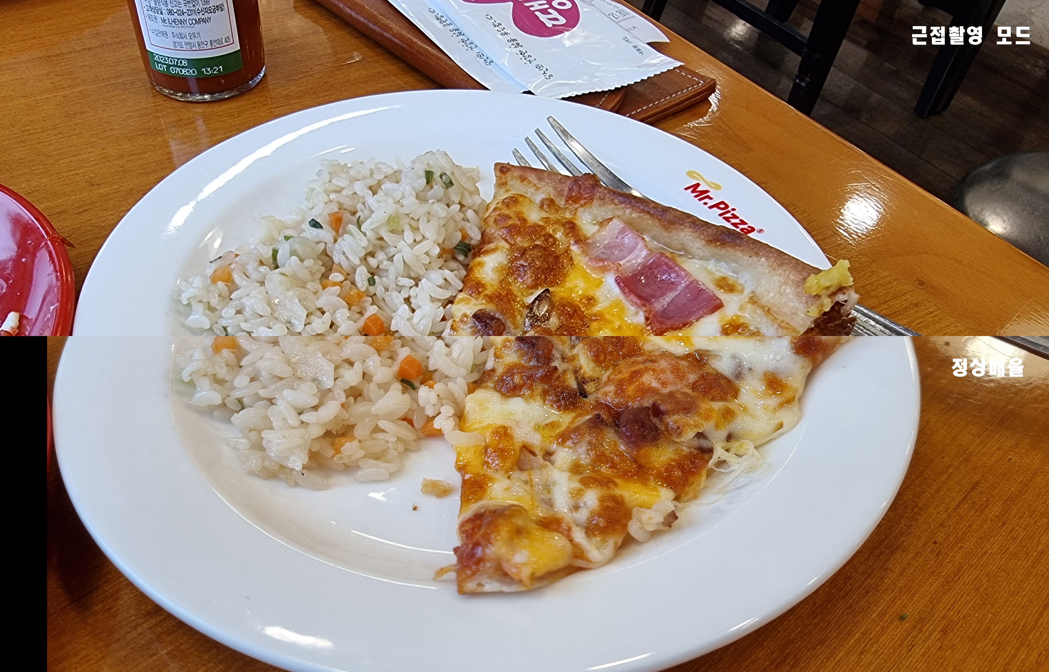 문정동 미스터피자는 피자 뷔페를 이용할 수 있어서 식사를 위해 종종 이용하고 있습니다. 요즘 손님이 많이 줄어들어 피자 뷔페도 제가 들어가니 그제사 음식이 준비되더라고요. 아무튼 갤럭시 S21 울트라로 촬영을 하는데, 기본으로 사용되는 화각인 1배 줌에서는 선명한 화질을 보여주었고, 근접 촬영모드를 잊어먹고 안끄고 찍었더니 화질이 뭉개지는 모습을 볼 수 있었습니다. 아래는 근접촬영 모드가 자동으로 실행되었을 때 찍힌 사진입니다.