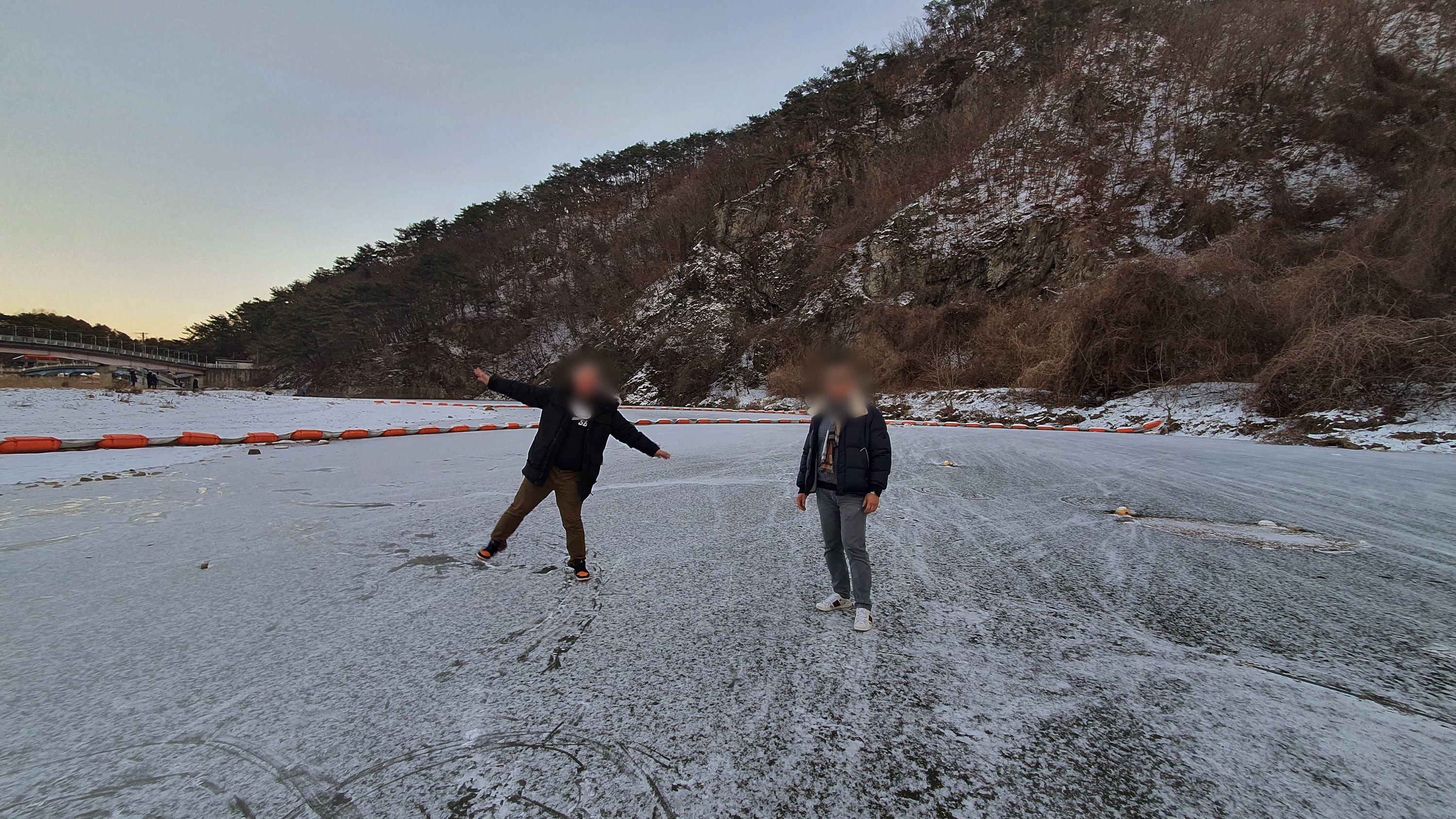 소금산의 응달진 곳은 얼음이 안 녹고 있더라고요. ㅅ물이 단단하게 얼은 것을 확인하고 깊이 들어가지 않고 얕은 곳에서 사진만 얼른 찍고 나왔습니다. 요즘 나이를 먹으면서 약간 겁이 나더라고요.