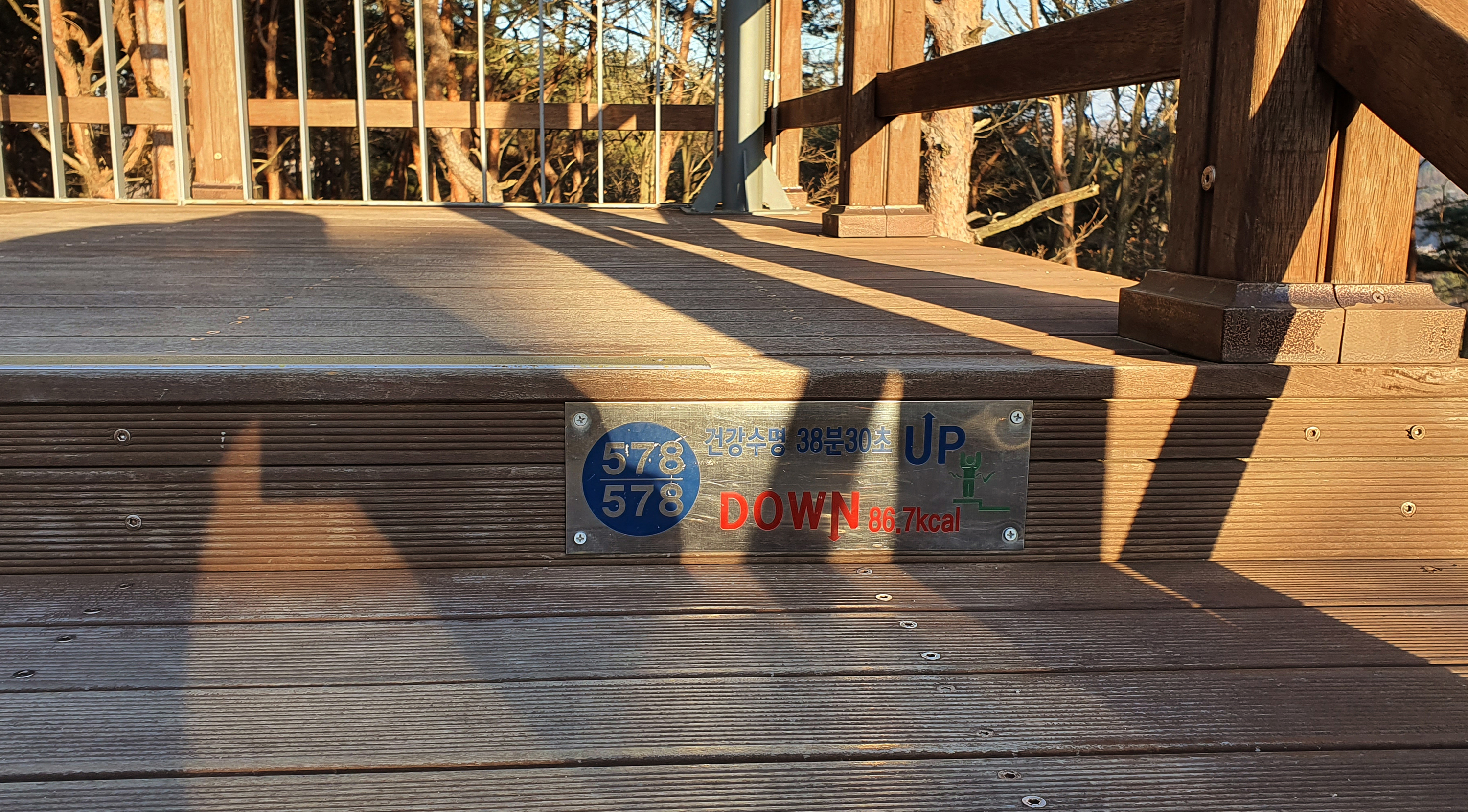 출렁다리를 옆에서 바라본 모습입니다. 허공에 떠있는 모습이 고소공포증이 있는 사람은 아찔한 경험을 할 수도 있겠다 생각이 들더라고요. 어느 정도 출렁다리 위에서의 재미난 경험을 마친 뒤 계단을 따라서 내려왔습니다.