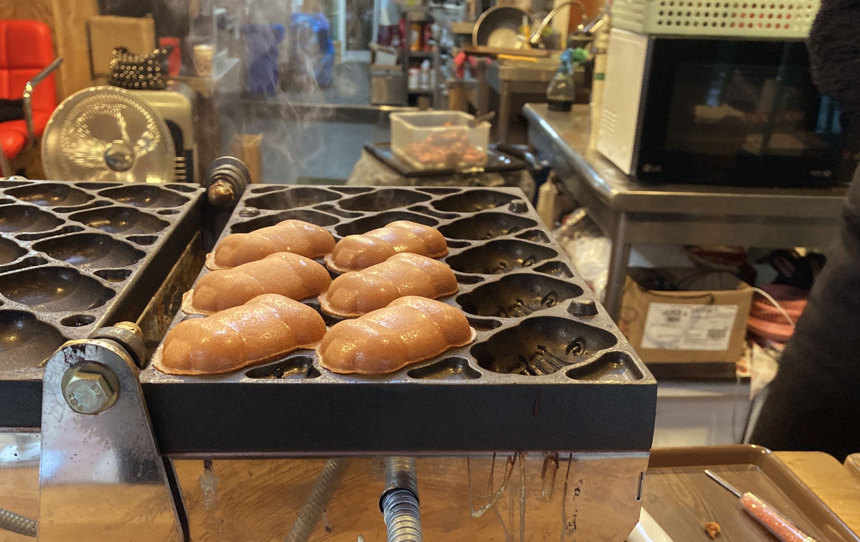 황금돼지빵은 마치 돼지저금통 미니어처 같이 생겼고, 속에는 부드러운 슈크림이 들어가 있었습니다. 추운 날씨 속 산책하고 와서 따뜻한 어묵과 돼지빵을 먹으니 몸이 녹아내리는 것 같더라고요.
