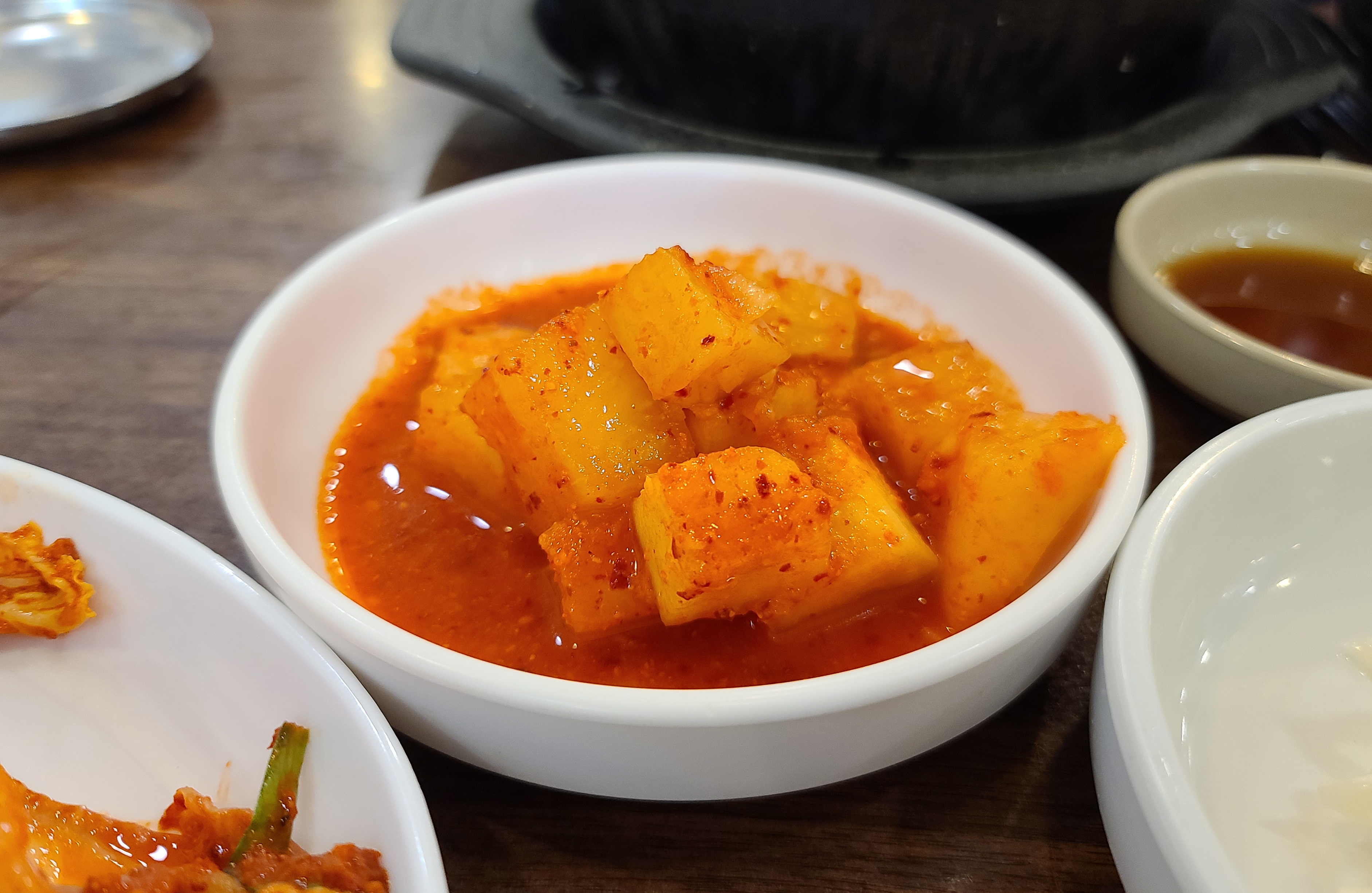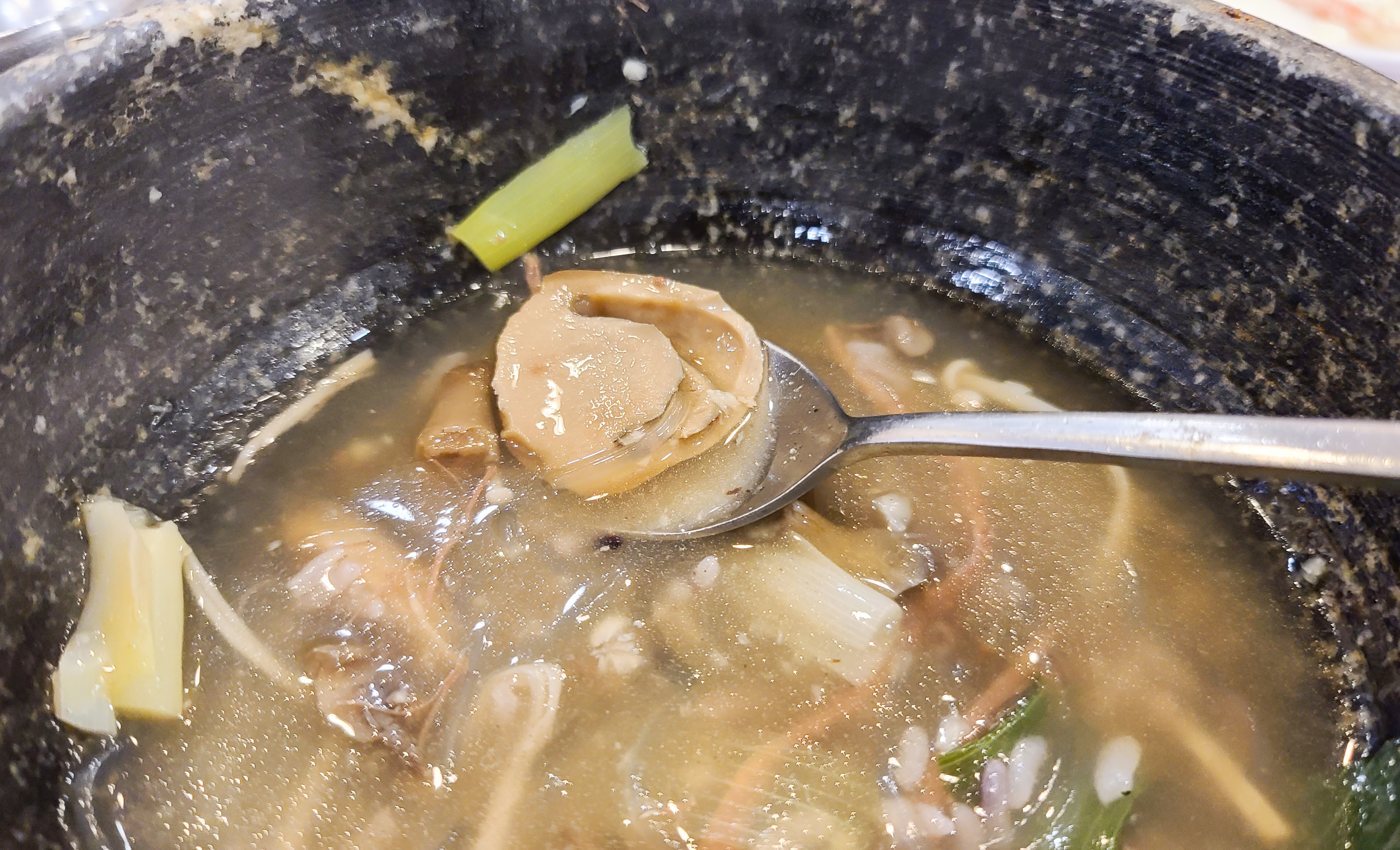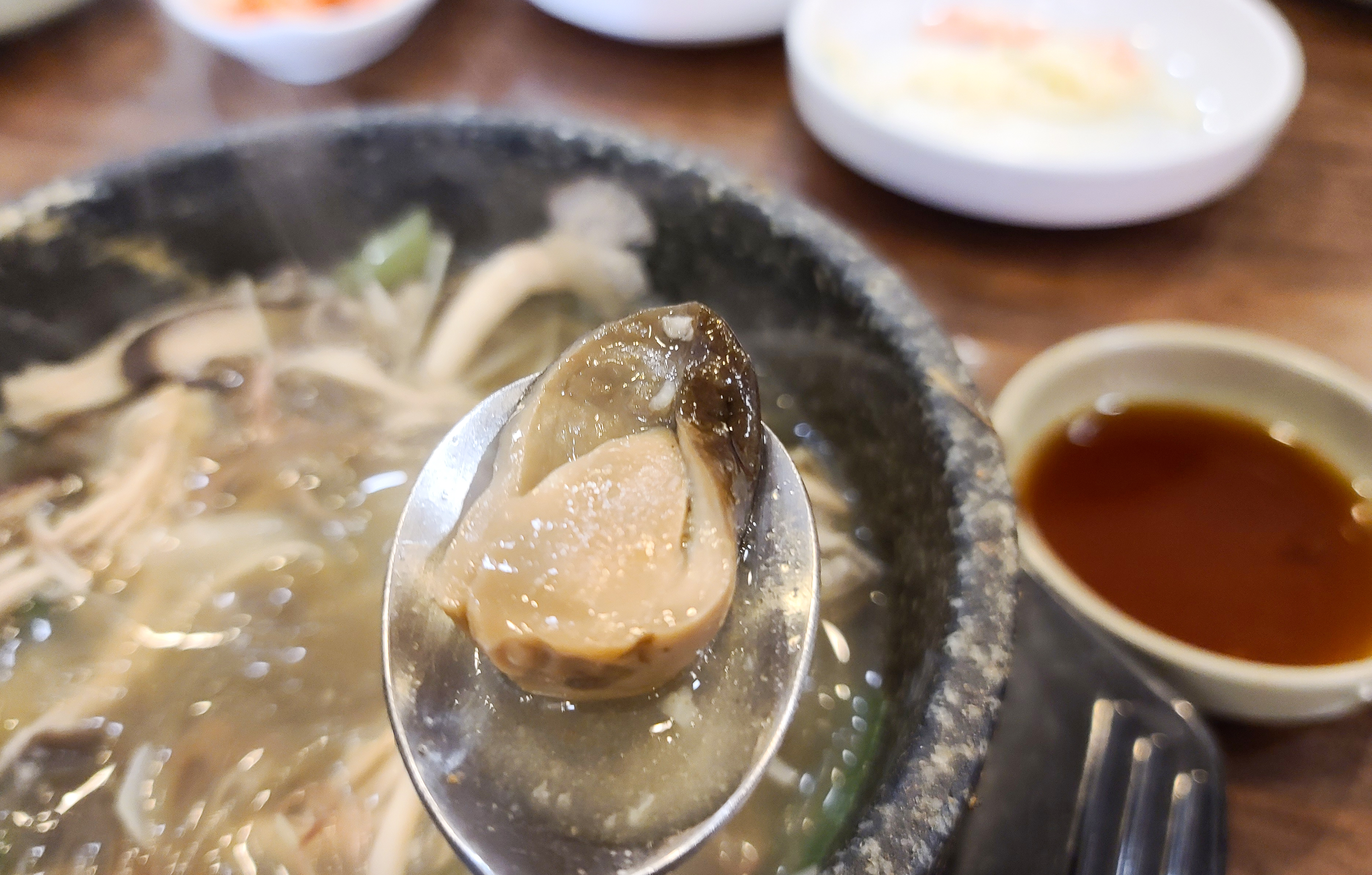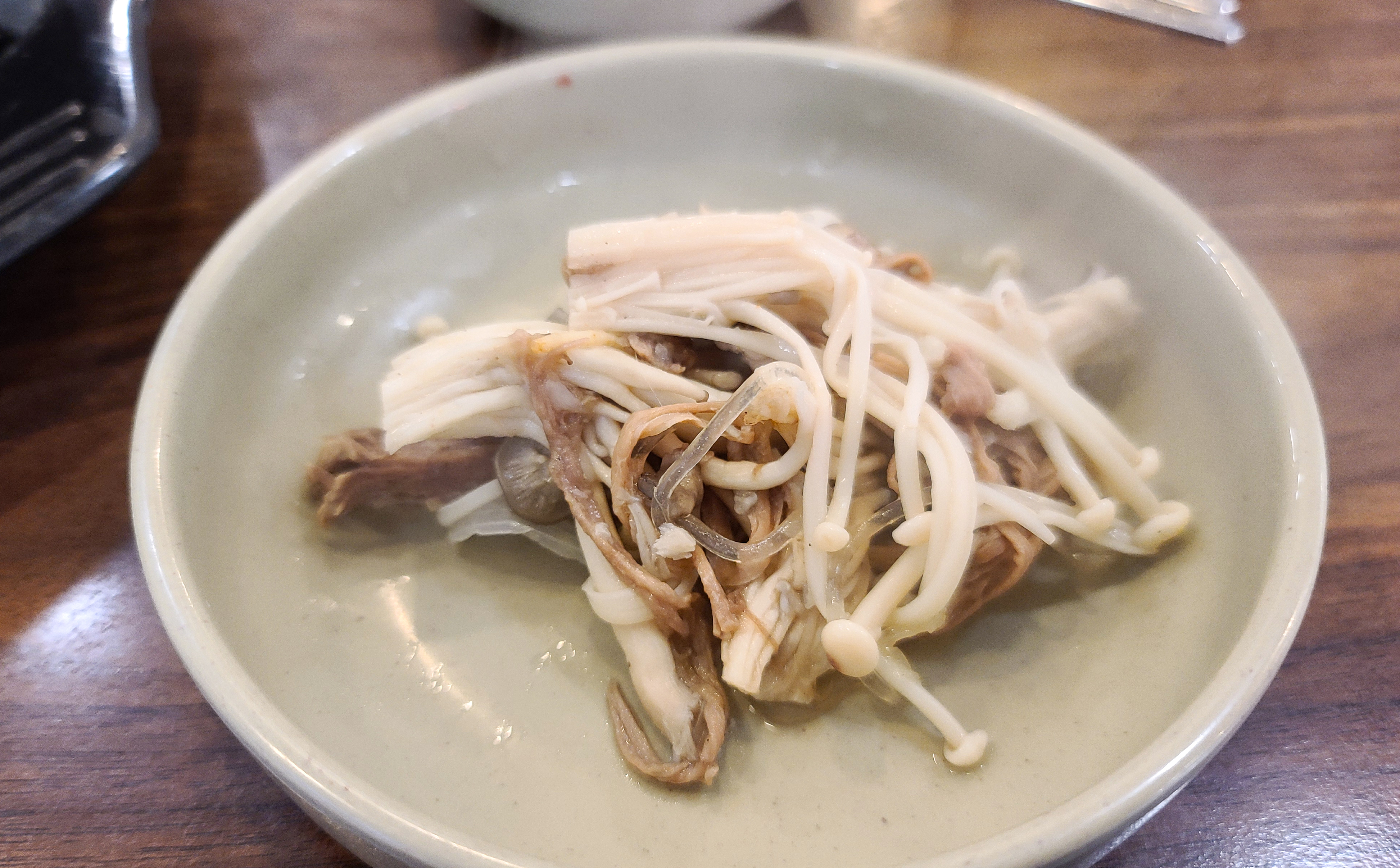 버섯맑은탕과 함께 해파리 무침, 깍두기, 배추김치, 고추장아찌가 나왔습니다. 반찬들은 전체적으로 군더더기 없이 맛이 좋았습니다. 김치류는 맛있었고요. 자, 그럼 메인 메뉴인 버섯탕을 살펴보실까요??