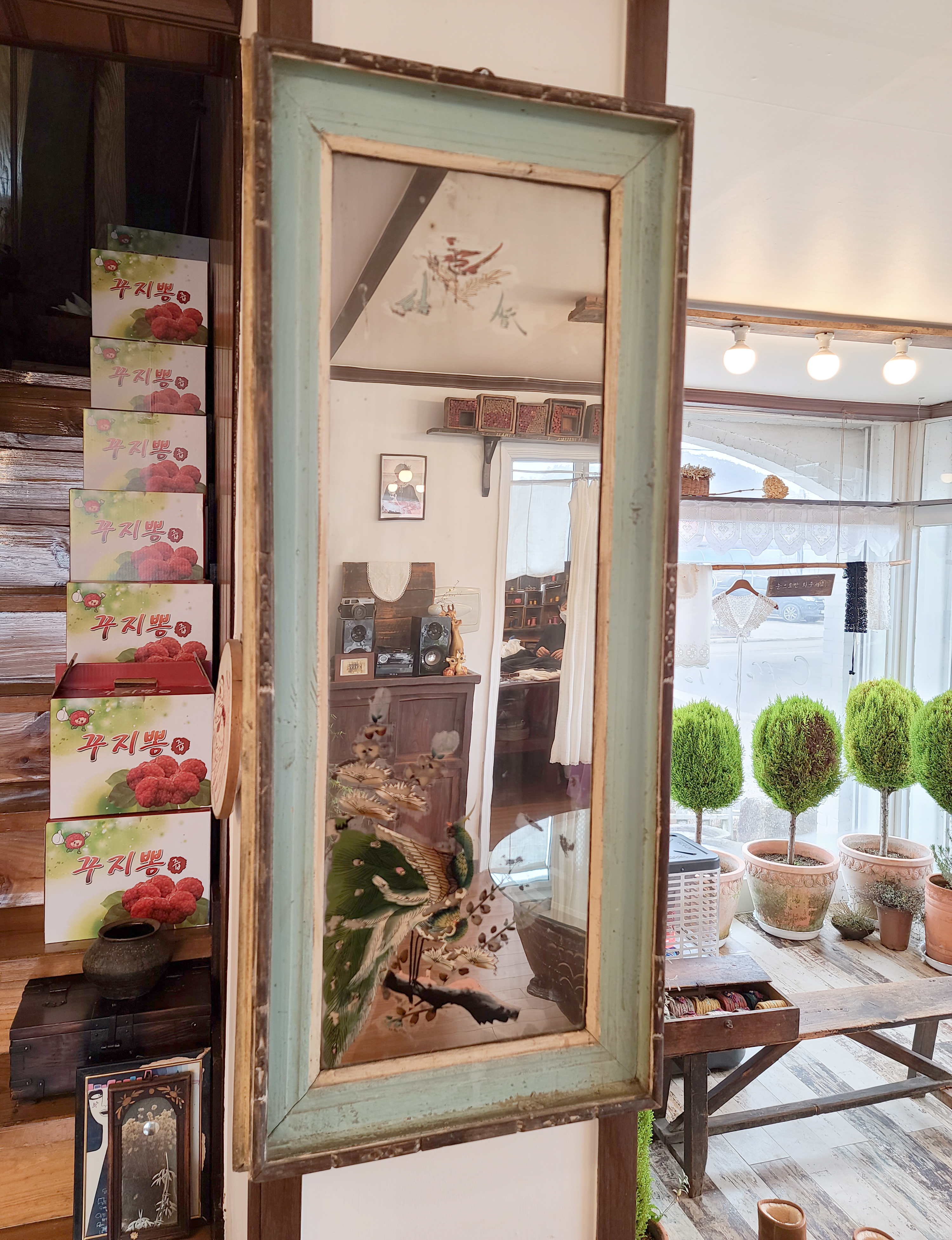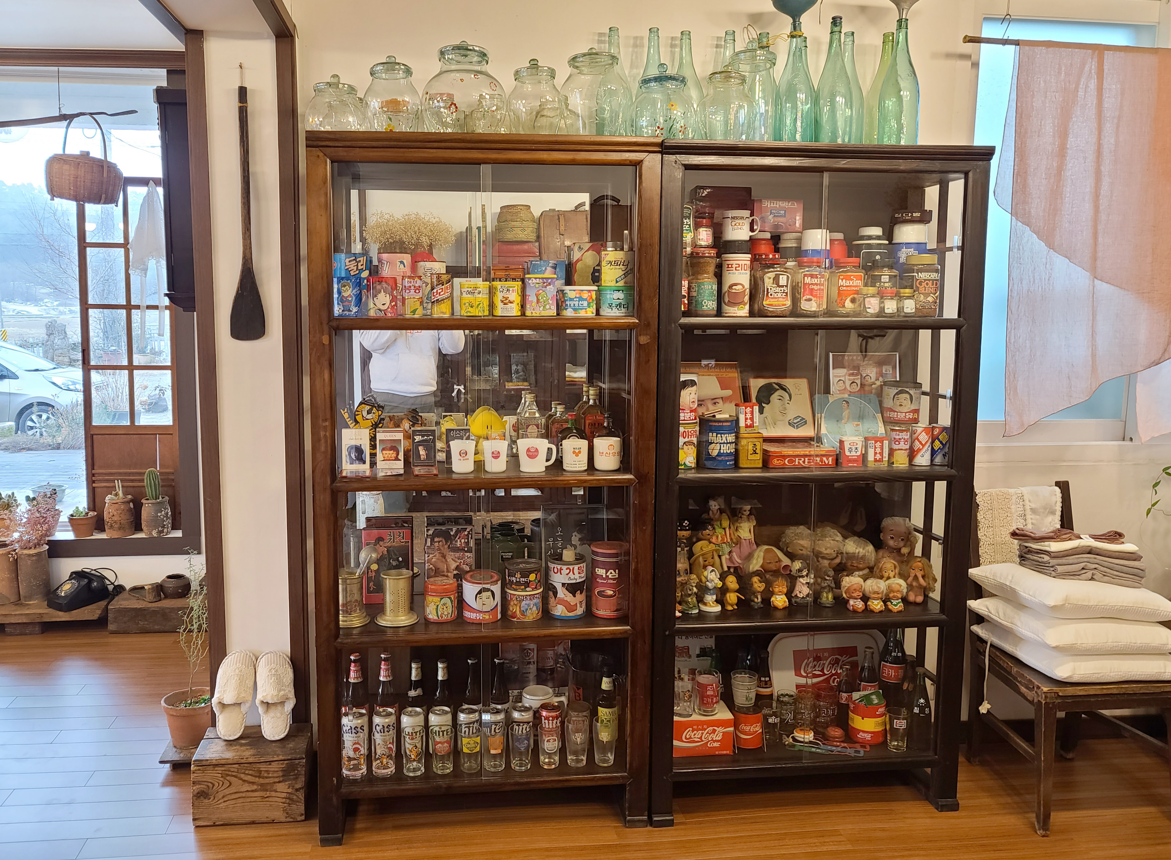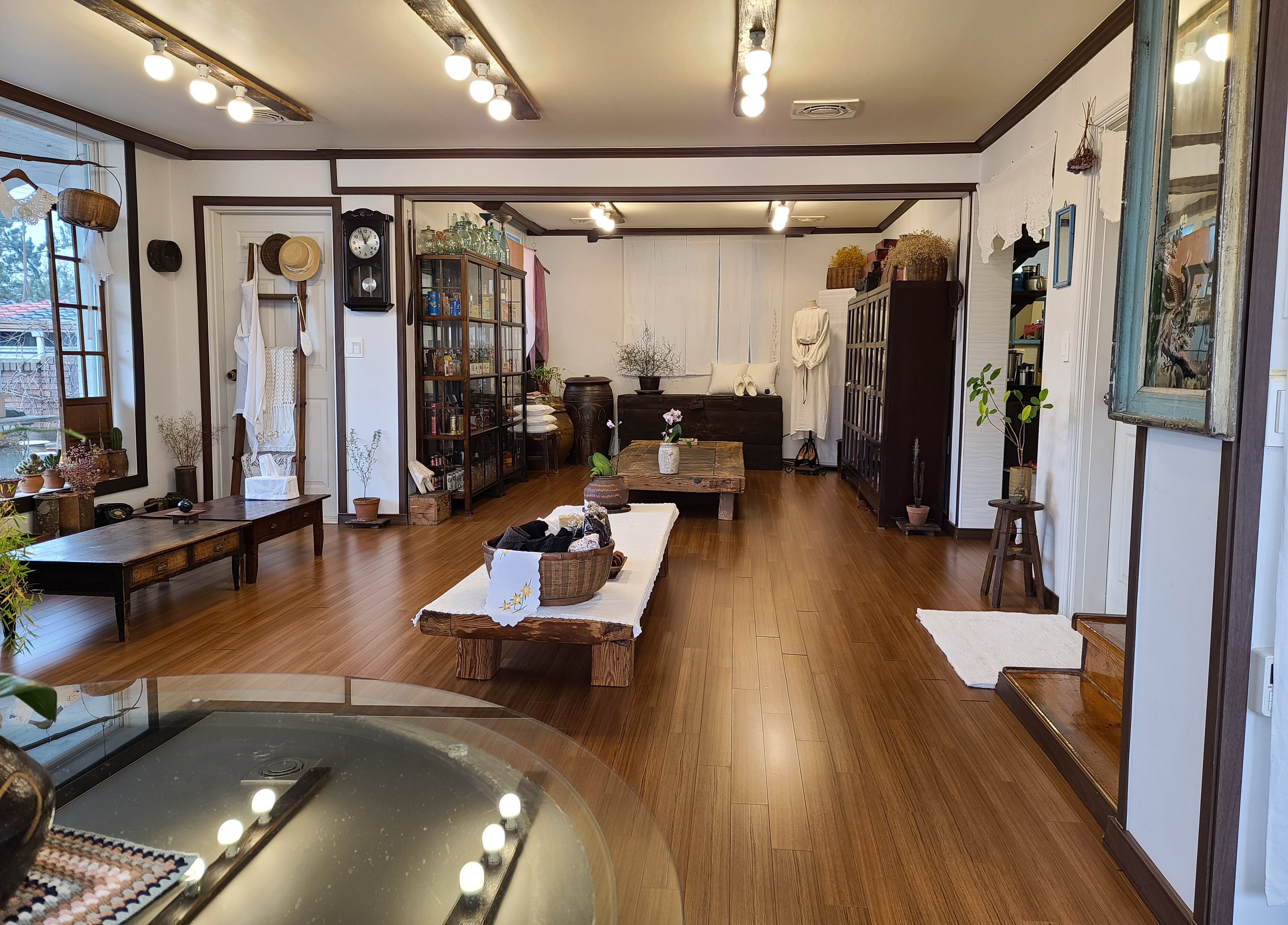 보통 골동품이라 하면 옛날 물건들을 지저분하게 보관하여 안 좋은 이미지가 있는데, 구석구석 깨끗이 관리하여 골동품의 가치를 높여주었고, 곳곳에 식물과 드라이플라워를 조화롭게 배치한 모습도 인상적이었습니다.