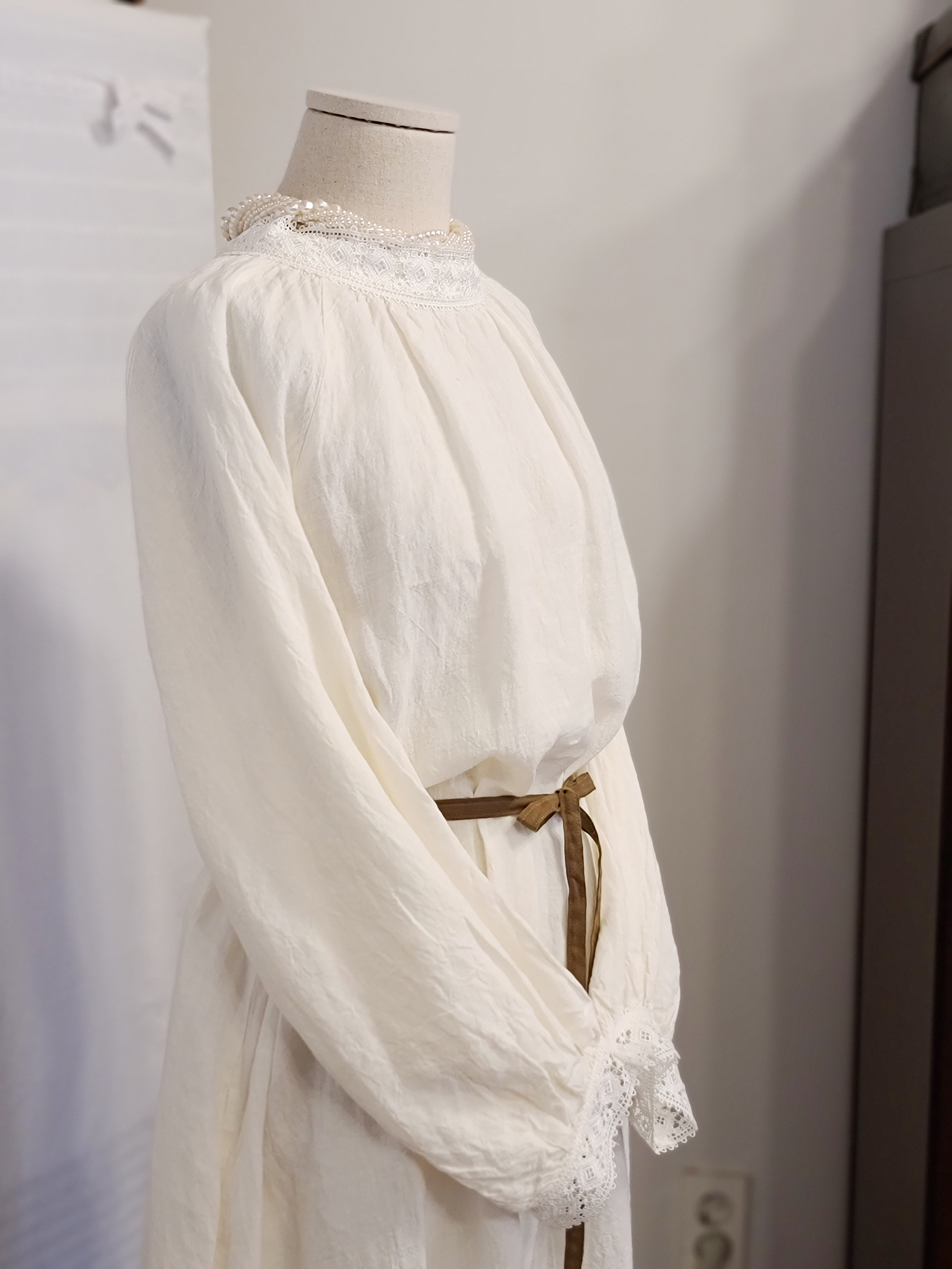카페에서 리넨 의상도 판매하고 있어서 곳곳에 리넨으로 된 의상들도 눈에 띄었습니다. 카페의 콘셉트와 순백의 리넨 의상이 잘 어울리는 것 같더라고요. 특히 리넨의 주름과 거친듯한 질감이 가게의 엔틱함과 잘 어울렸습니다.