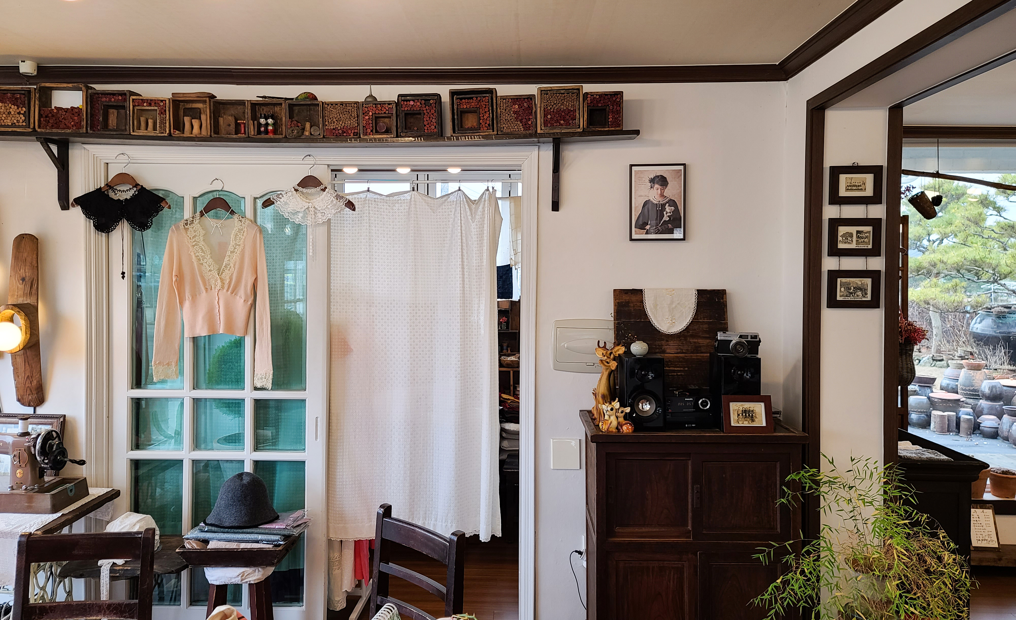 보통 골동품이라 하면 옛날 물건들을 지저분하게 보관하여 안 좋은 이미지가 있는데, 구석구석 깨끗이 관리하여 골동품의 가치를 높여주었고, 곳곳에 식물과 드라이플라워를 조화롭게 배치한 모습도 인상적이었습니다.